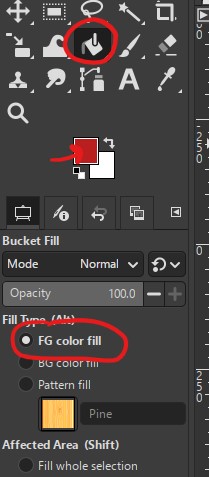Step 2: Select the Paint Bucket tool and change your foreground color to the color you want to change it to. Make sure that they fill type is set to “FG color fill”.