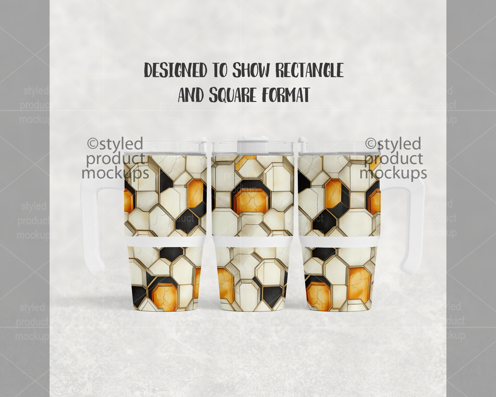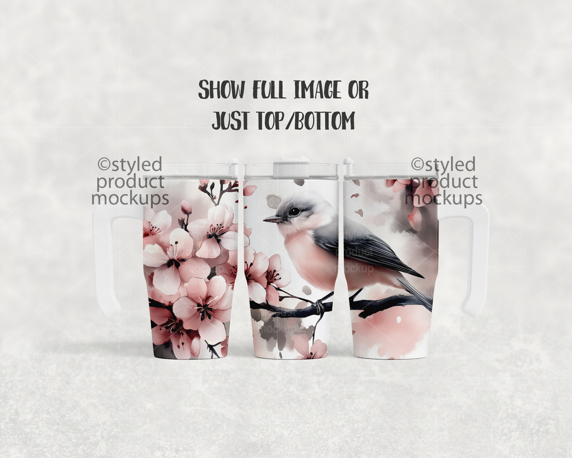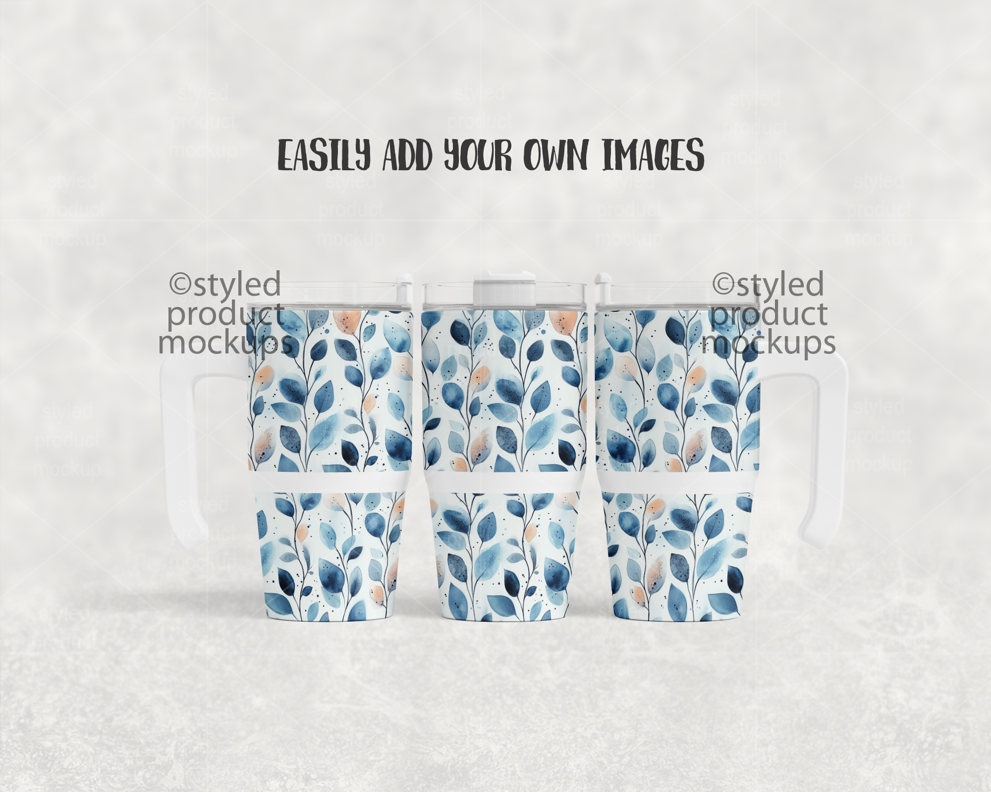 This listing is a mock-up that features a dye sublimation 12oz tumbler with handle. Give a professional touch to your tumbler designs without the hassle of photographing each one. This styled product mockups template is ready to use, simply add in your own art files and background.