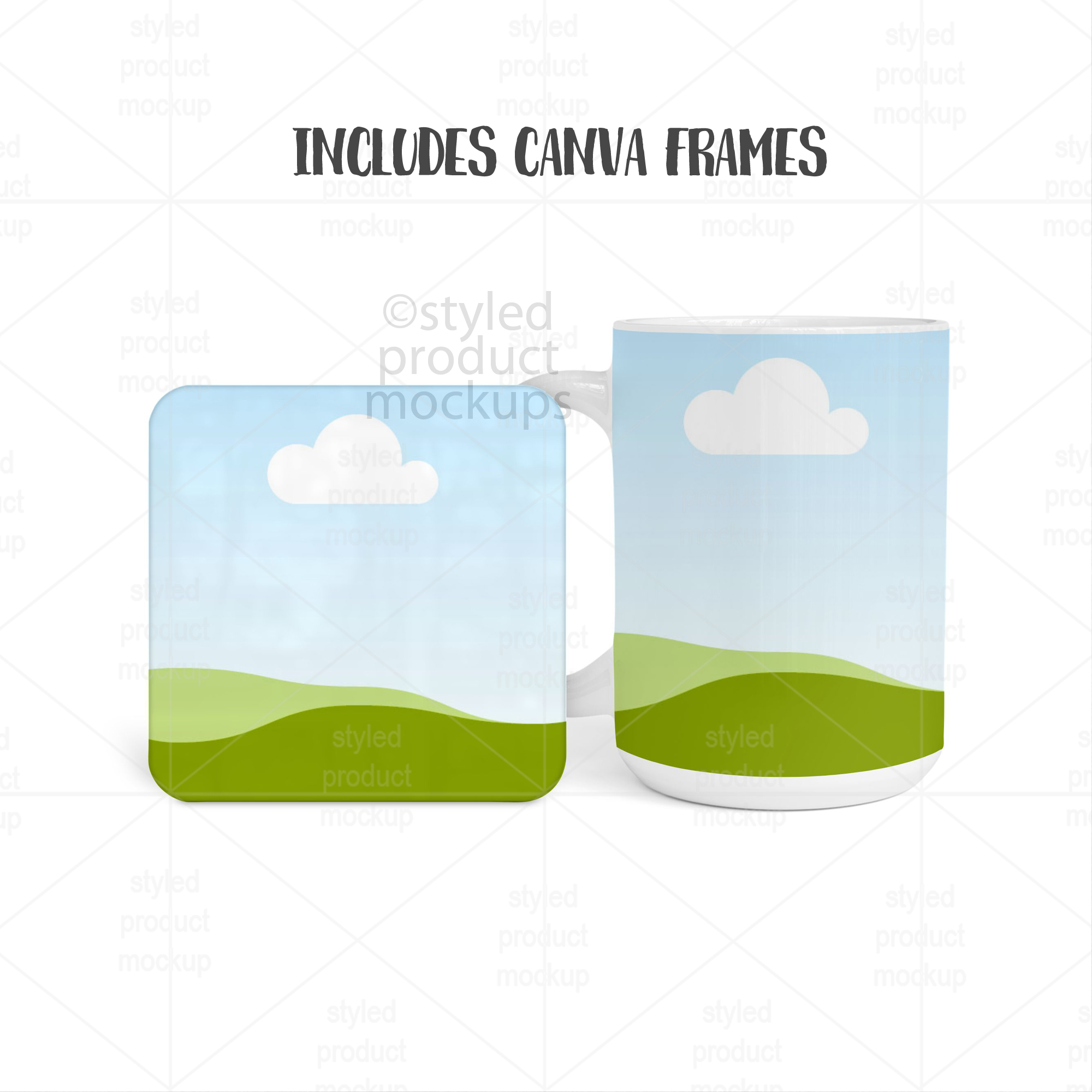 Create professional product listings in minutes with this 15oz Mug and Square Coaster Mockup. Includes Smart PSD, simple PSD, Canva, PNG and EPS. Perfect for Etsy sellers, designers, and print-on-demand shops who want clean, realistic product images without complicated editing.