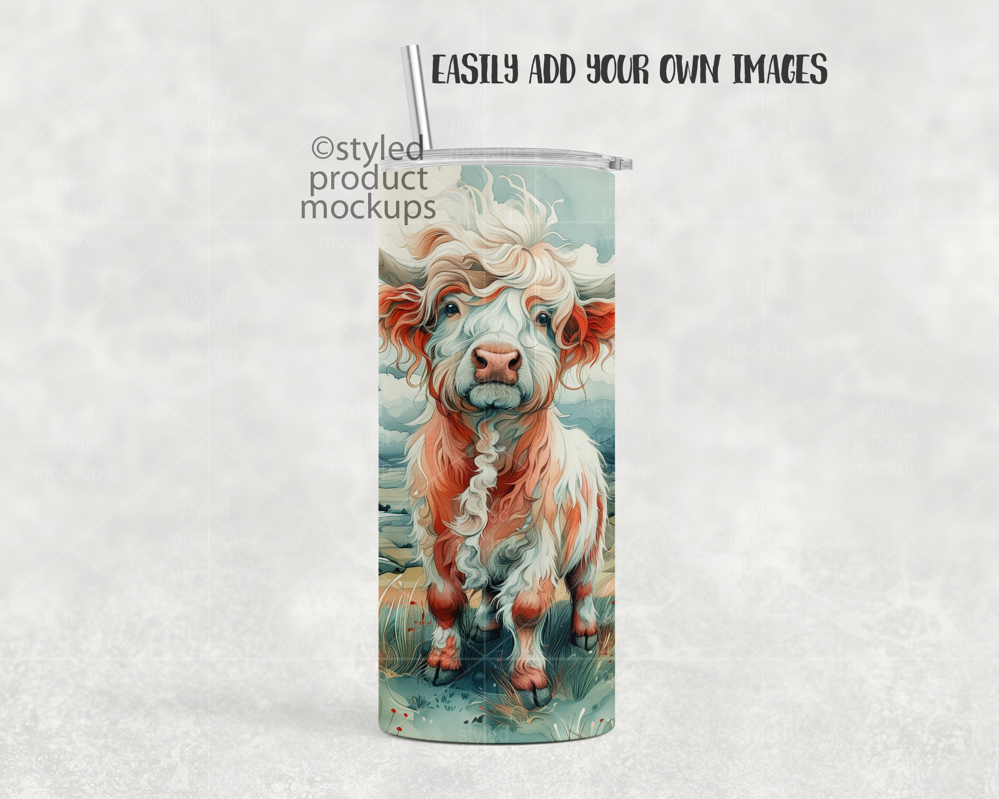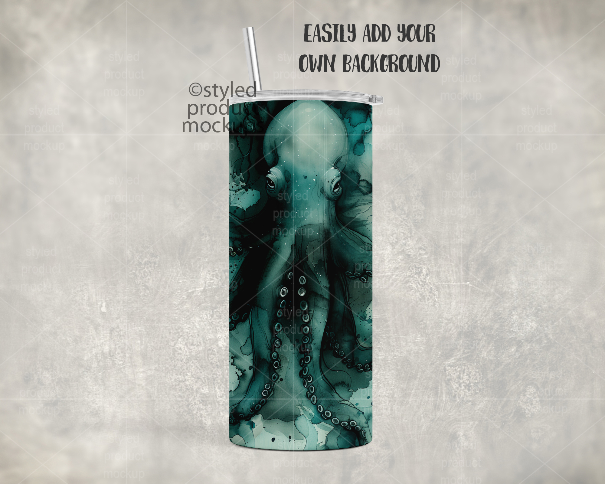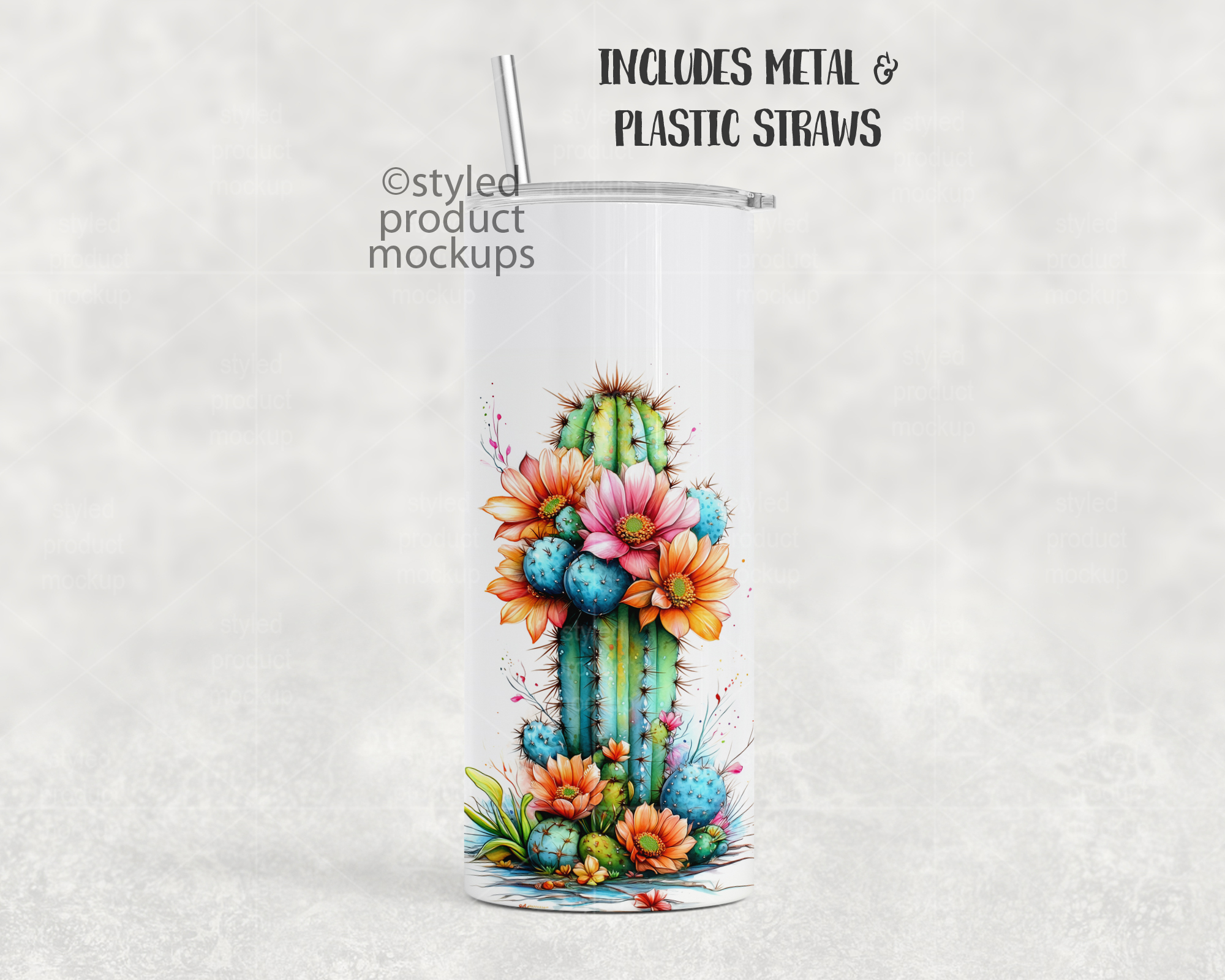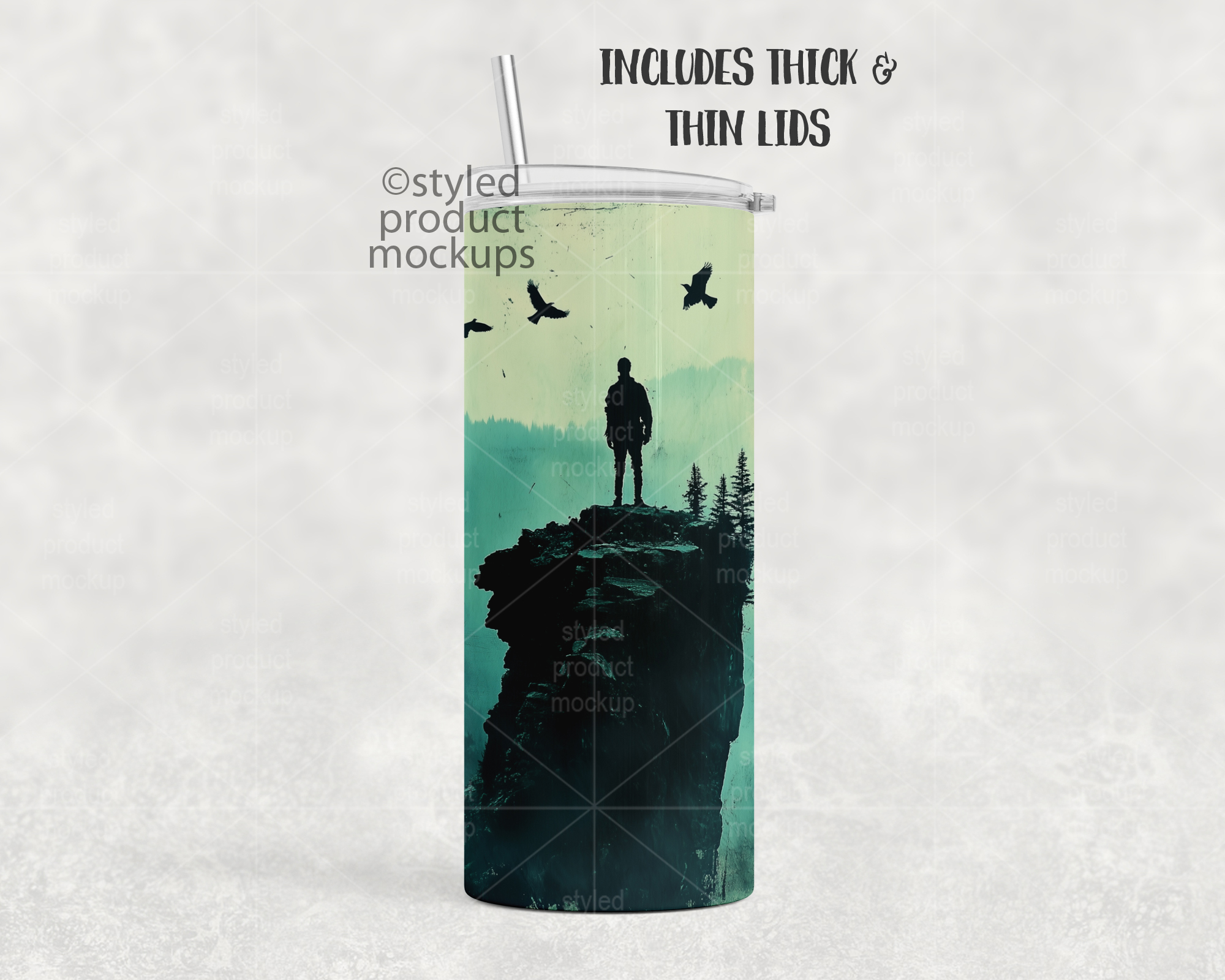 This listing is a mock-up that features a dye sublimation 15oz skinny tumbler single view. Give a professional touch to your tumbler designs without the hassle of photographing each one. This styled product mockups template is ready to use, simply add in your own art files and background.