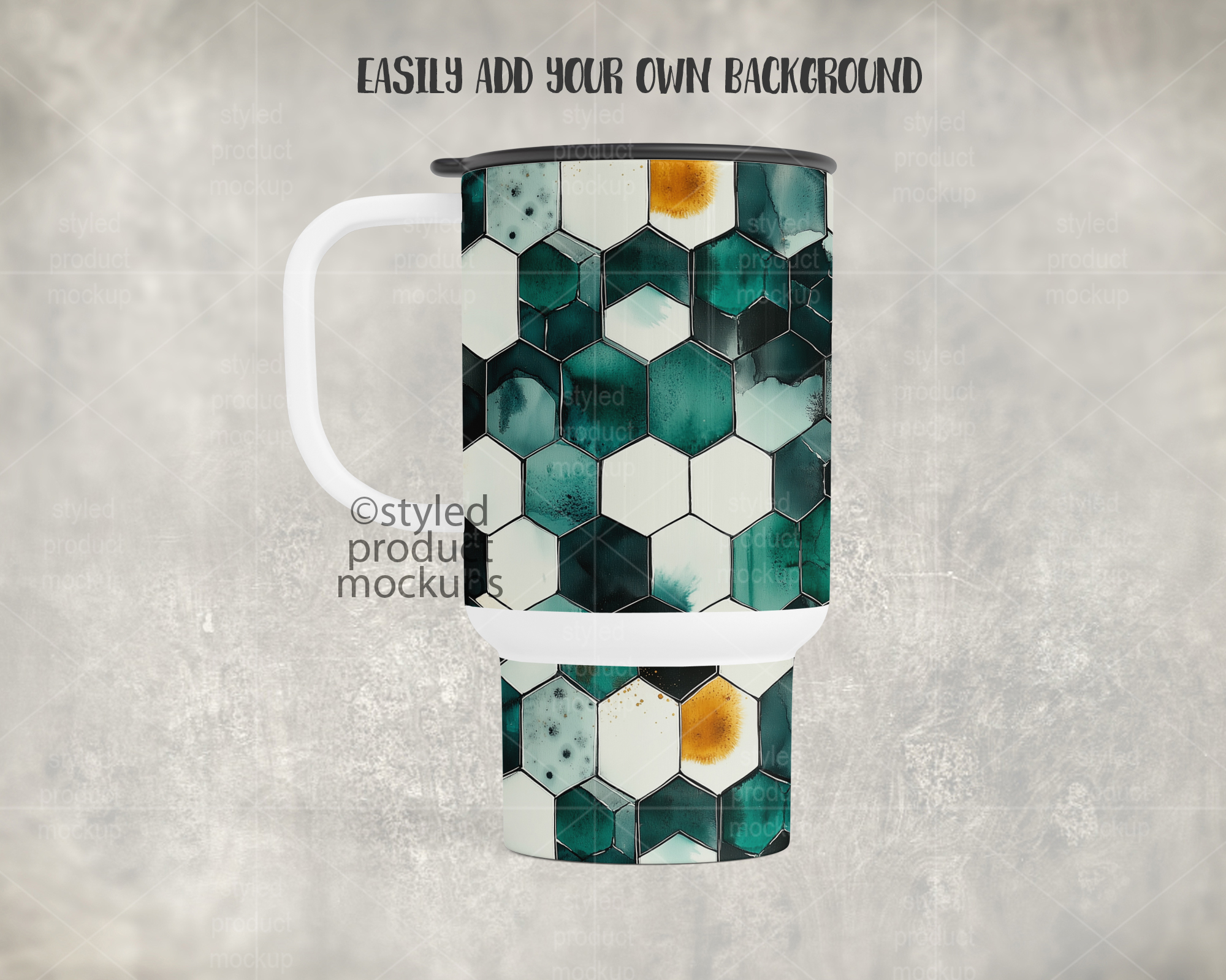 This listing is a mock-up that features a dye sublimation 15oz travel mug. Give a professional touch to your travel tumbler designs without the hassle of photographing each one. This styled product mockups template is ready to use, simply add in your own art files and background.
