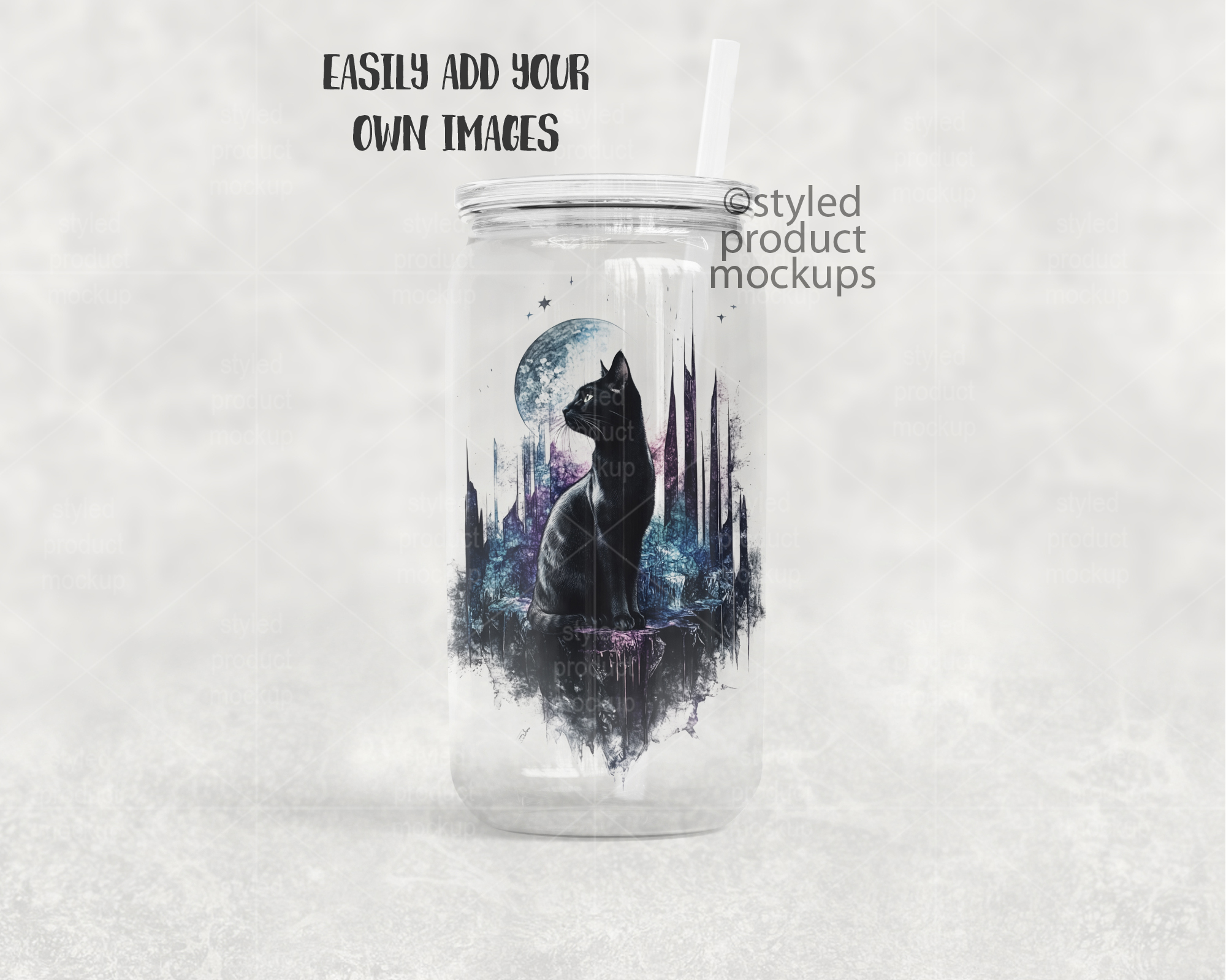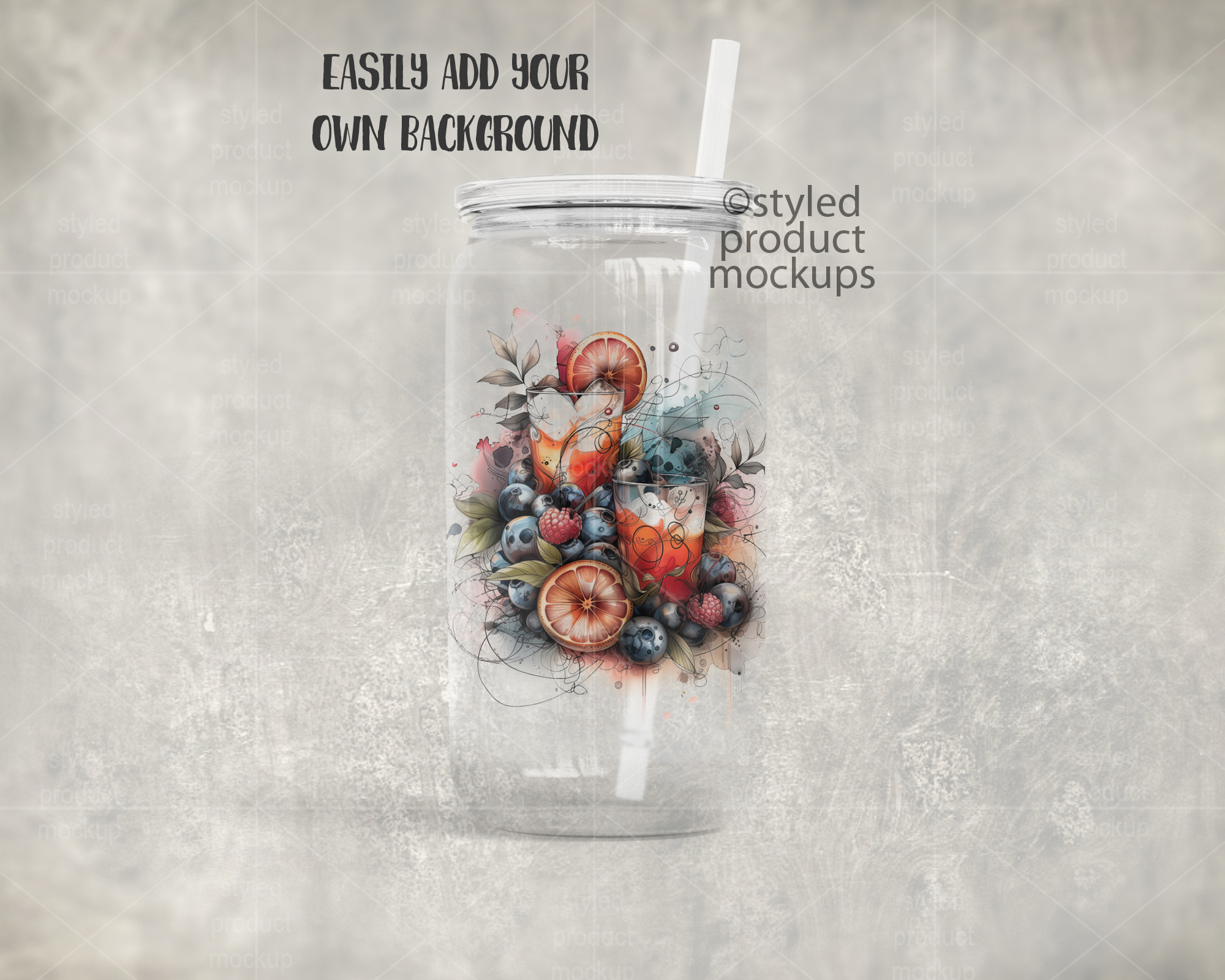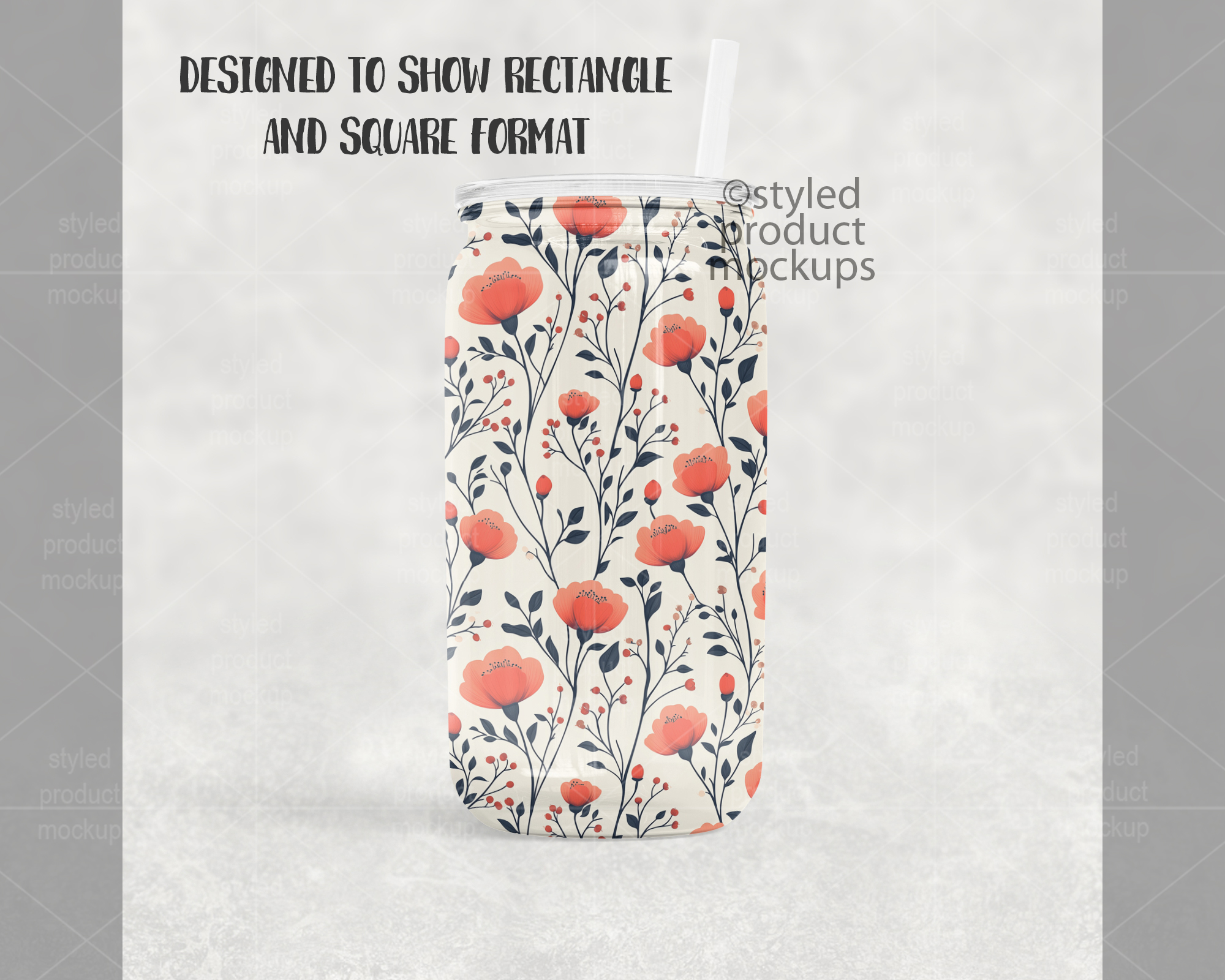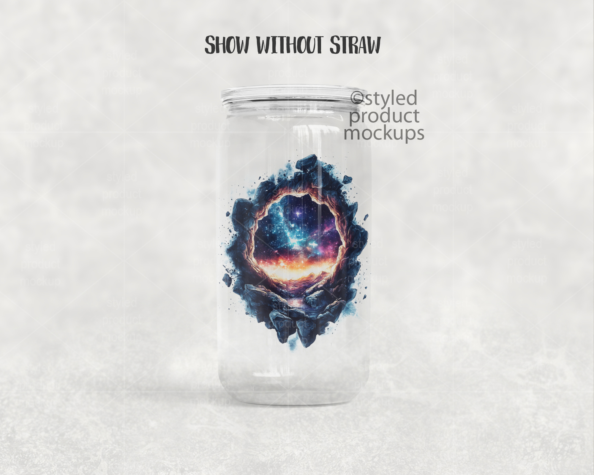 This listing is a mock-up that features dye sublimation 16oz clear glass can with a clear plastic lid. Give a professional touch to your tumbler designs without the hassle of photographing each one. This styled product mockups template is ready to use, simply add in your own art files and background.