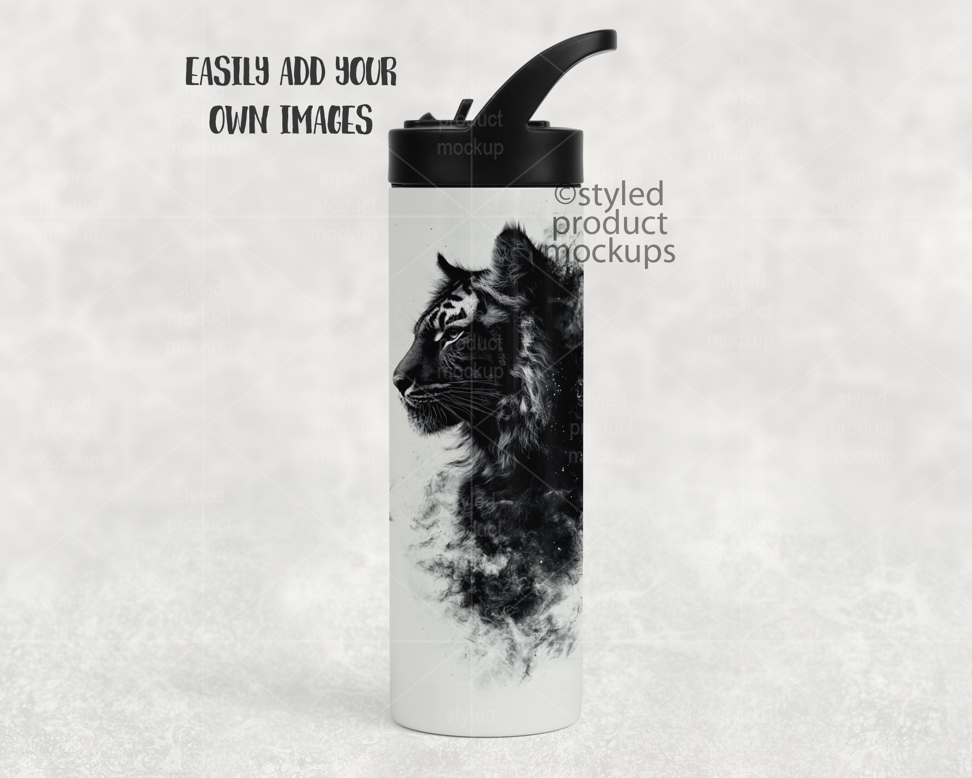 This listing is a mock-up that features a dye sublimation 20oz skinny sports bottle. Give a professional touch to your tumbler designs without the hassle of photographing each one. This styled product mockups template is ready to use, simply add in your own art files and background.