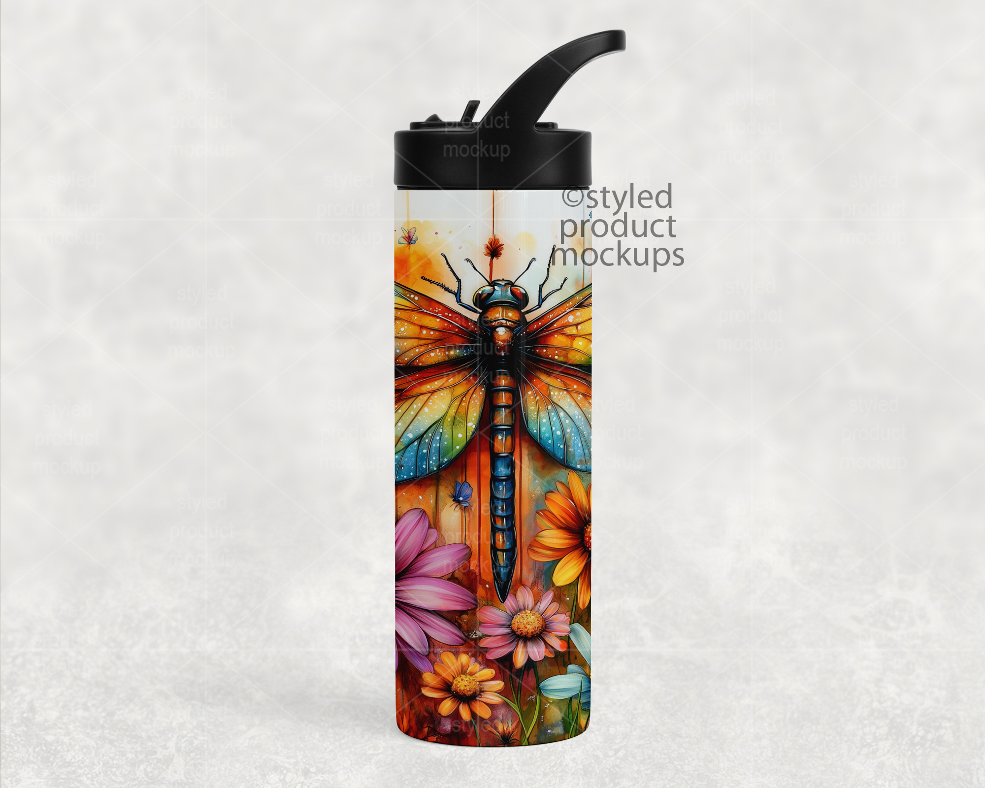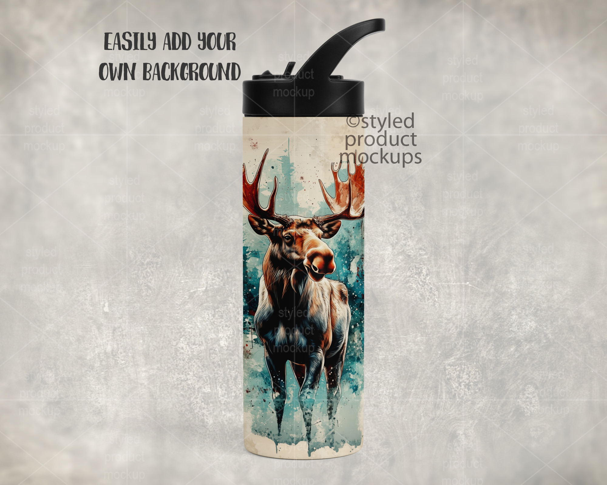 Dye sublimation 20oz skinny sports bottle Mockup | Add your own image and background