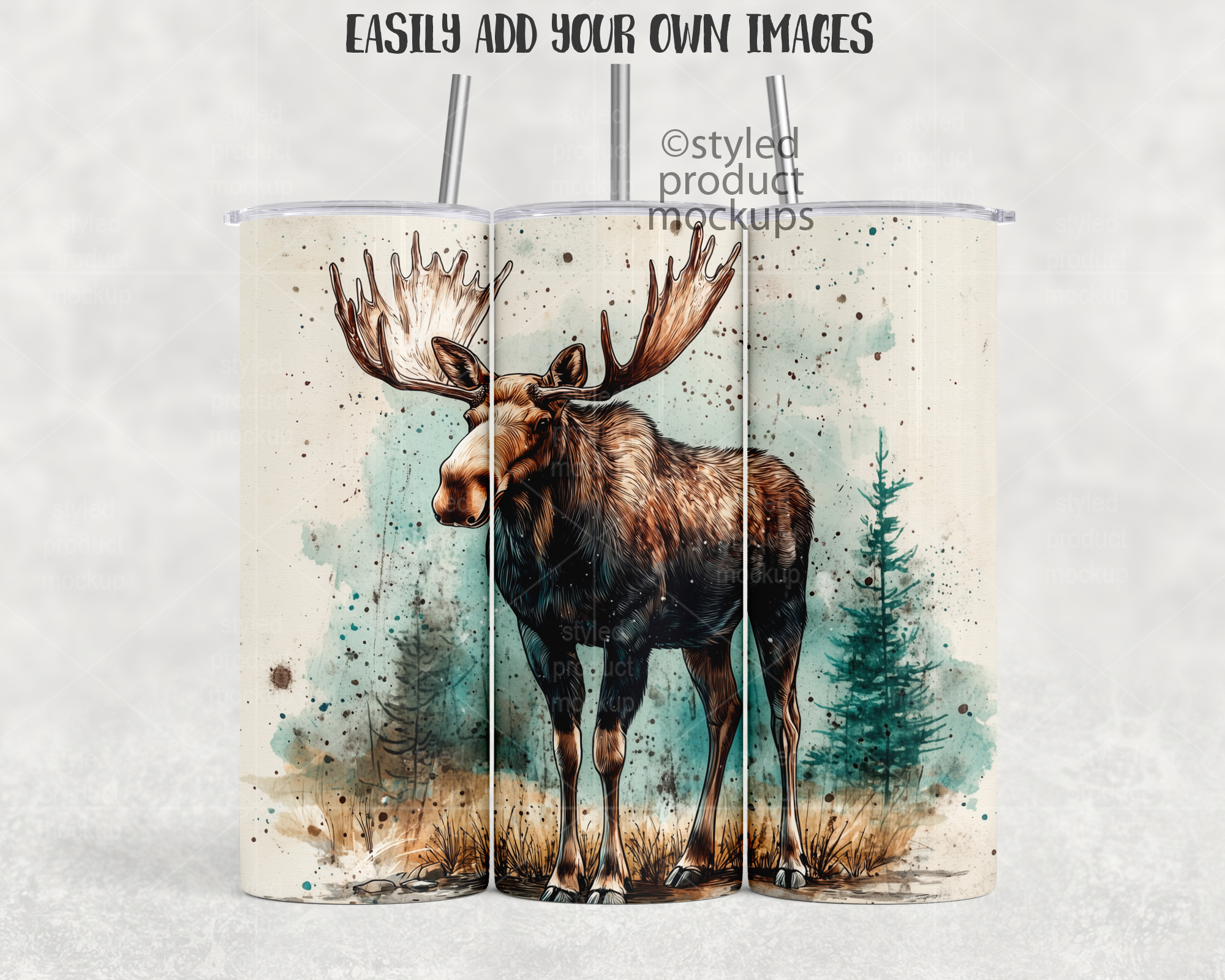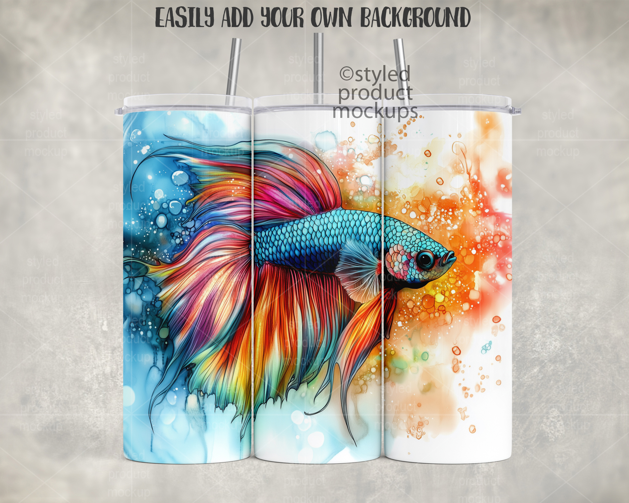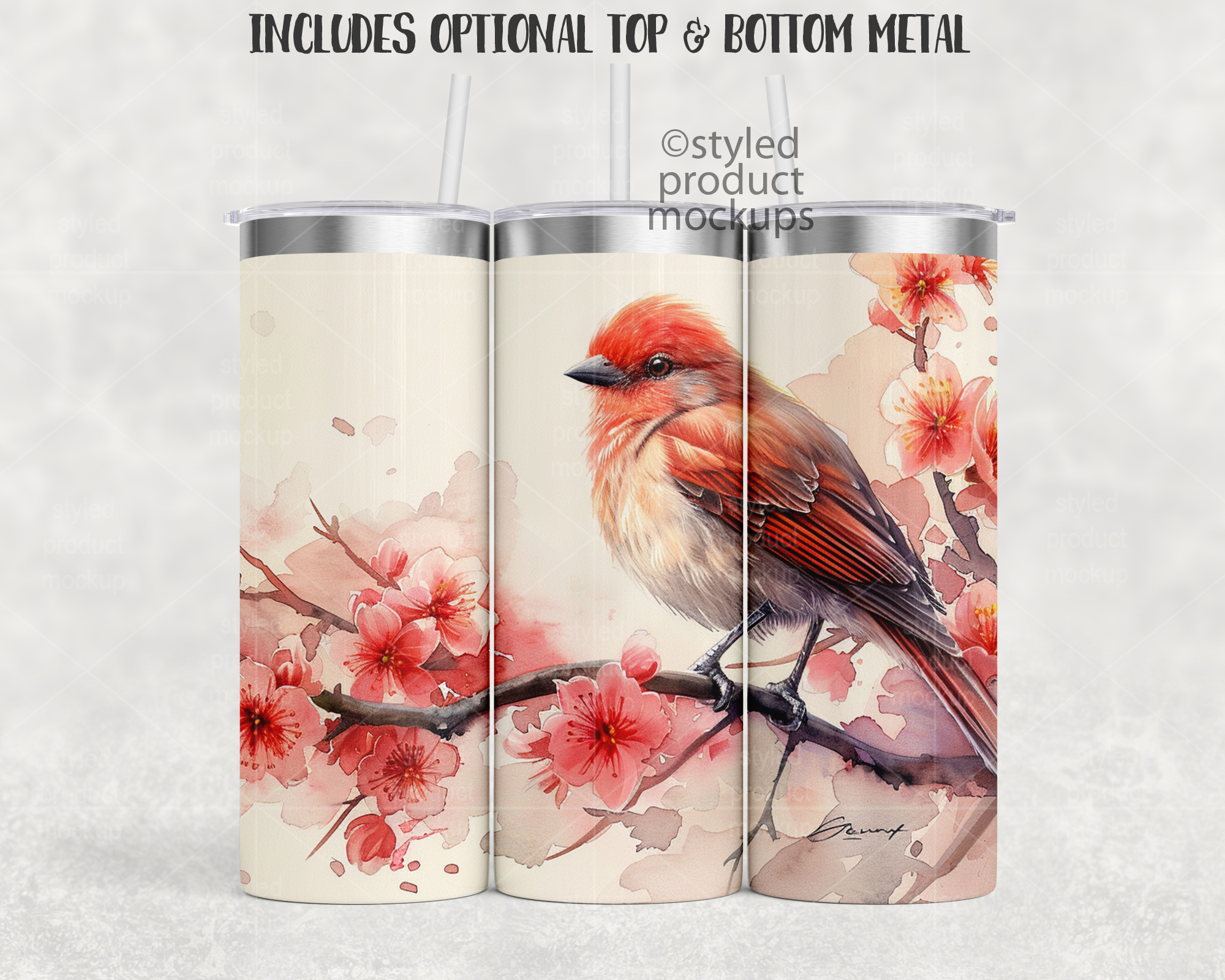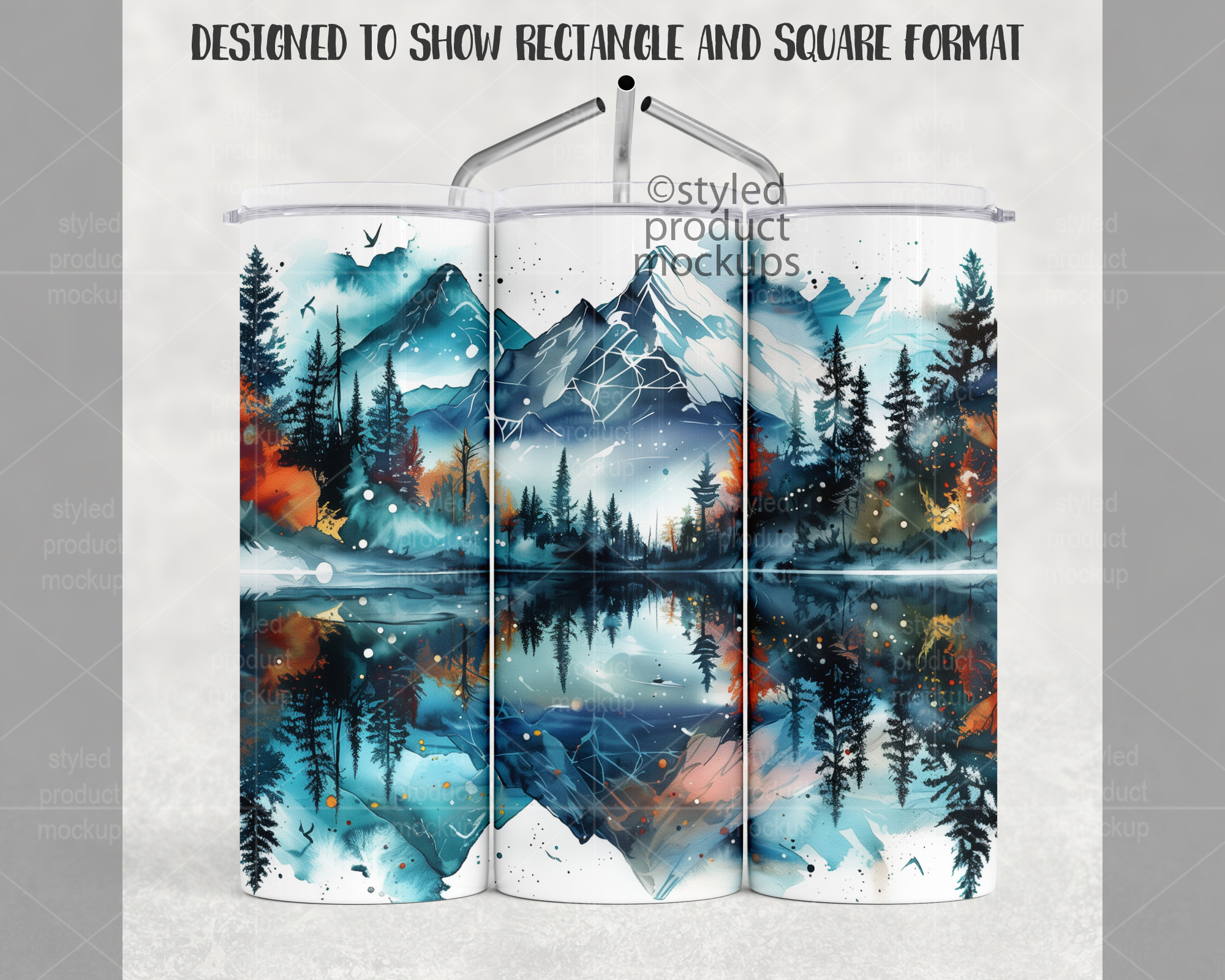 This listing is a mock-up that features a dye sublimation 20oz skinny tumbler full wrap view – Super Close Edition. Includes two lid and 3 straw options with optional top and/or bottom metal rims. Give a professional touch to your tumbler designs without the hassle of photographing each one. This styled product mockups template is ready to use, simply add in your own art files and background.