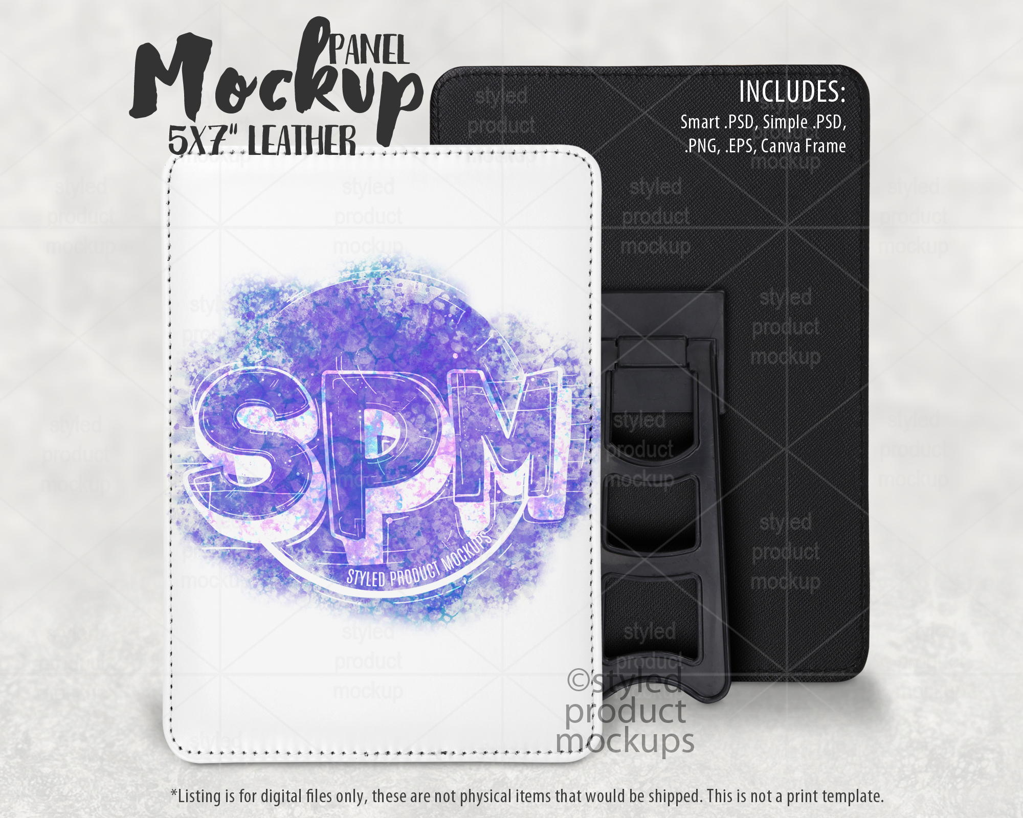 Key Words: 5×7, photo, panel, leather, leather panel, kick stand, stand, canva mockup, sublimation, mockup, photoshop mockup, PSD mockup, PNG mockup