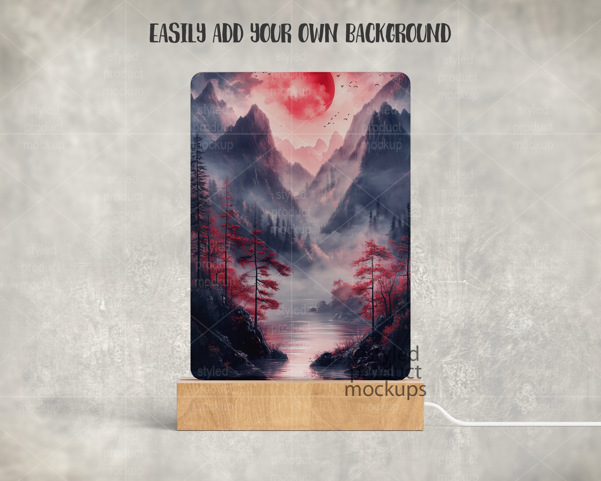 5×7 LED Plaque Mockup with Wood Base for Dye Sublimation | Add your own image and background