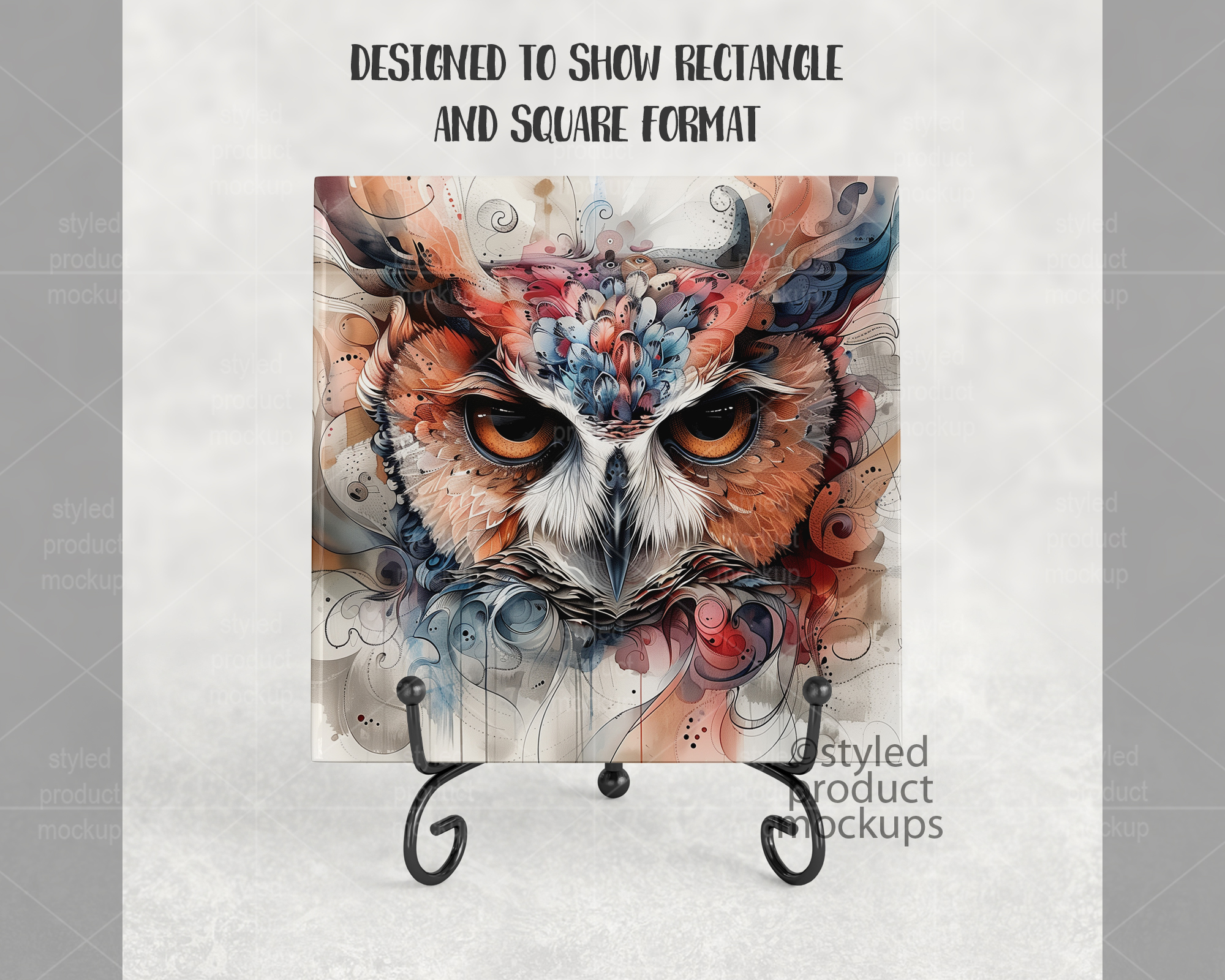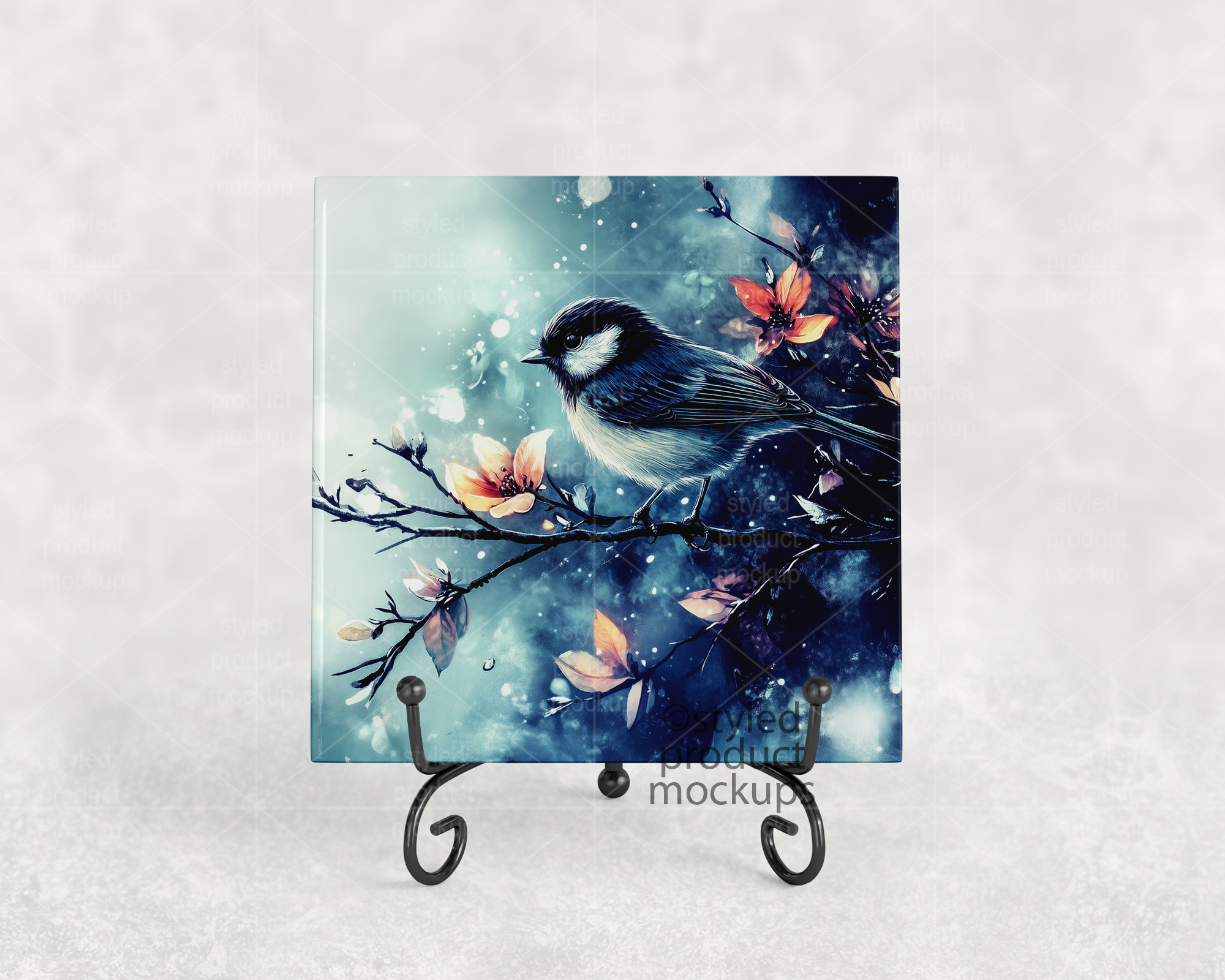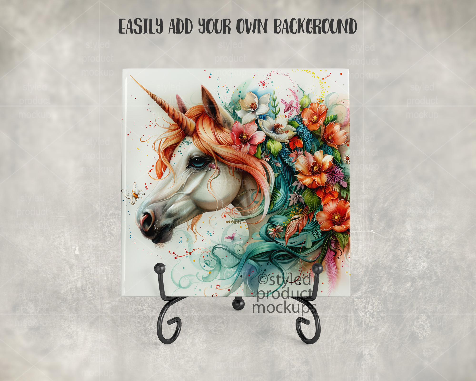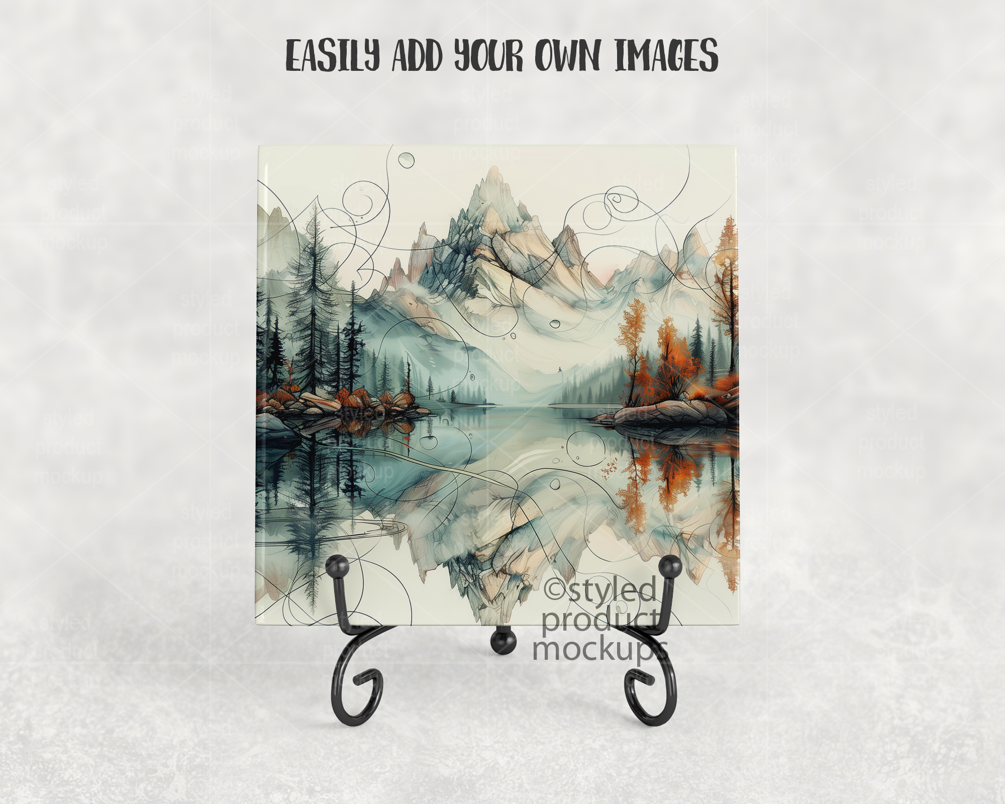 This listing is a mock-up that features a dye sublimation 6 inch tile on metal stand. Give a professional touch to your tile designs without the hassle of photographing each one. This styled product mockups template is ready to use, simply add in your own art files and background.