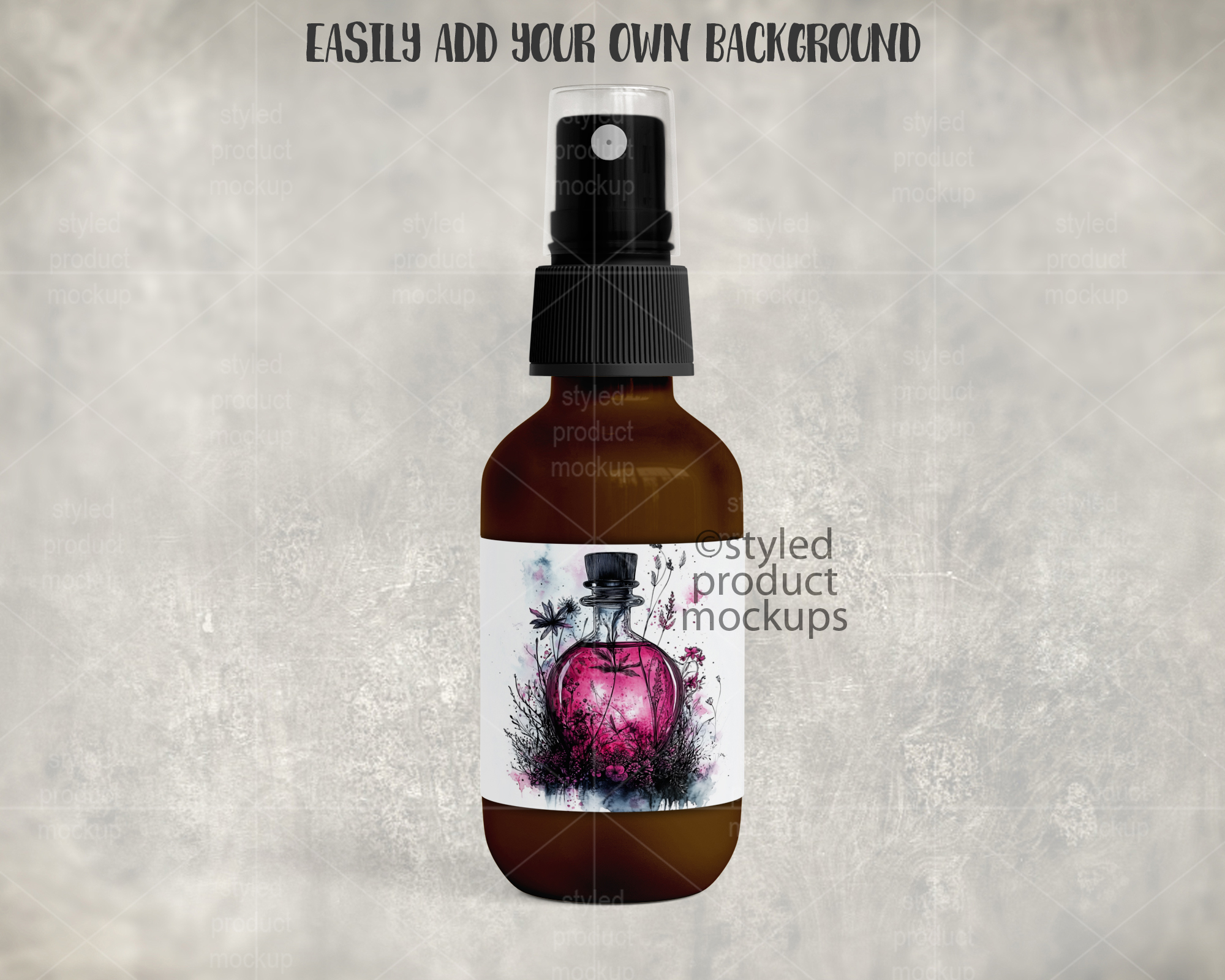 This listing is a mock-up that features an air freshener spray bottle. Give a professional touch to your spray bottle designs without the hassle of photographing each one. This styled product mockups template is ready to use, simply add in your own art files and background.