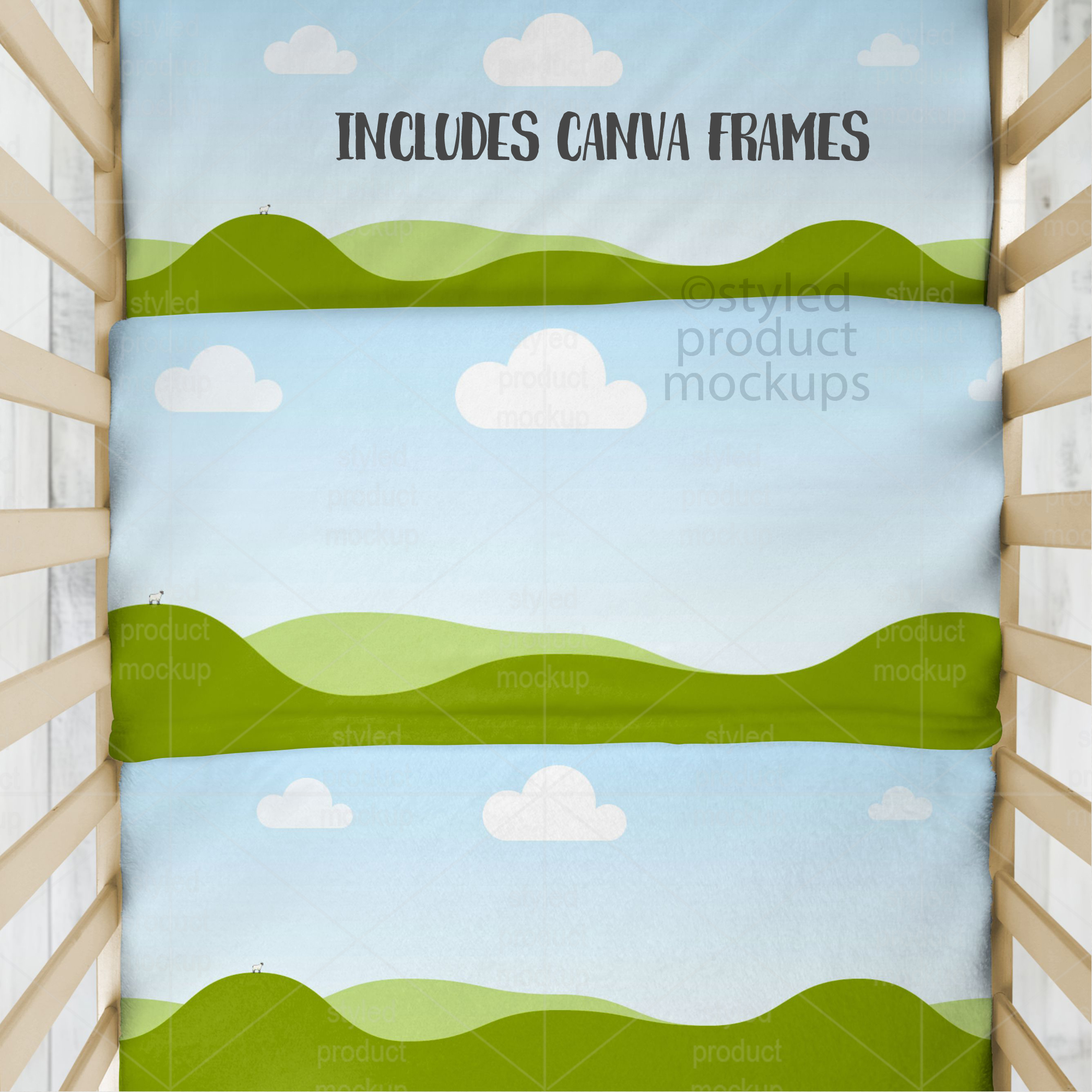 – CANVA link with frame with PNG shading overlays. Click the link in the CANVATemplate PDF. The Canva link has everything put together for you. All you need to do is drag the frame to the top of the layer list, drag and drop your image into it and then move back behind the shading layers. Includes frame for the sheet, blanket top and blanket bottom.
