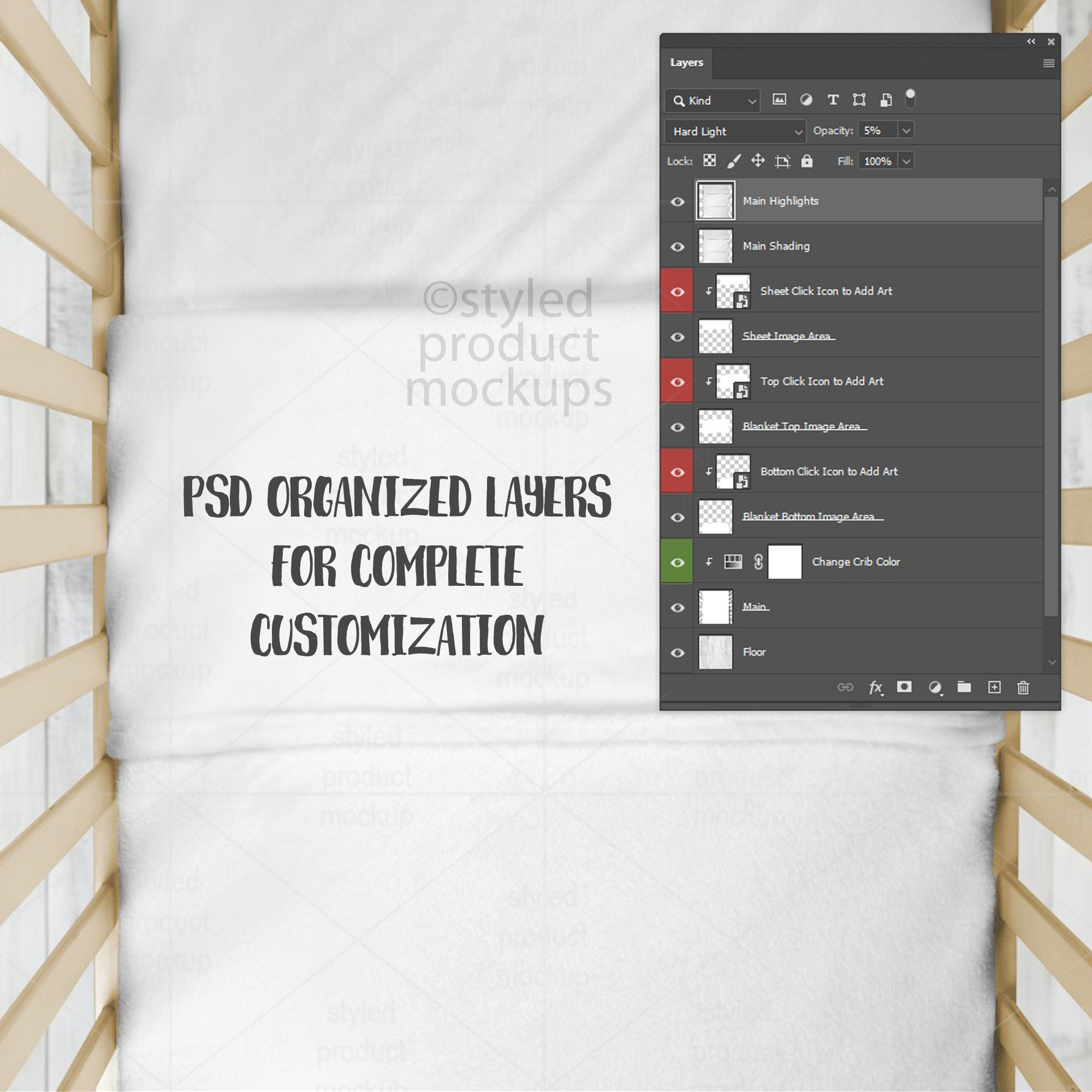 – Smart PSD: For Photoshop CS5+/CC, Photopea. File is set up with Smart Objects for the sheet, blanket top and blanket bottom. Simply double click the layers marked in Red to paste your image in and you are done!
