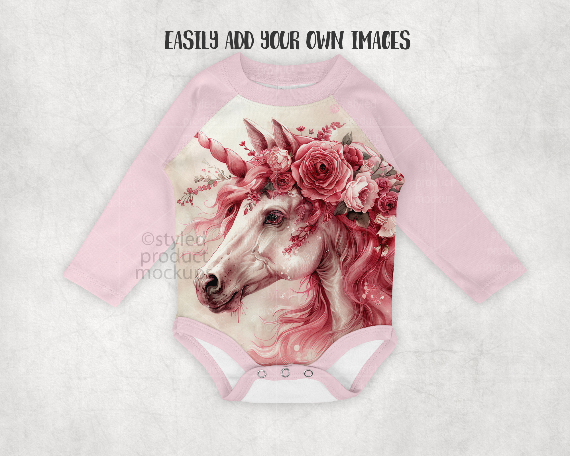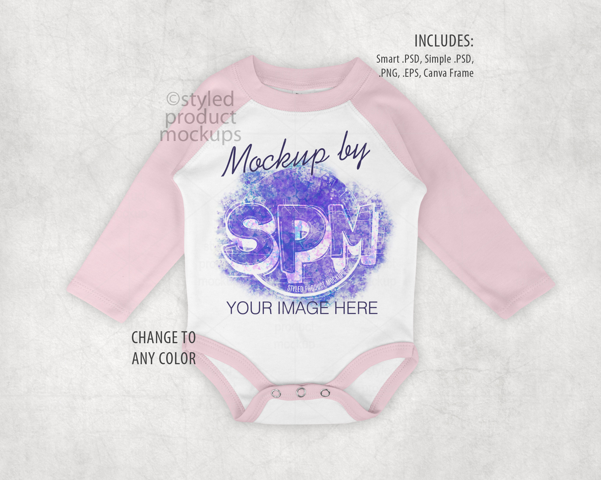 This mockup is ideal for displaying baby clothing designs, sublimation artwork, print-on-demand products, and nursery-themed graphics. Simply place your design, adjust to your liking, and export beautiful listings in minutes.