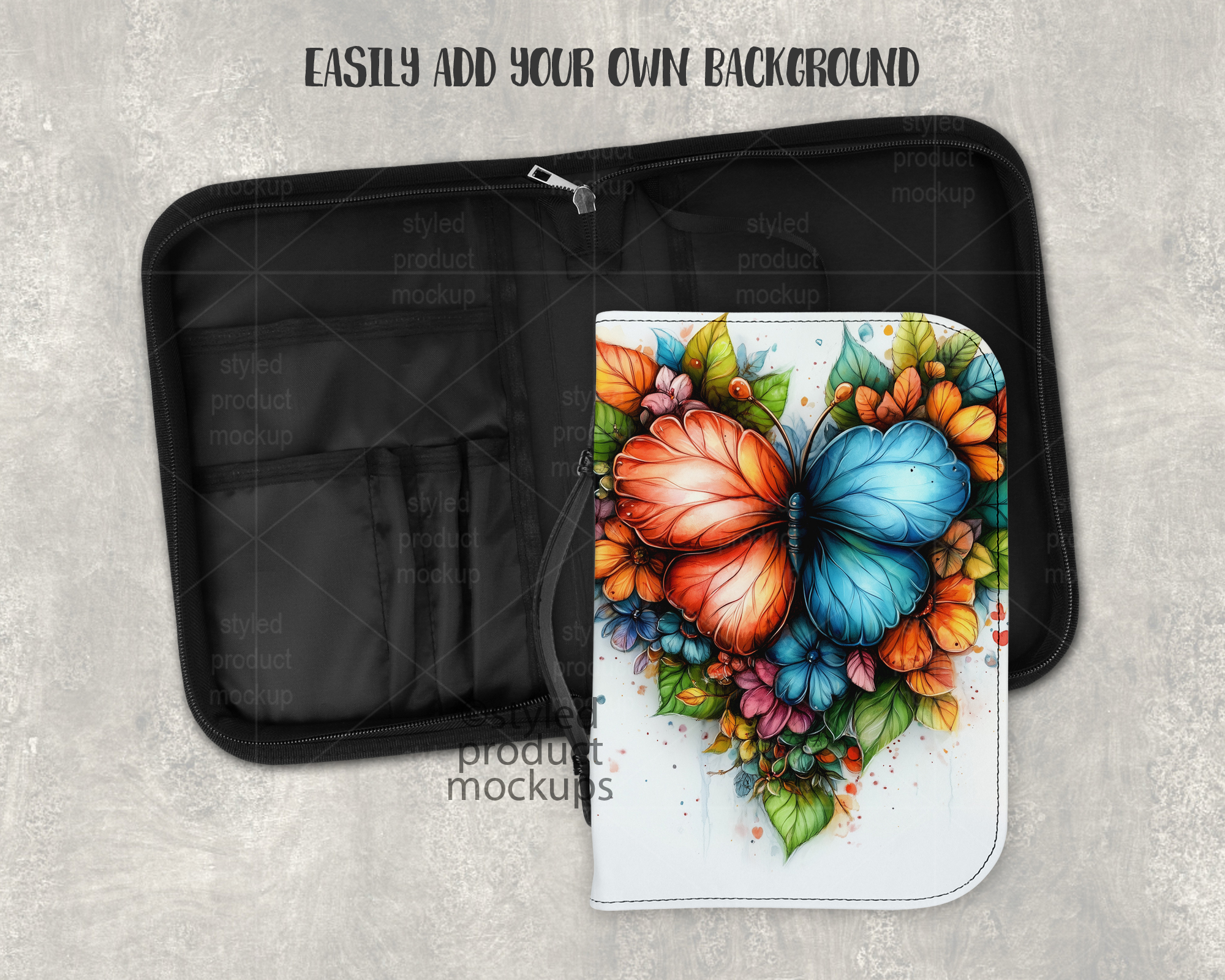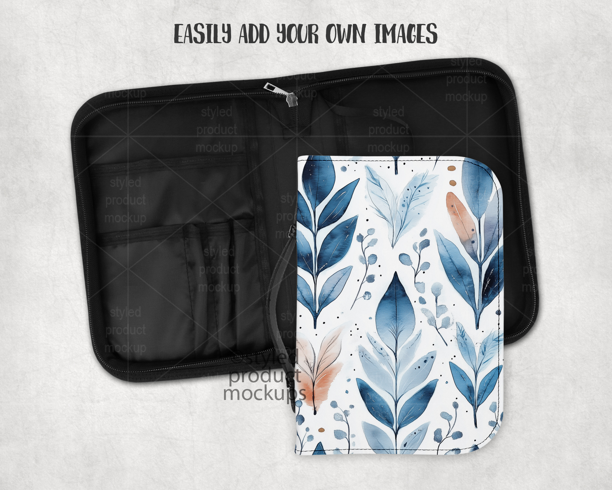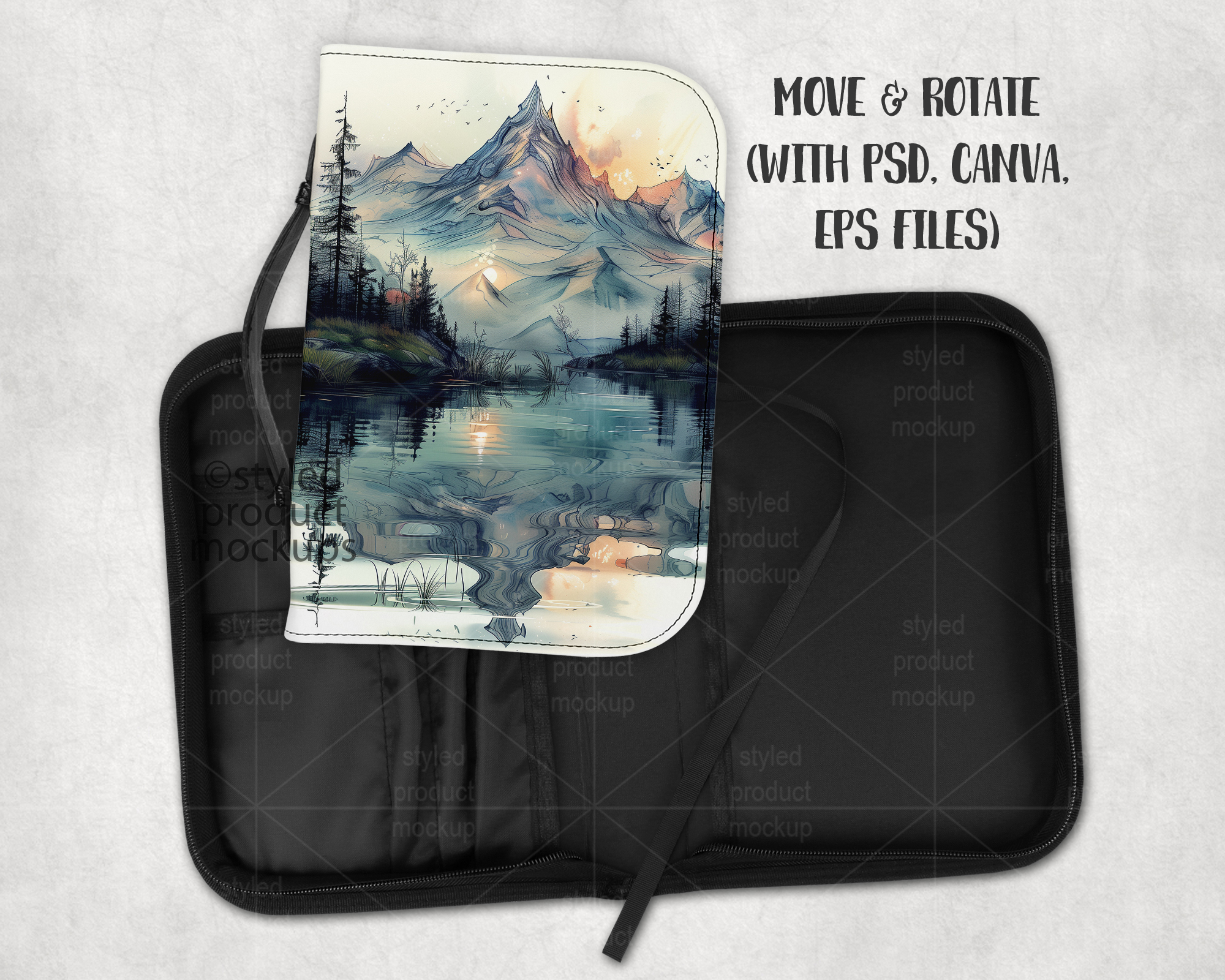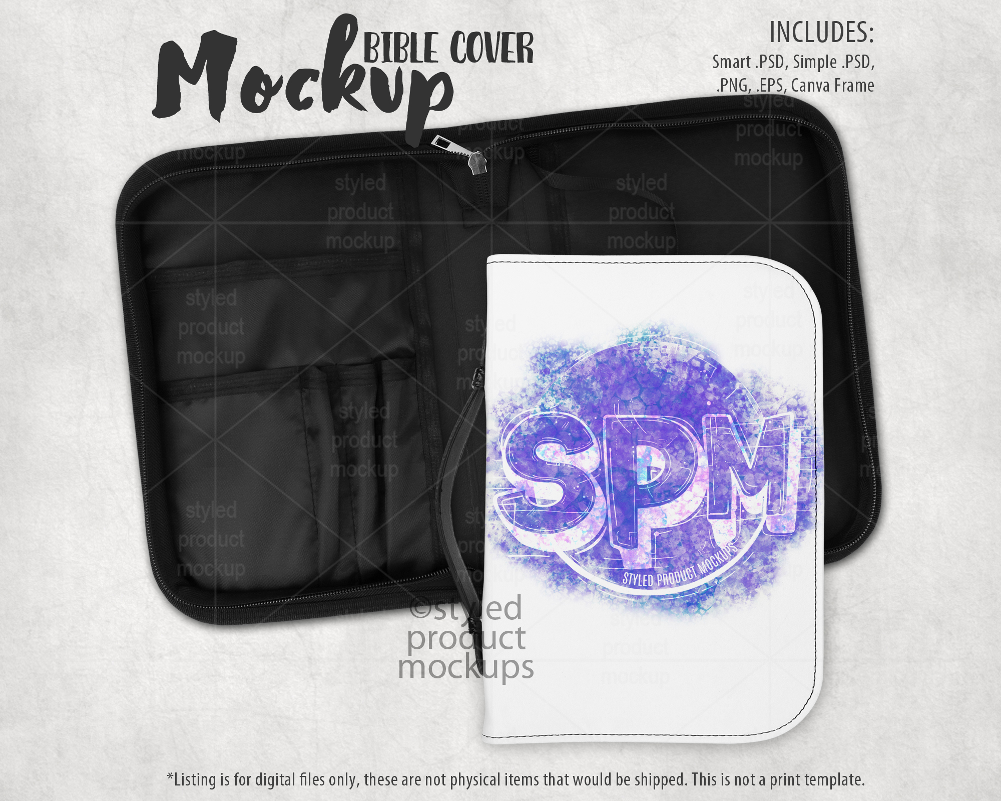This listing is a mock-up that features the front and inside view of a dye sublimation Bible cover measuring 7.01 x 10.2 inches. Give a professional touch to your bible cover designs without the hassle of photographing each one. This styled product mockups template is ready to use, simply add in your own art files and background.