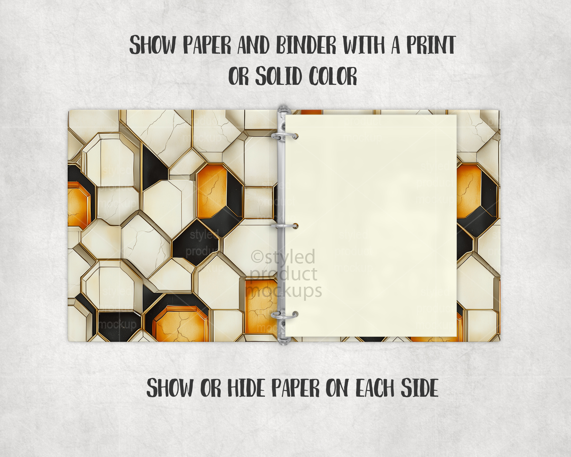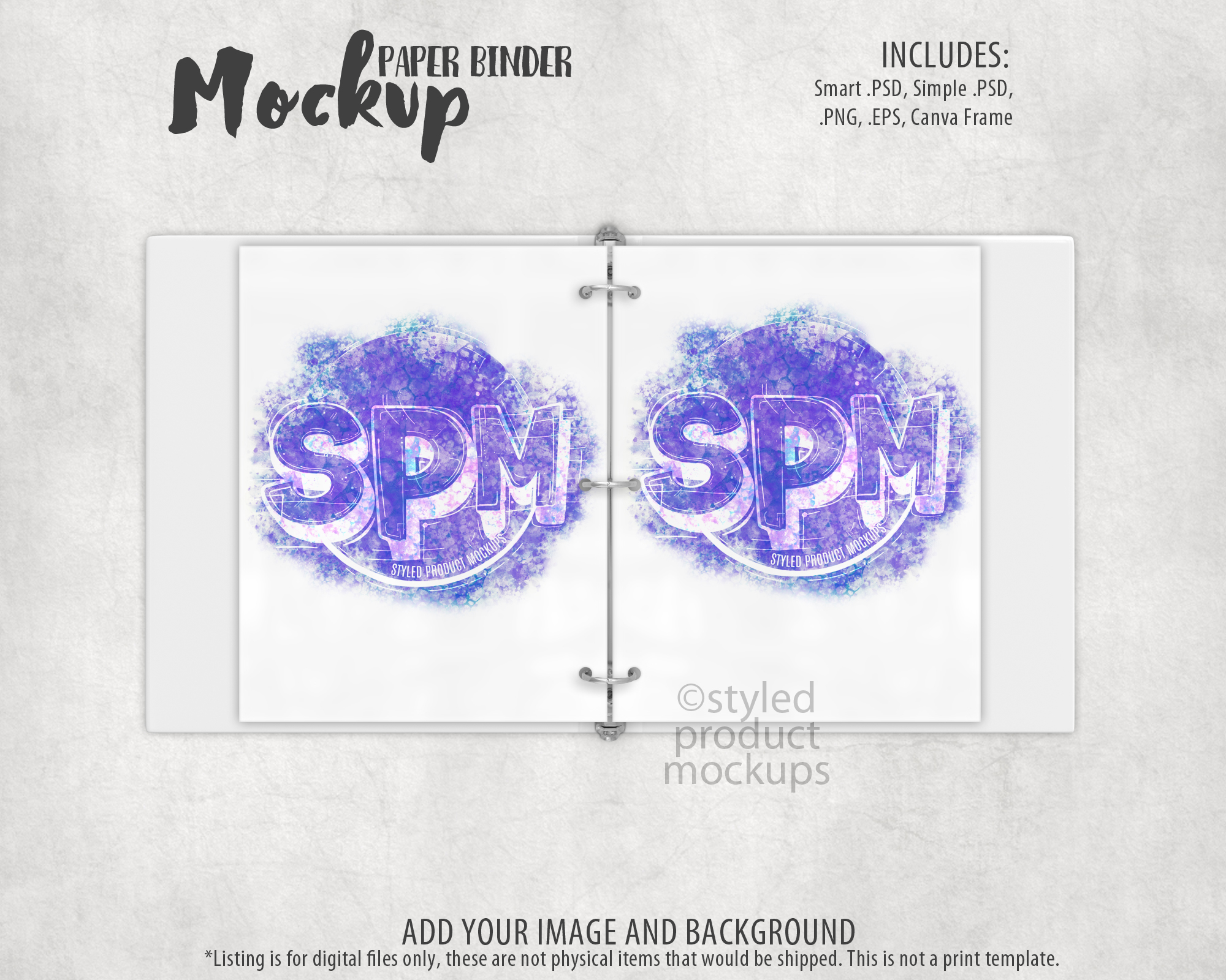 This listing is a mock-up that features a 3 ring binder with 8.5×11” paper inside. Give a professional touch to your binder paper designs without the hassle of photographing each one. This styled product mockups template is ready to use, simply add in your own art files and background.