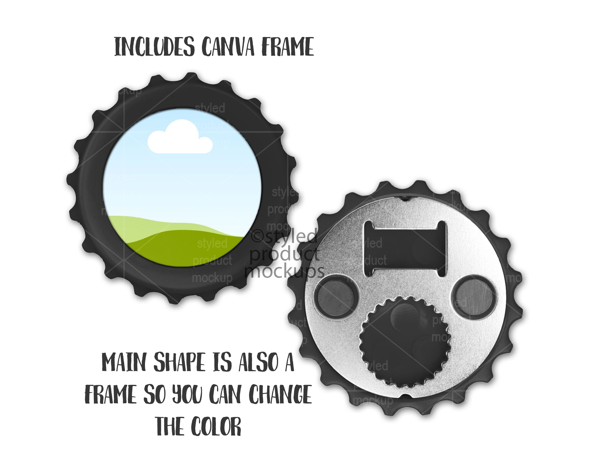 Bottlecap shaped bottle opener mockup | Add your own image and background