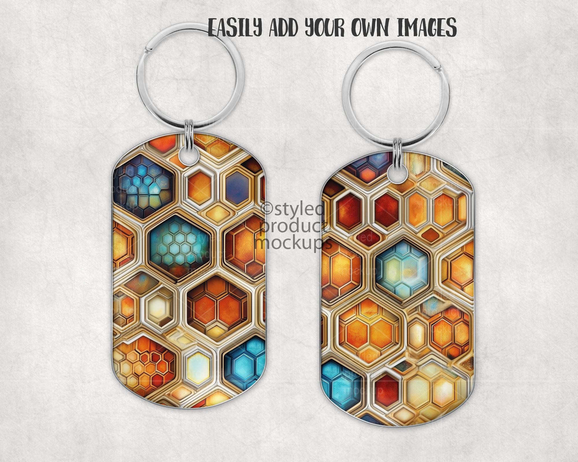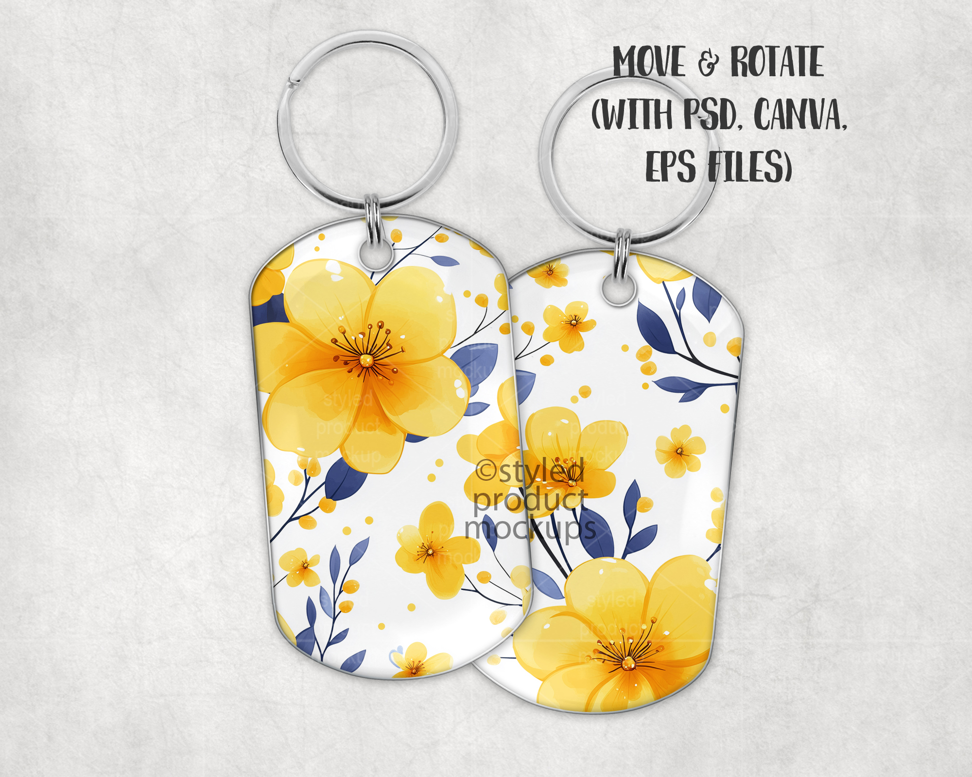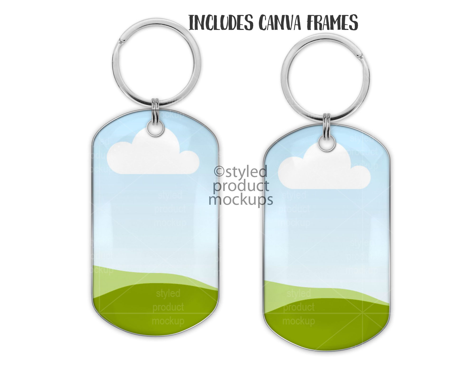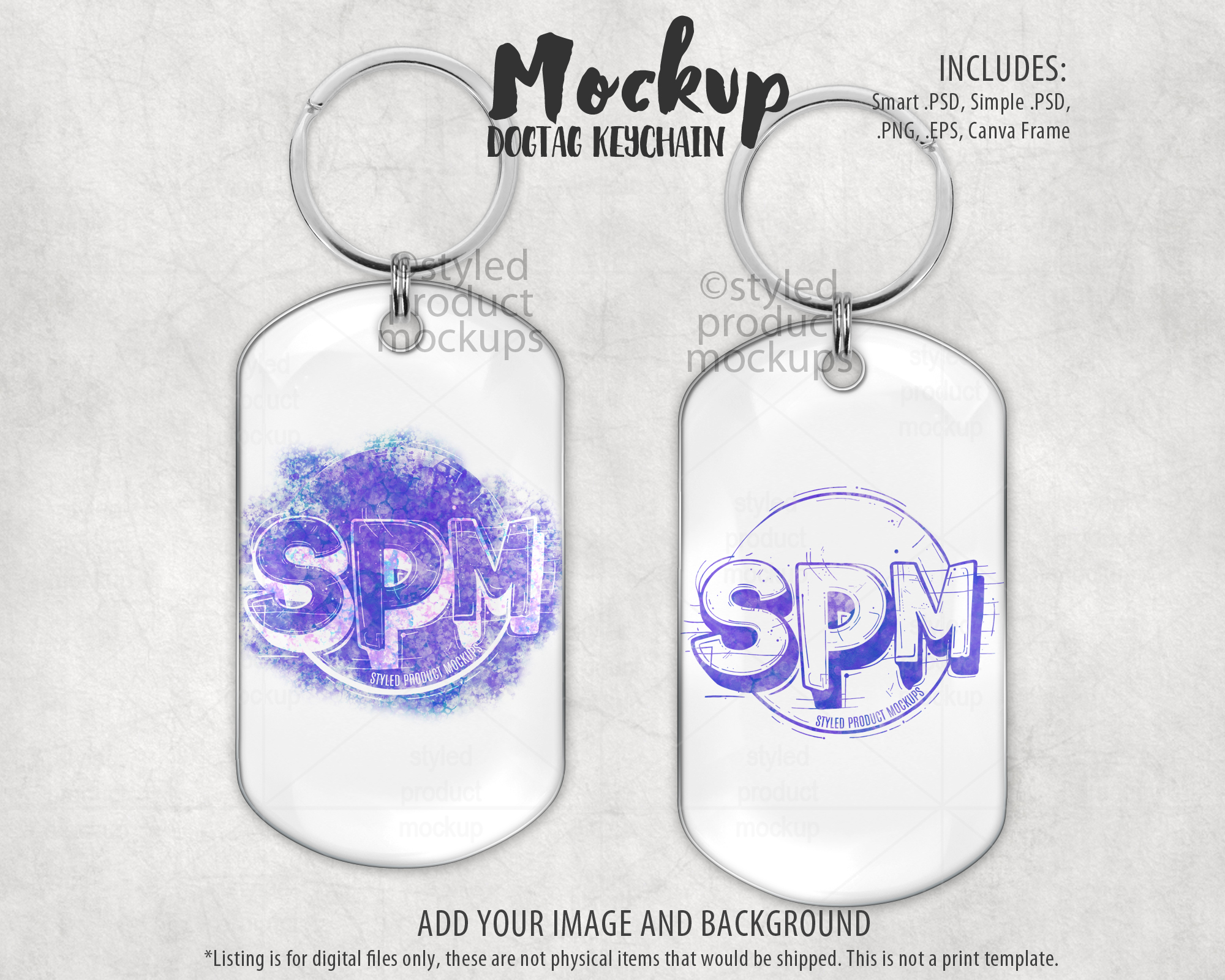 This listing is a mock-up that features a dye sublimation dog tag metal keychain. Give a professional touch to your keyring designs without the hassle of photographing each one. This styled product mockups template is ready to use, simply add in your own art files and background.