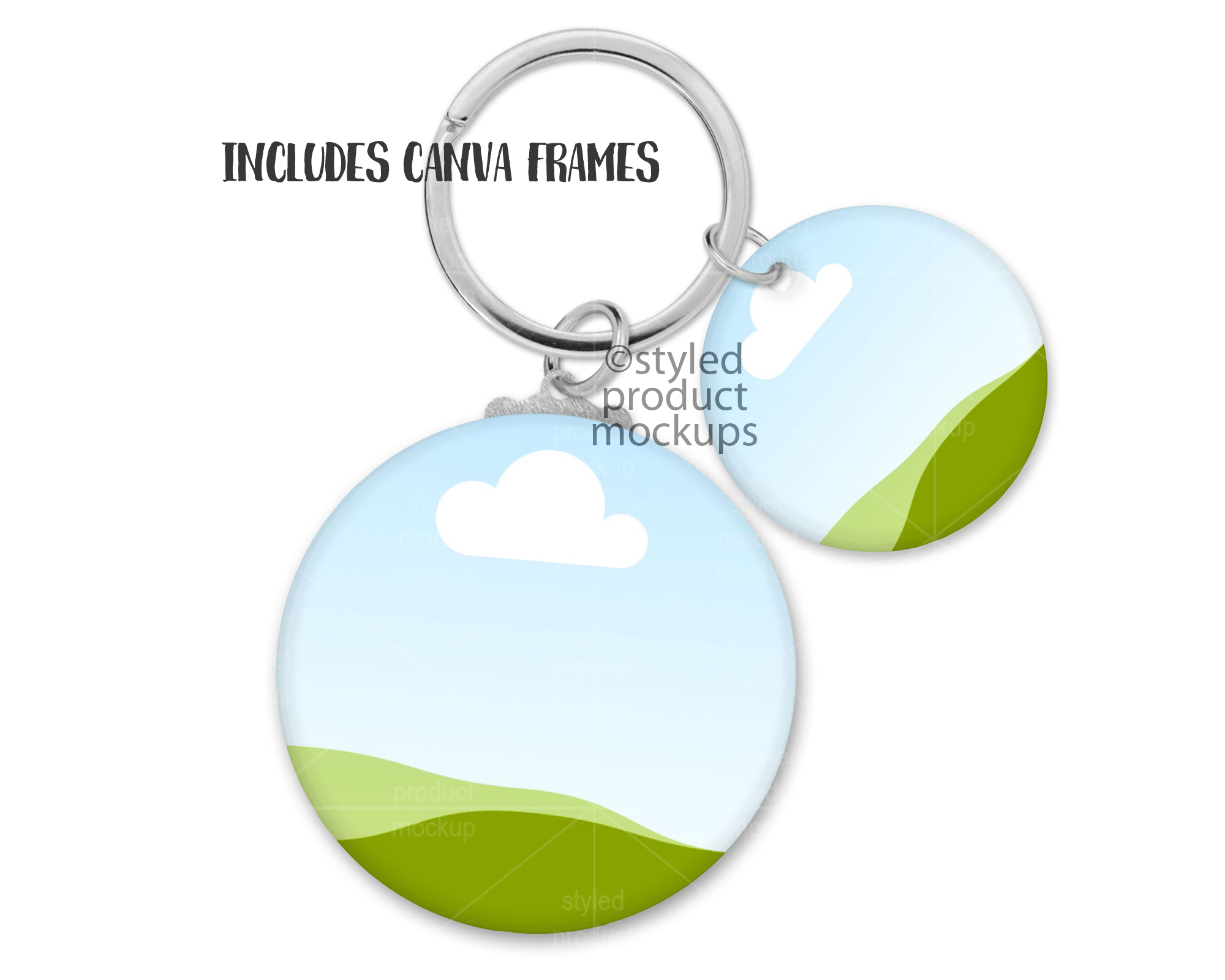 Key Words: button, keychain, keyring, two, button keychain, mockup, template, display, PSD, PNG, digital, mock-up