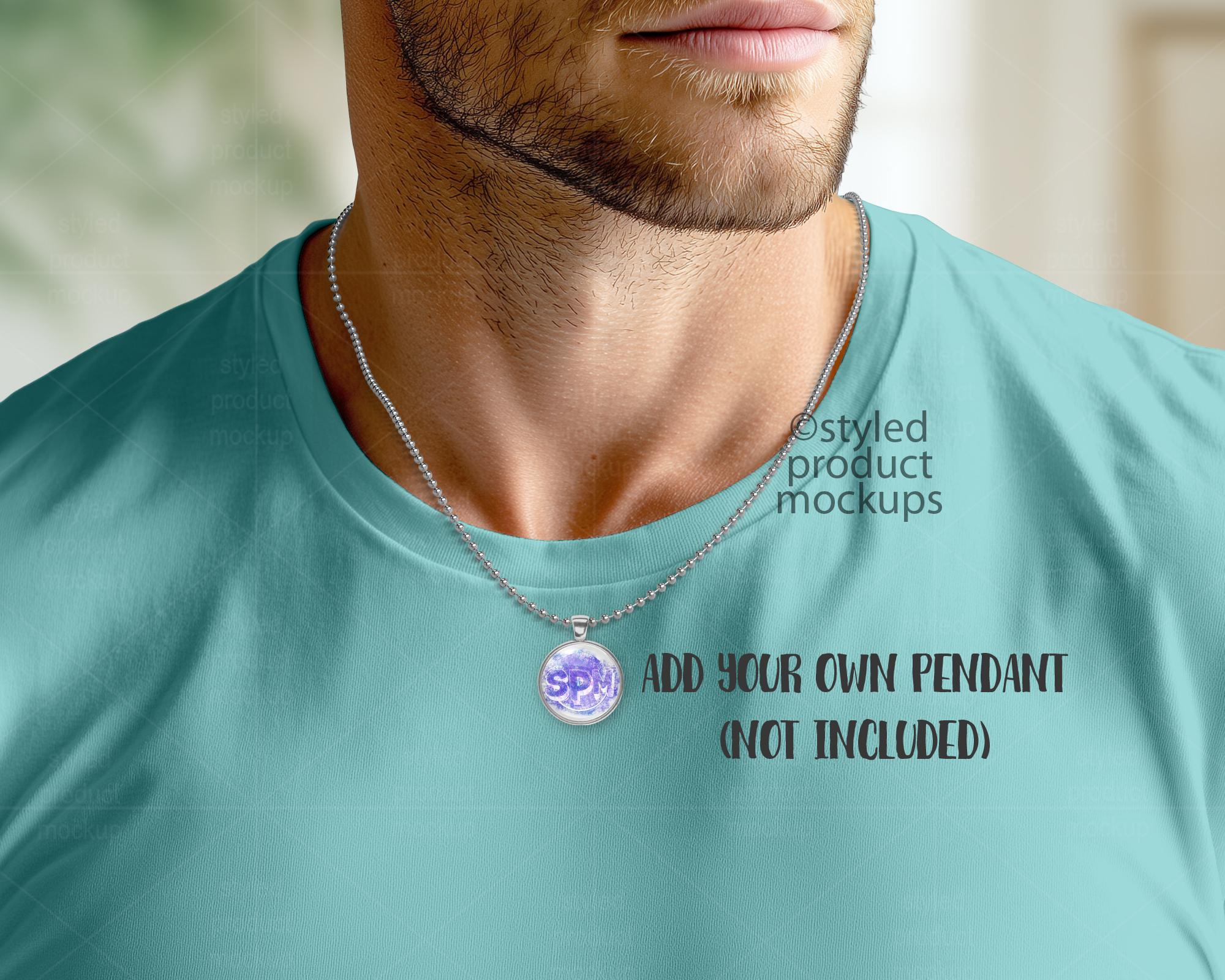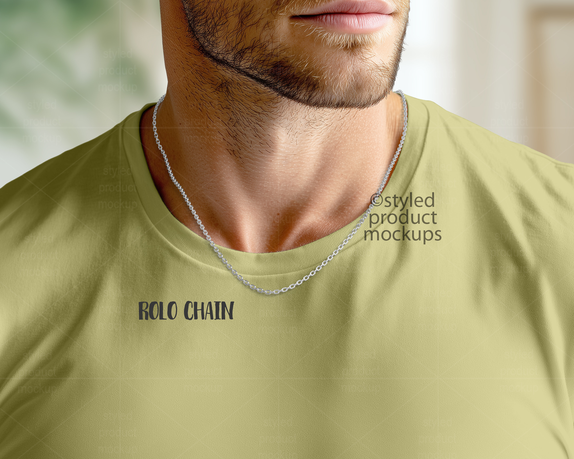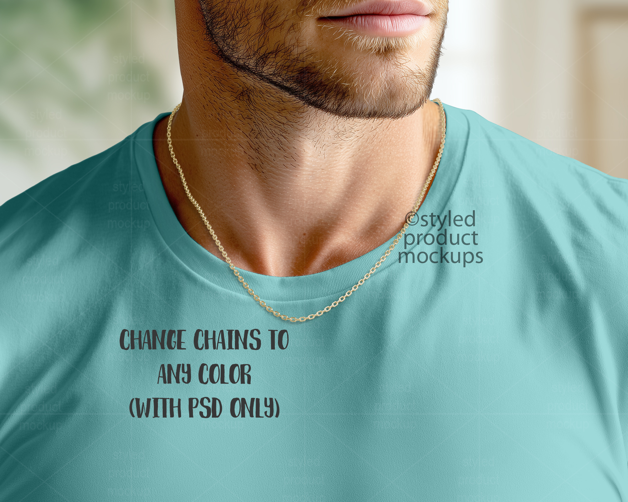 Empty Chain on Male Model Mockup | Add your own image and background | Photoshop Smart Mockup | Canva Frame Mockup