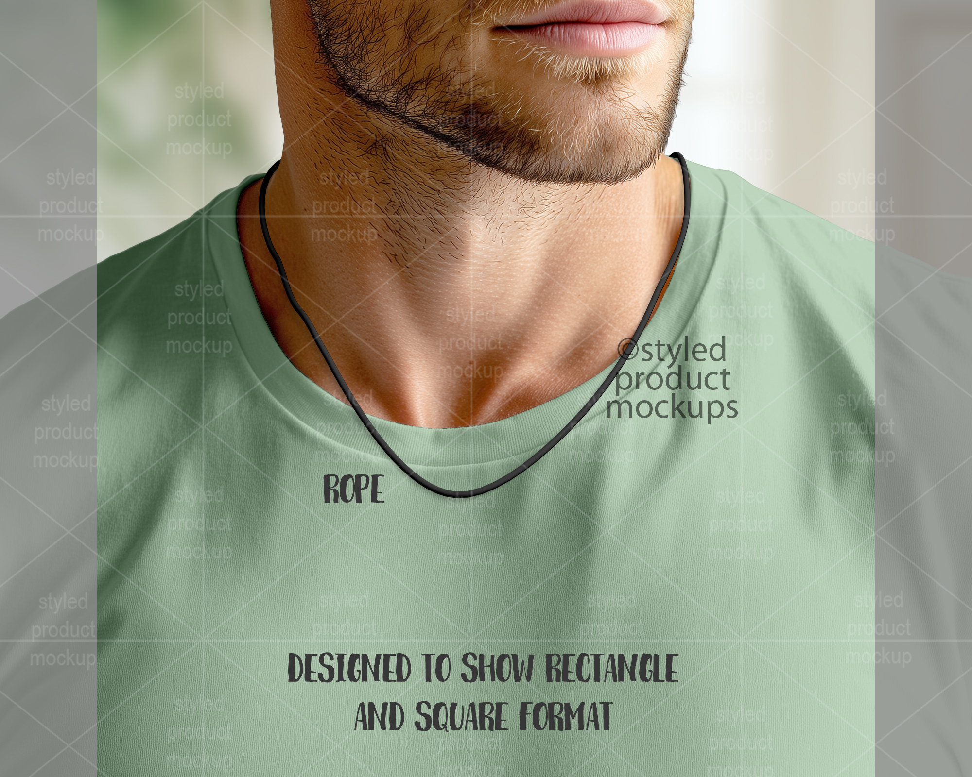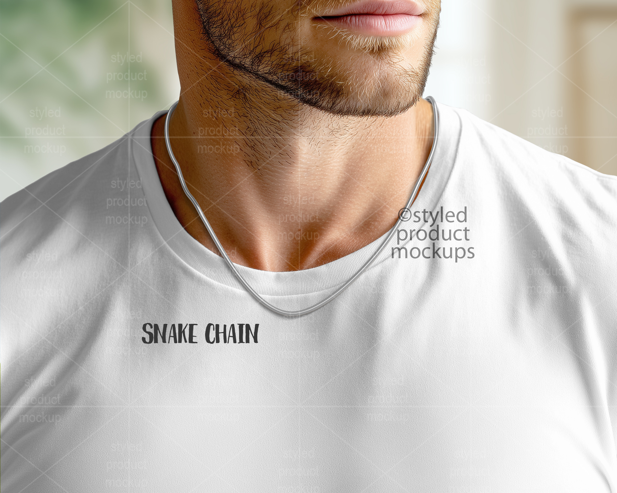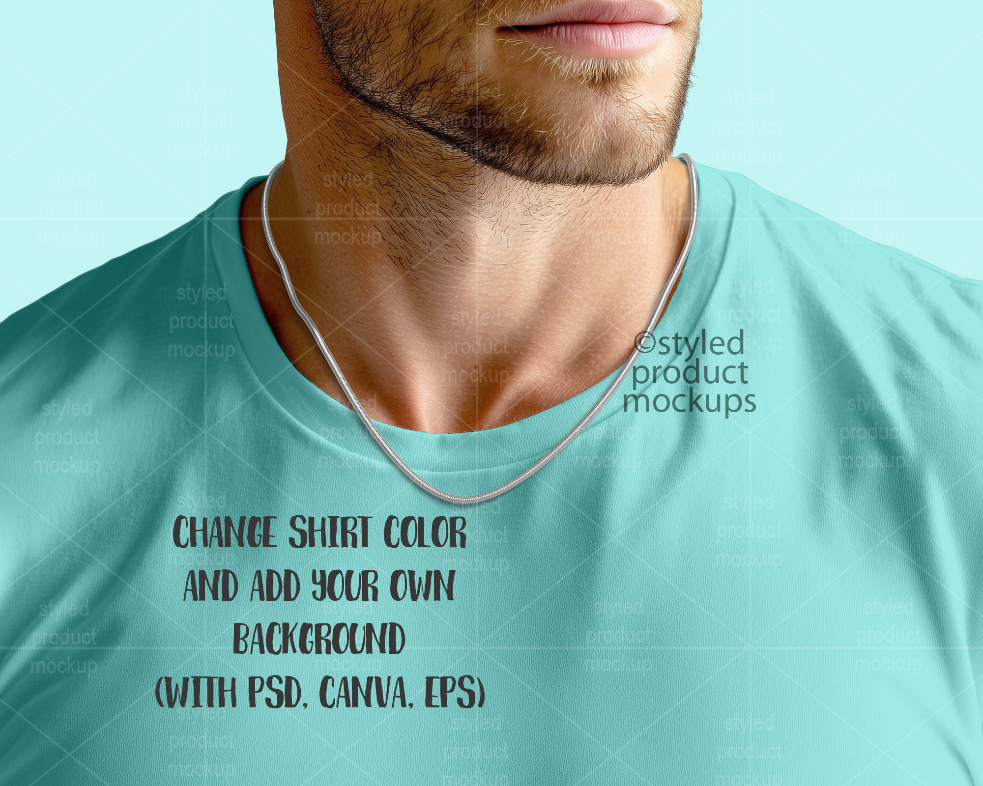 Empty Chain on Male Model Mockup | Add your own image and background | Photoshop Smart Mockup | Canva Frame Mockup