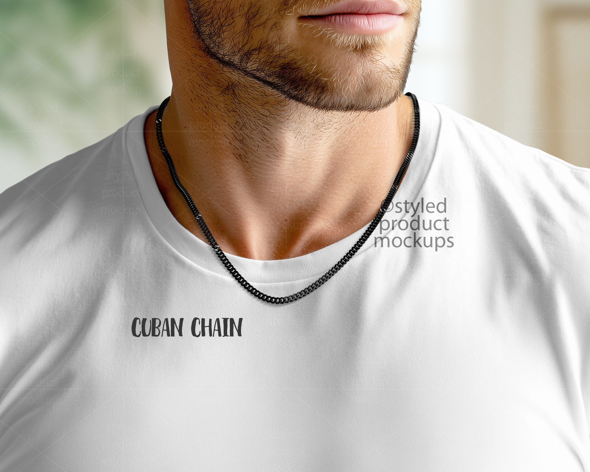 Key Words: chain mockup, empty chain mockup, chain on model, male model, necklace mockup, canva mockup, sublimation, mockup, photoshop mockup, PSD mockup, PNG mockup, stock photography