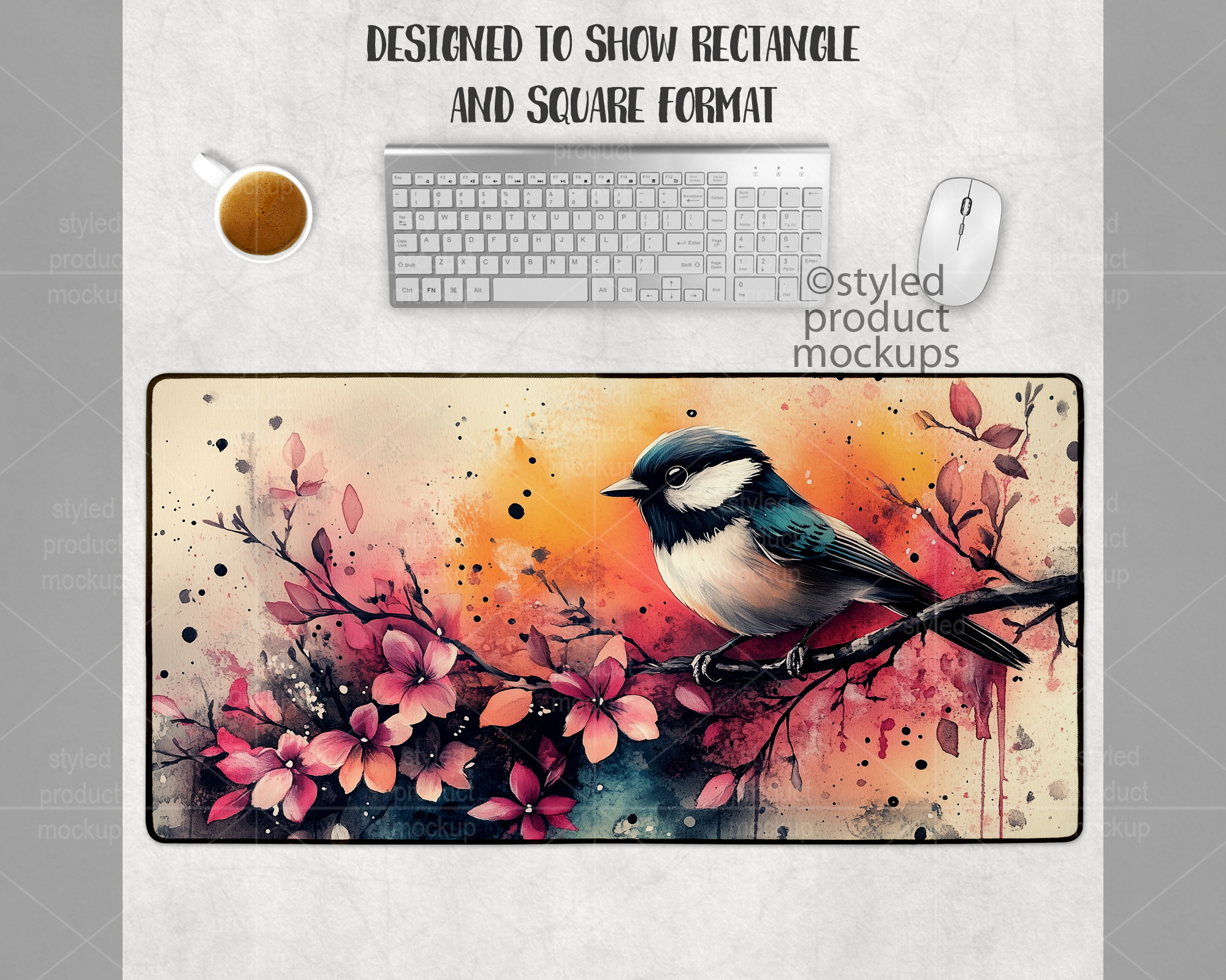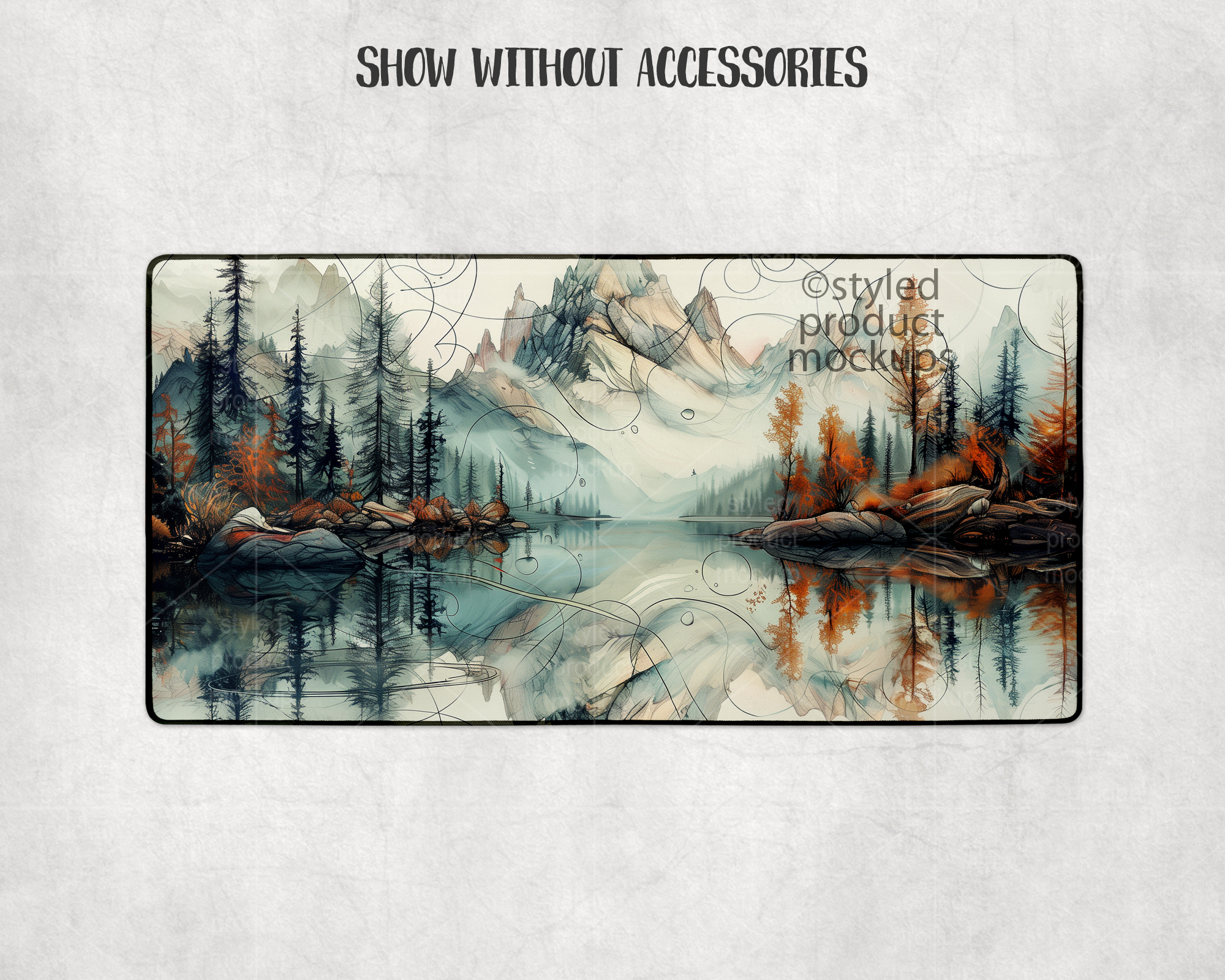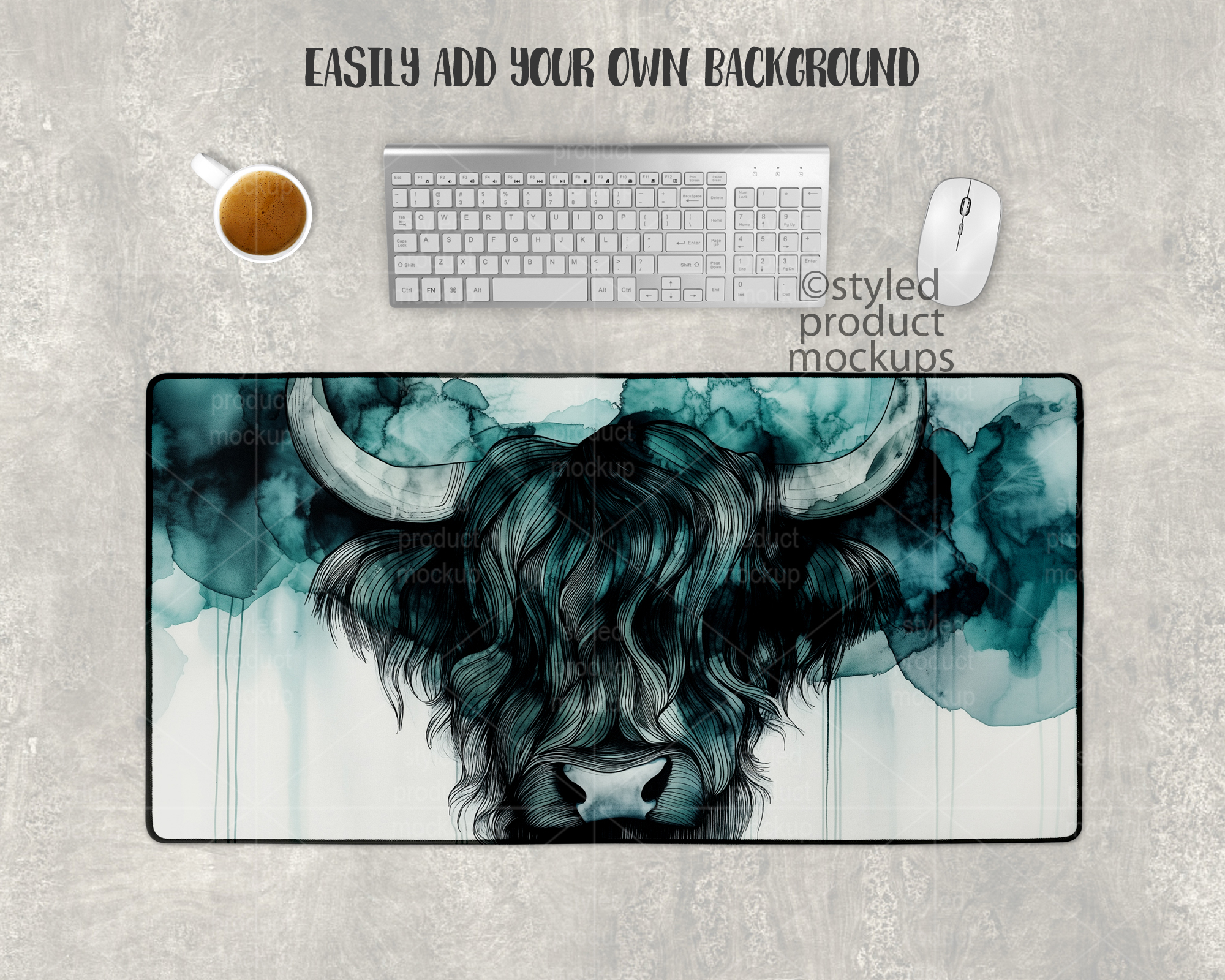 This listing is a mock-up that features a dye sublimation 31×15.5 inch gaming desk mat with a black stitched border. Give a professional touch to your keyboard mat designs without the hassle of photographing each one. This styled product mockups template is ready to use, simply add in your own art files and background.