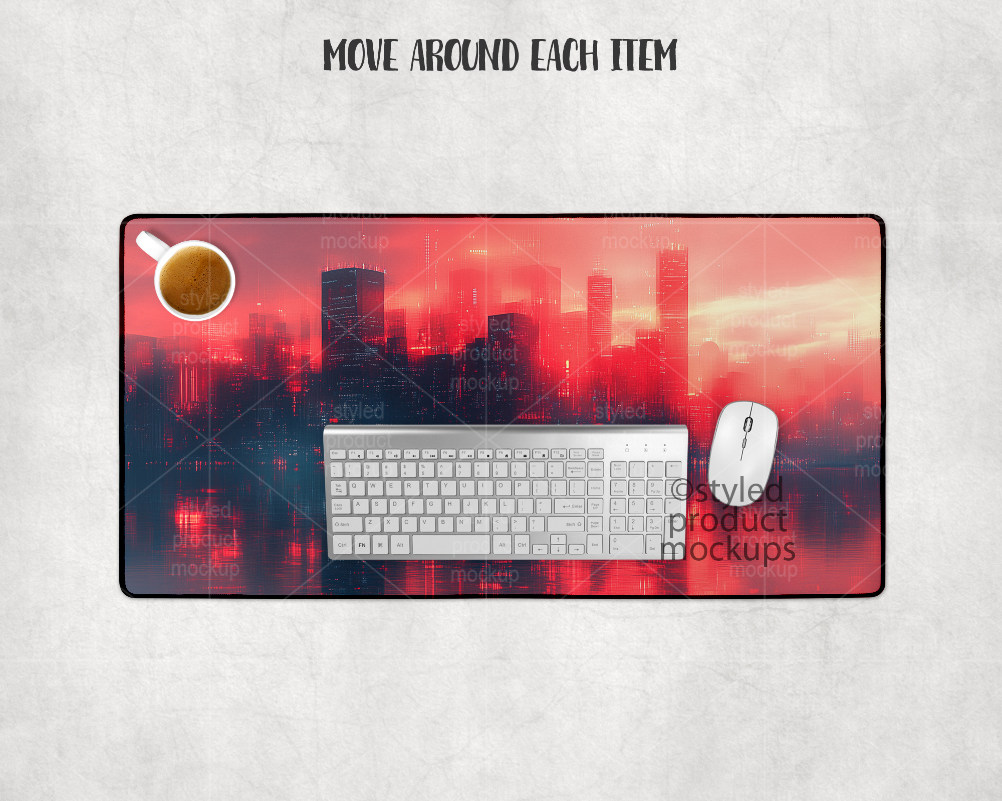 Key Words: mat, keyboard, gaming, desk, desk mat, sublimation, mockup, template, display, PSD, PNG, digital, stock photography