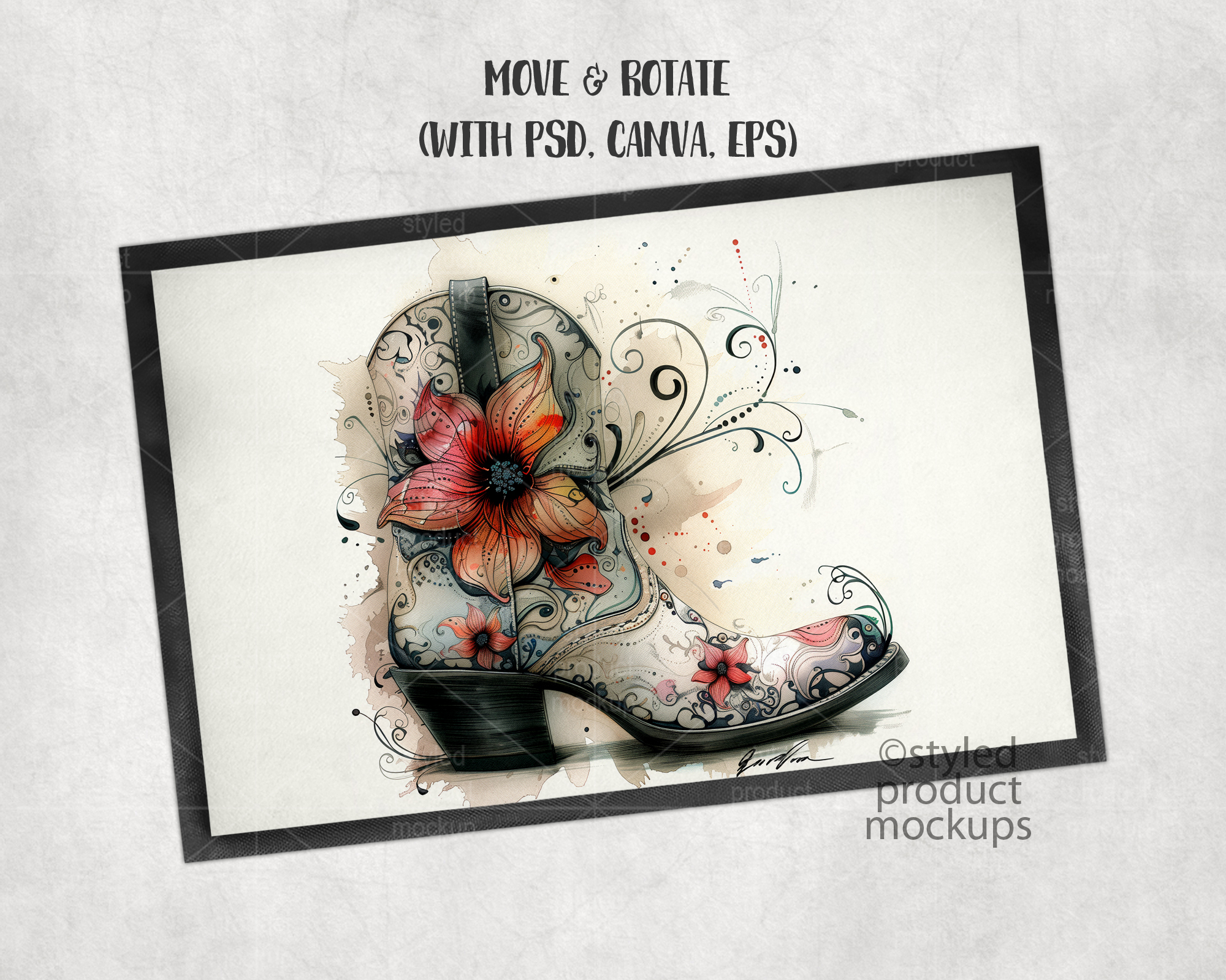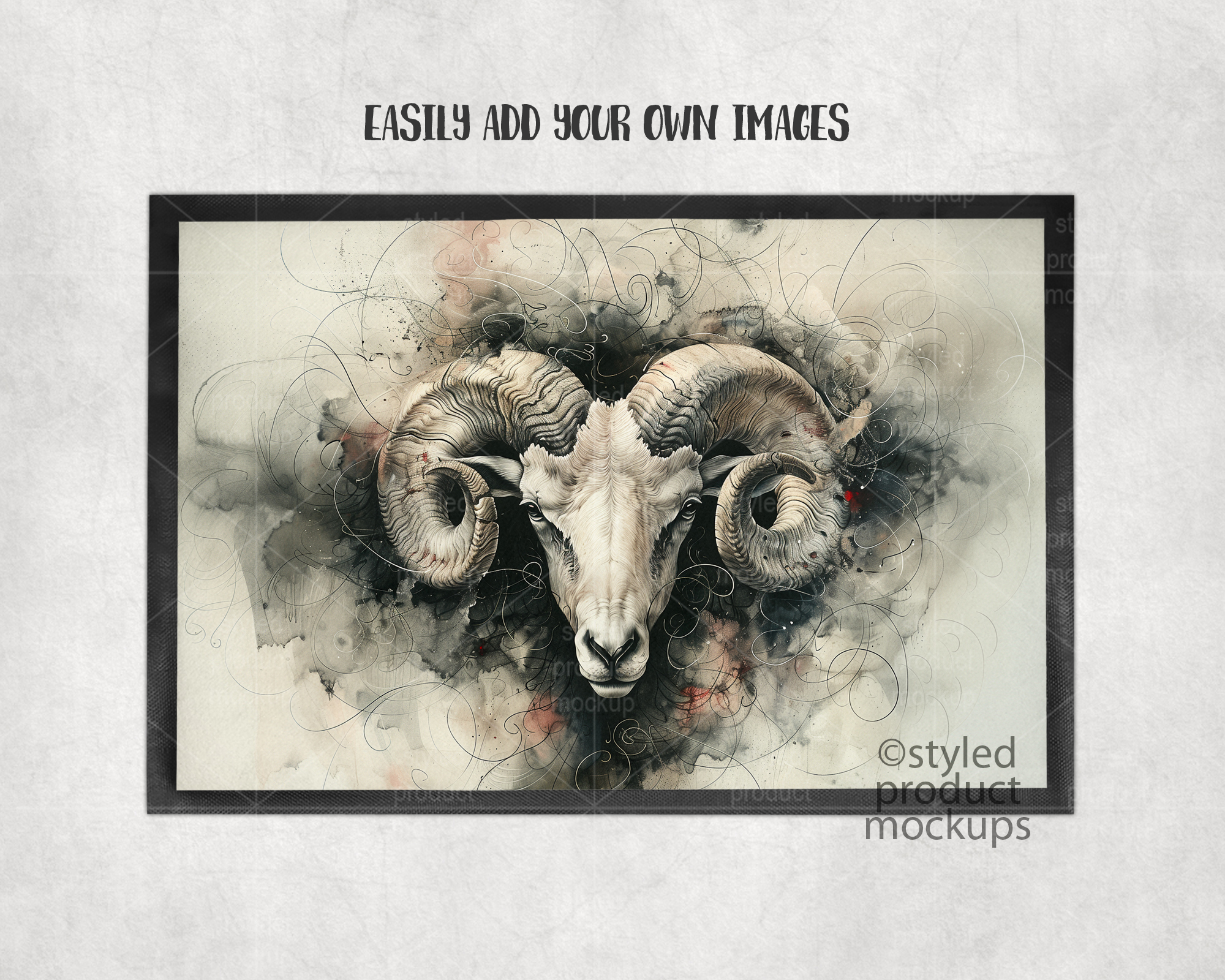 This listing is a mock-up that features a dye sublimation 24×16 inch floor mat. Give a professional touch to your door mat designs without the hassle of photographing each one. This styled product mockups template is ready to use, simply add in your own art files and background.