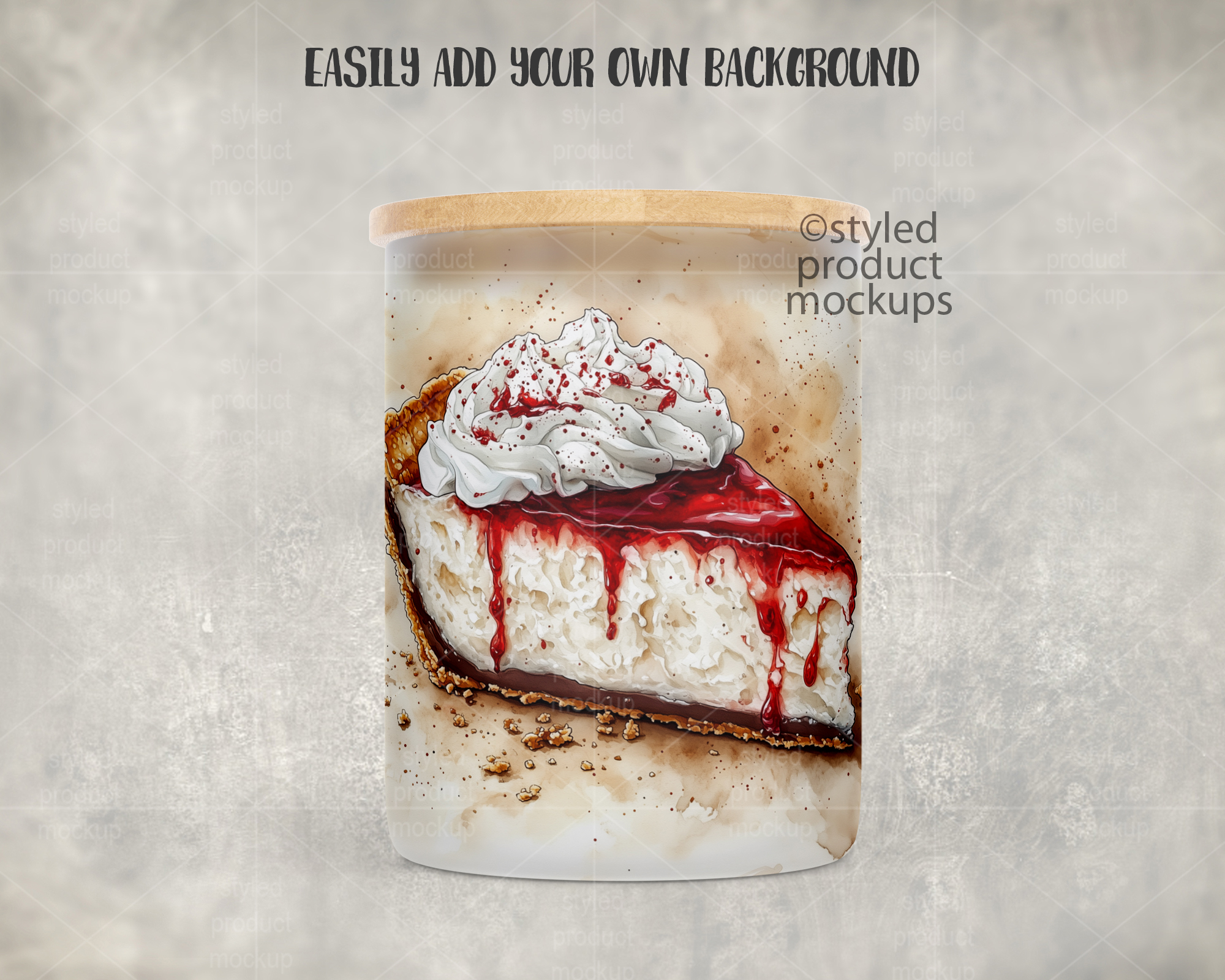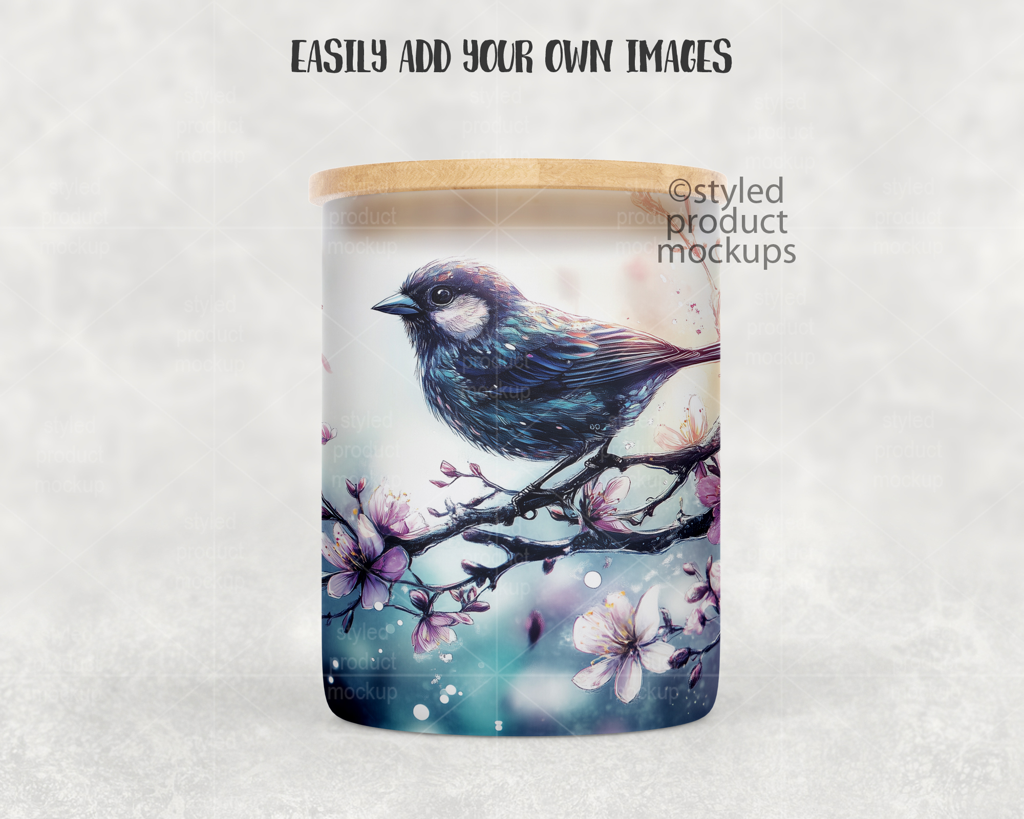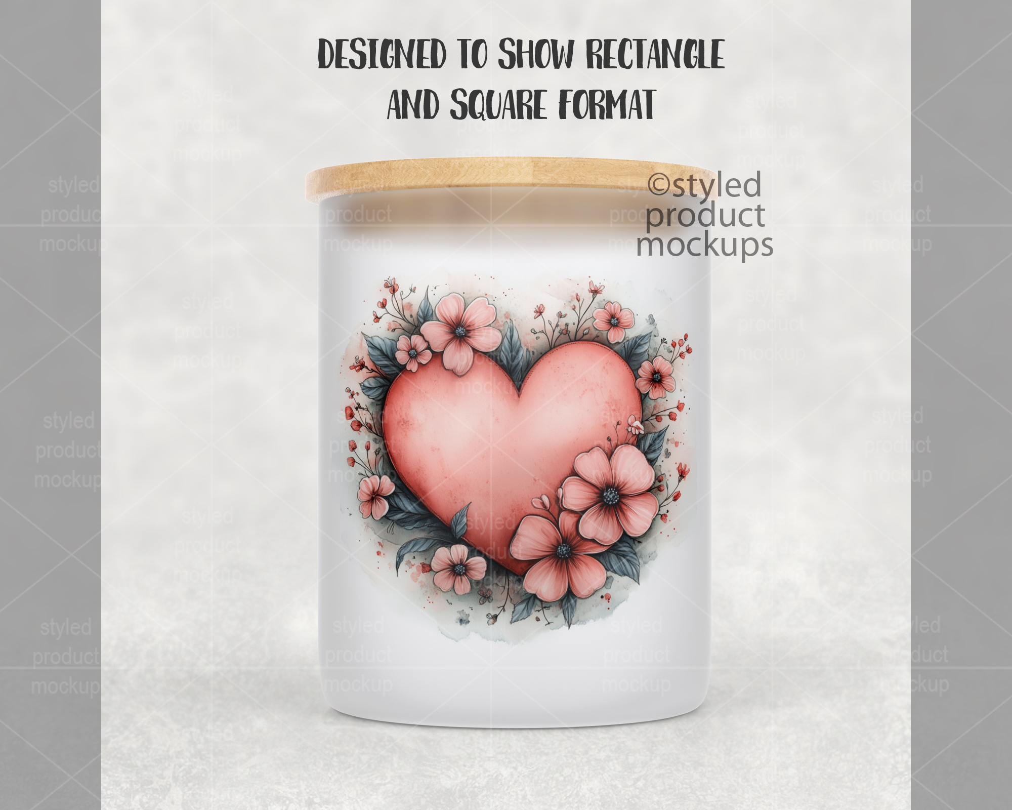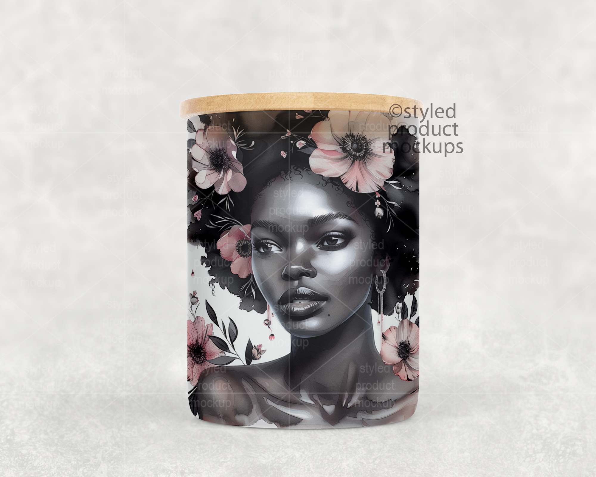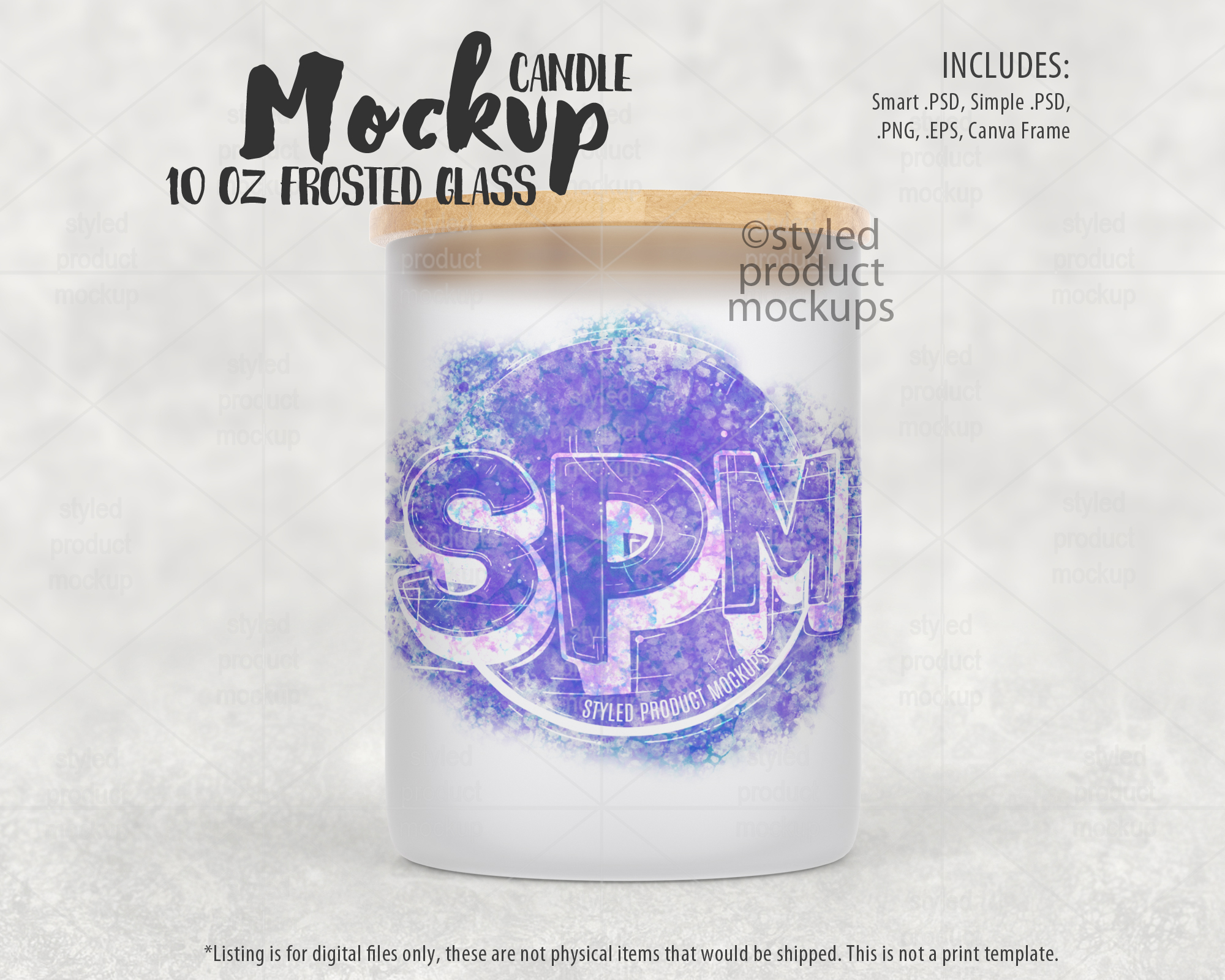 This listing is a mock-up that features a dye sublimation 10oz frosted glass candle jar with bamboo lid. Give a professional touch to your jar designs without the hassle of photographing each one. This styled product mockups template is ready to use, simply add in your own art files and background.