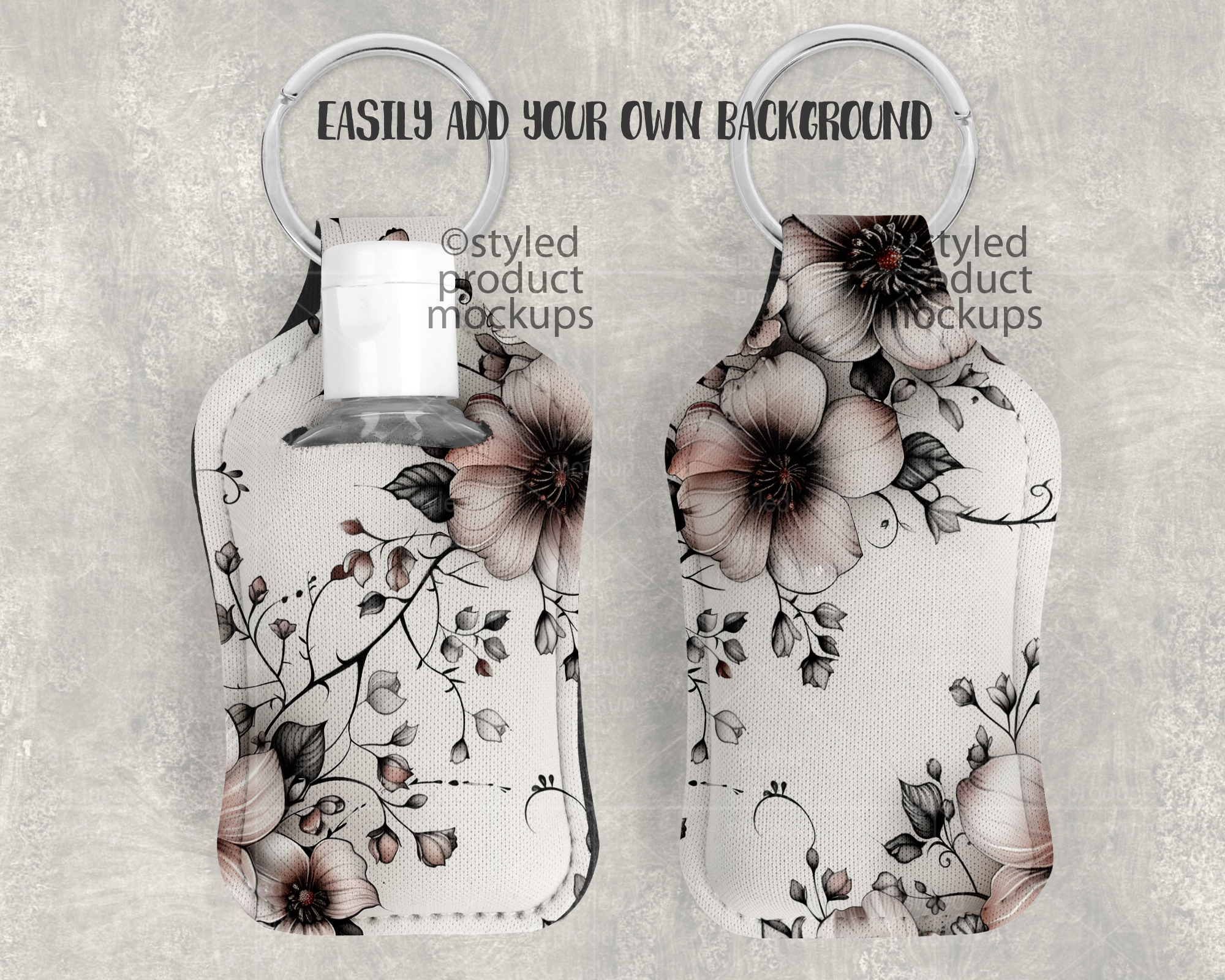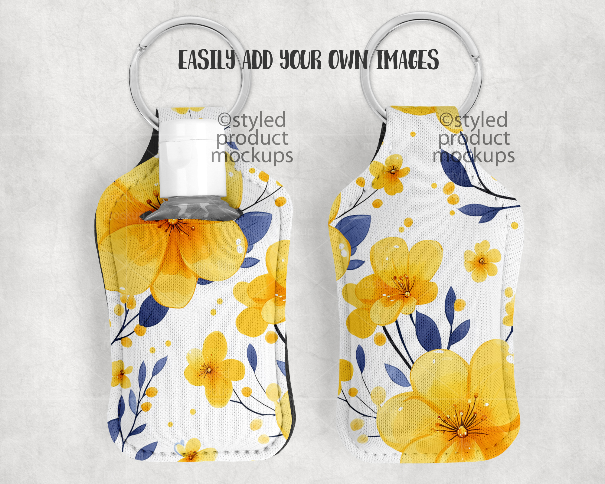 Dye sublimation hand sanitizer holder keychain Mockup | Add your own image and background