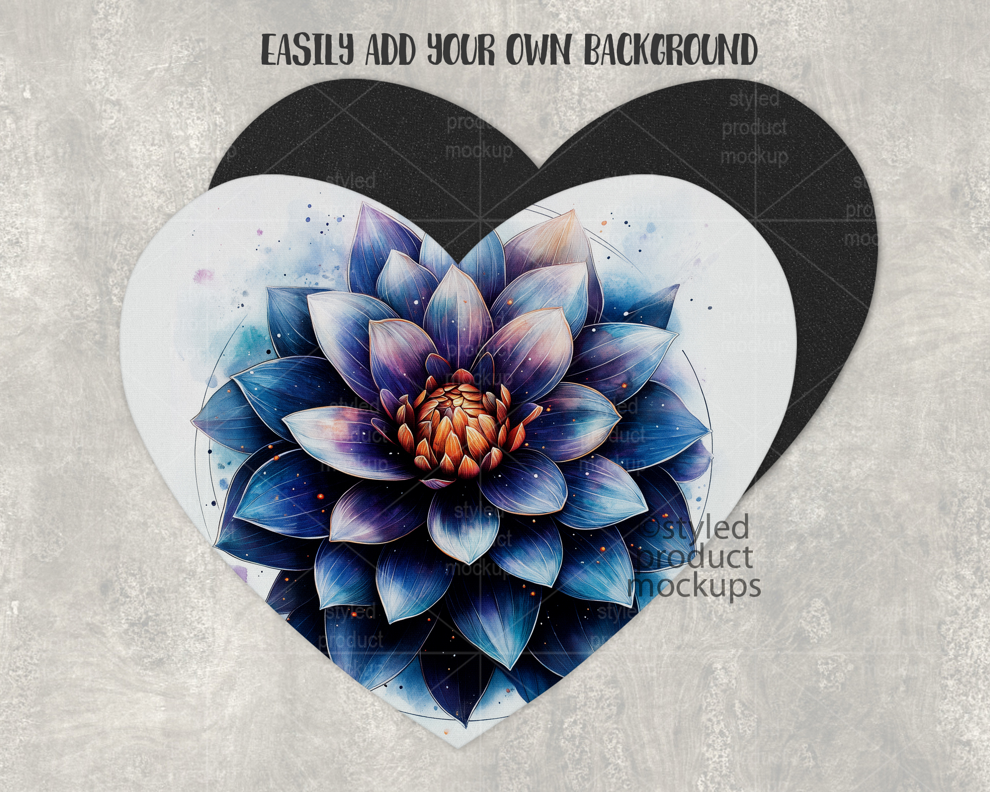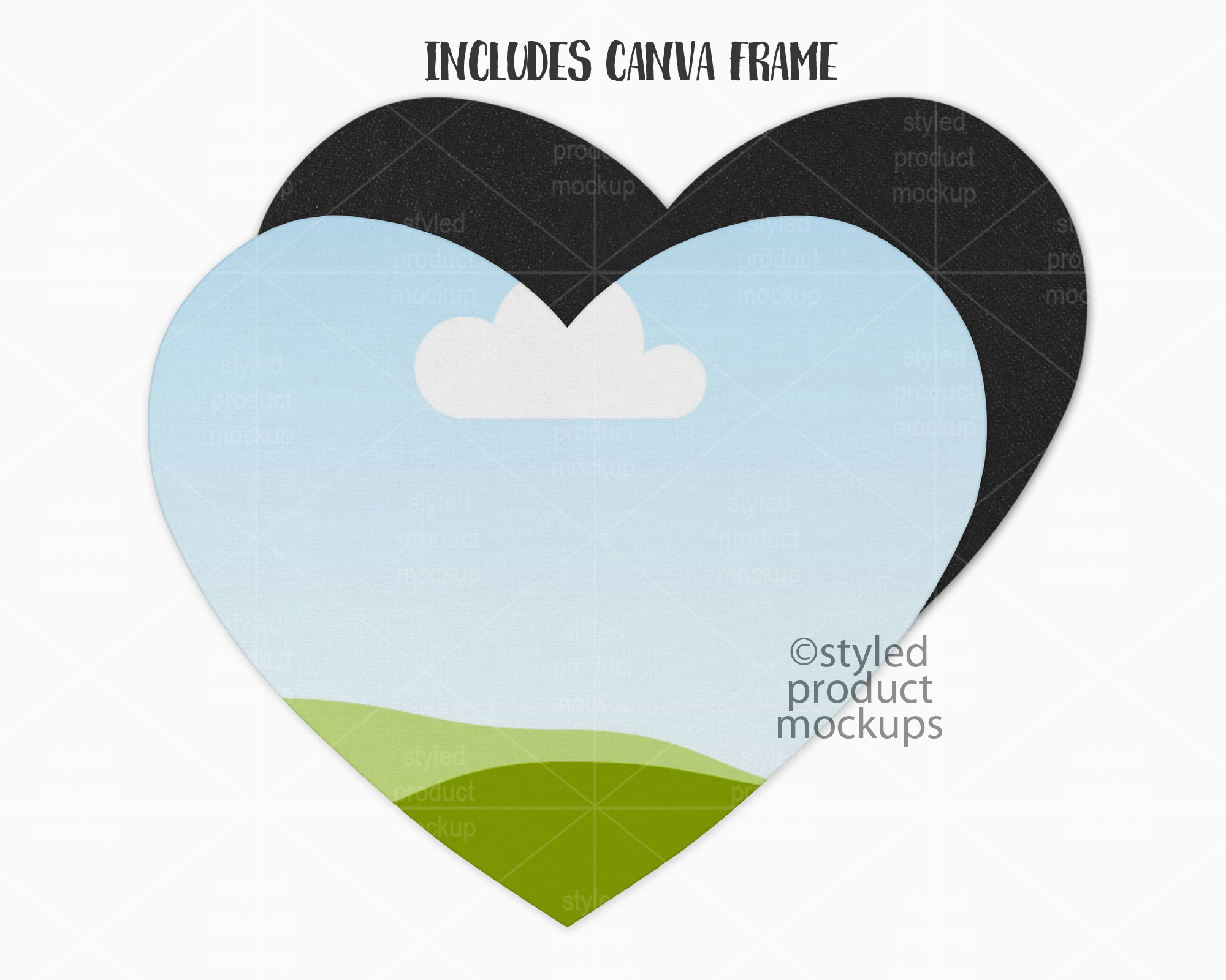 This listing is a mock-up that features the front and back view of a dye sublimation heart shaped mousepad. Give a professional touch to your mousepad designs without the hassle of photographing each one. This styled product mockups template is ready to use, simply add in your own art files and background.