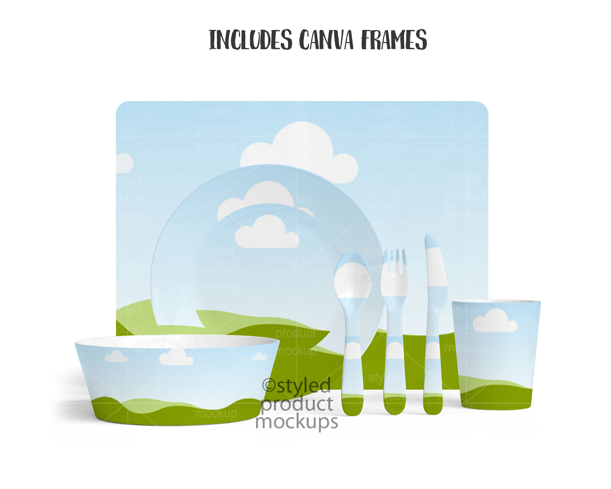 Key Words: tableware, gift set, kids, polymer, canva mockup, sublimation, mockup, template, display, PSD, PNG, digital, stock photography
