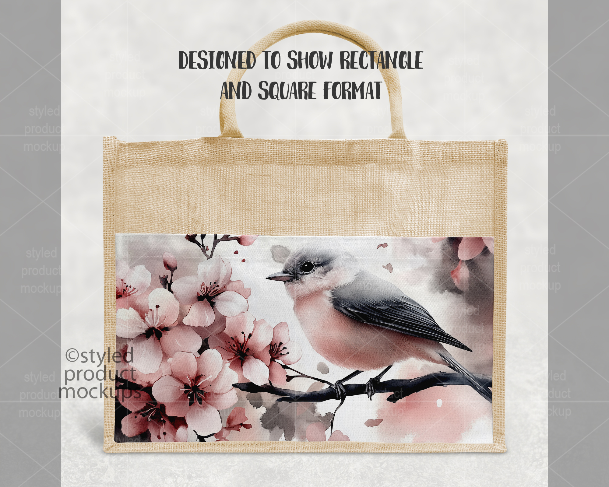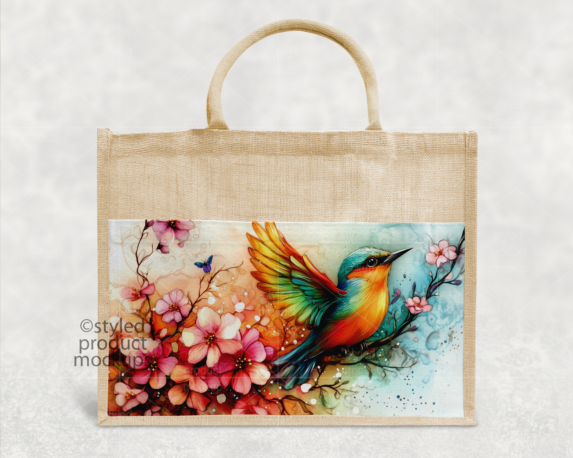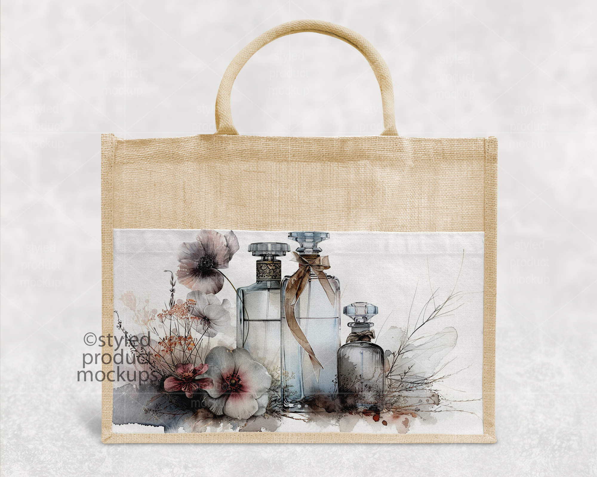 This listing is a mock-up that features a dye sublimation large jute linen tote bag measuring 17×13” (43*34cm). Give a professional touch to your tote bag designs without the hassle of photographing each one. This styled product mockups template is ready to use, simply add in your own art files and background.