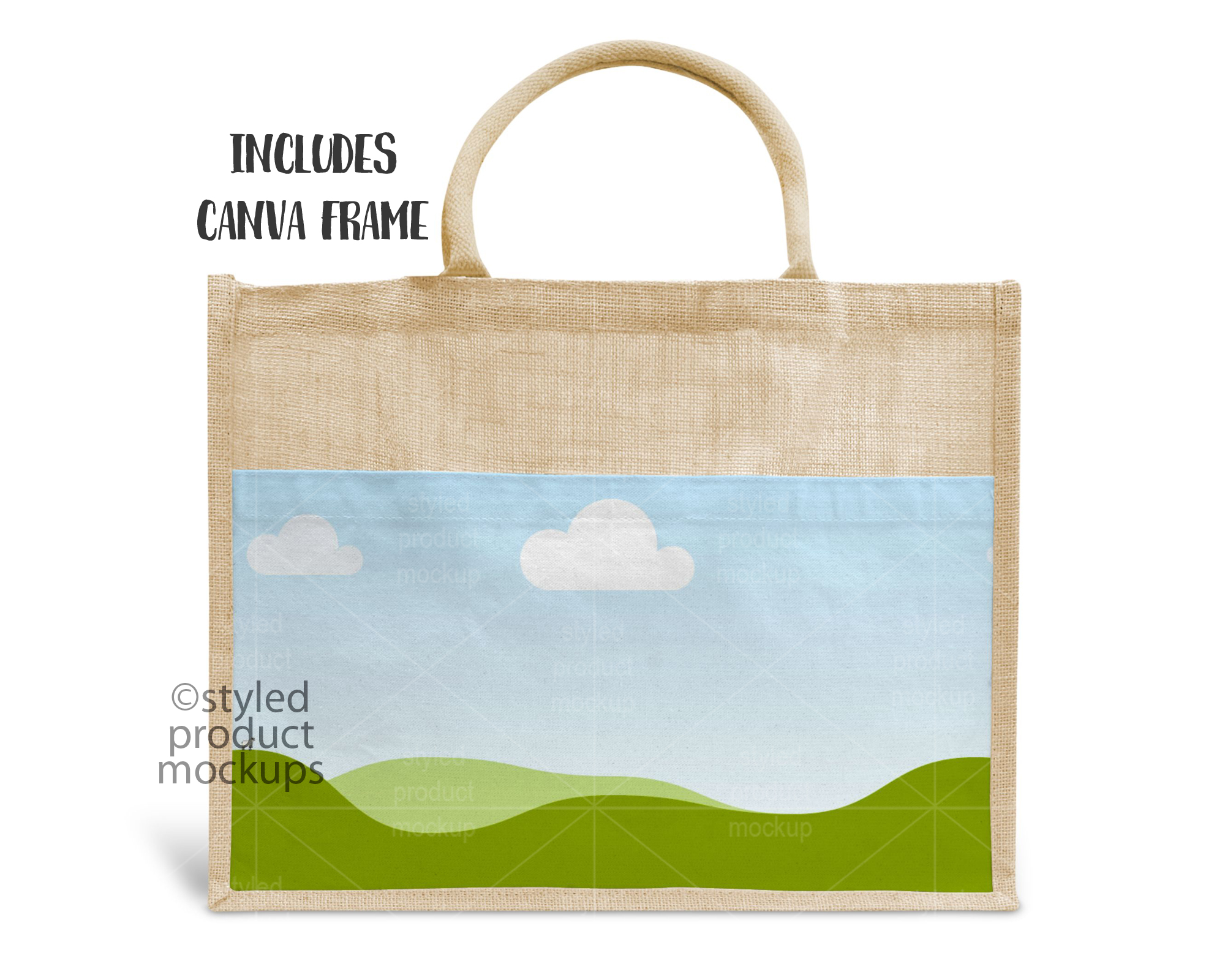 Large Jute Linen Tote Bag Mockup for Dye Sublimation | Add your own image and background | Photoshop Smart Mockup | Canva Frame Mockup