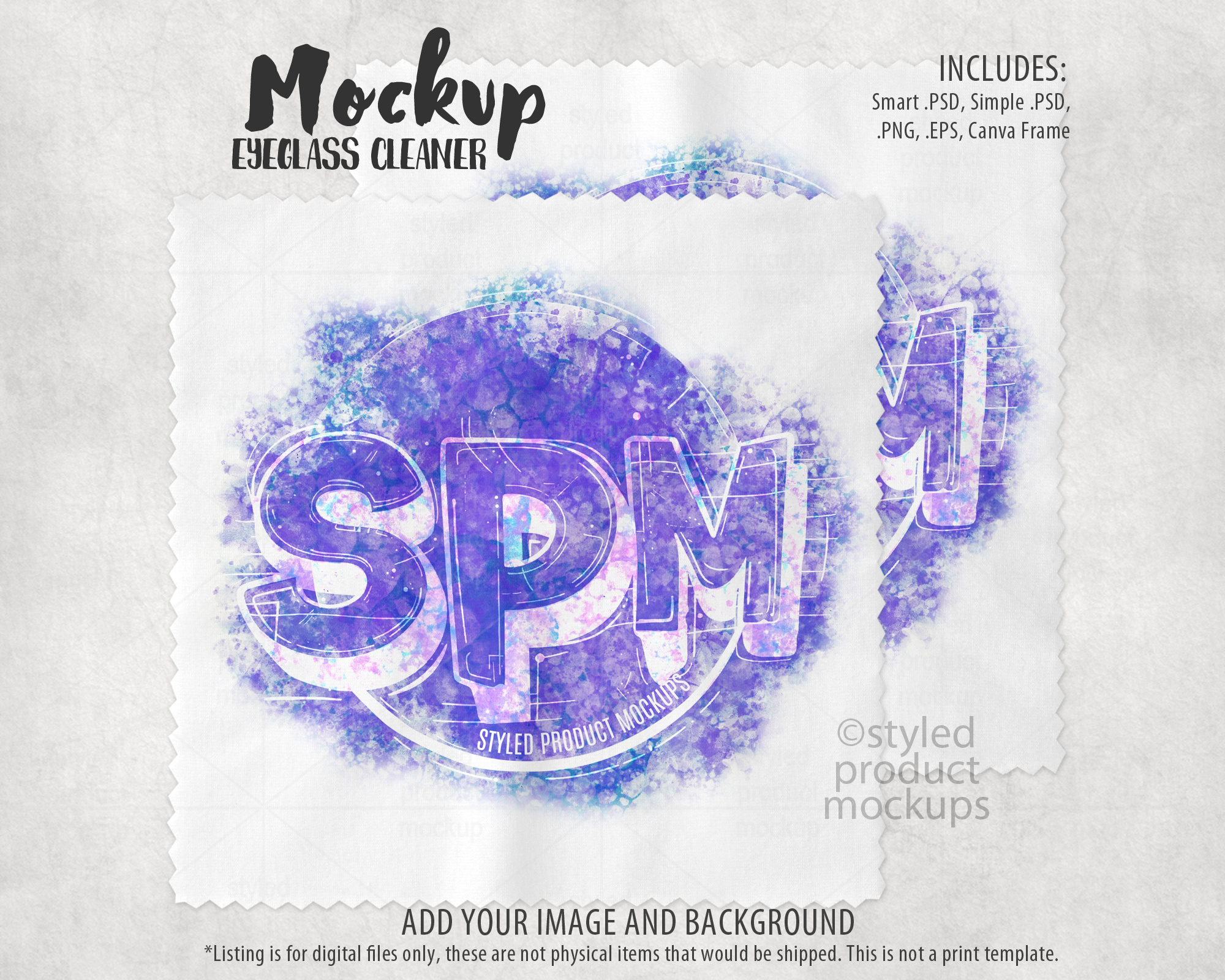 This listing is a mock-up that features the front and back of a dye sublimation square lens cloth. Give a professional touch to your eyeglass cleaner designs without the hassle of photographing each one. This styled product mockups template is ready to use, simply add in your own art files and background.