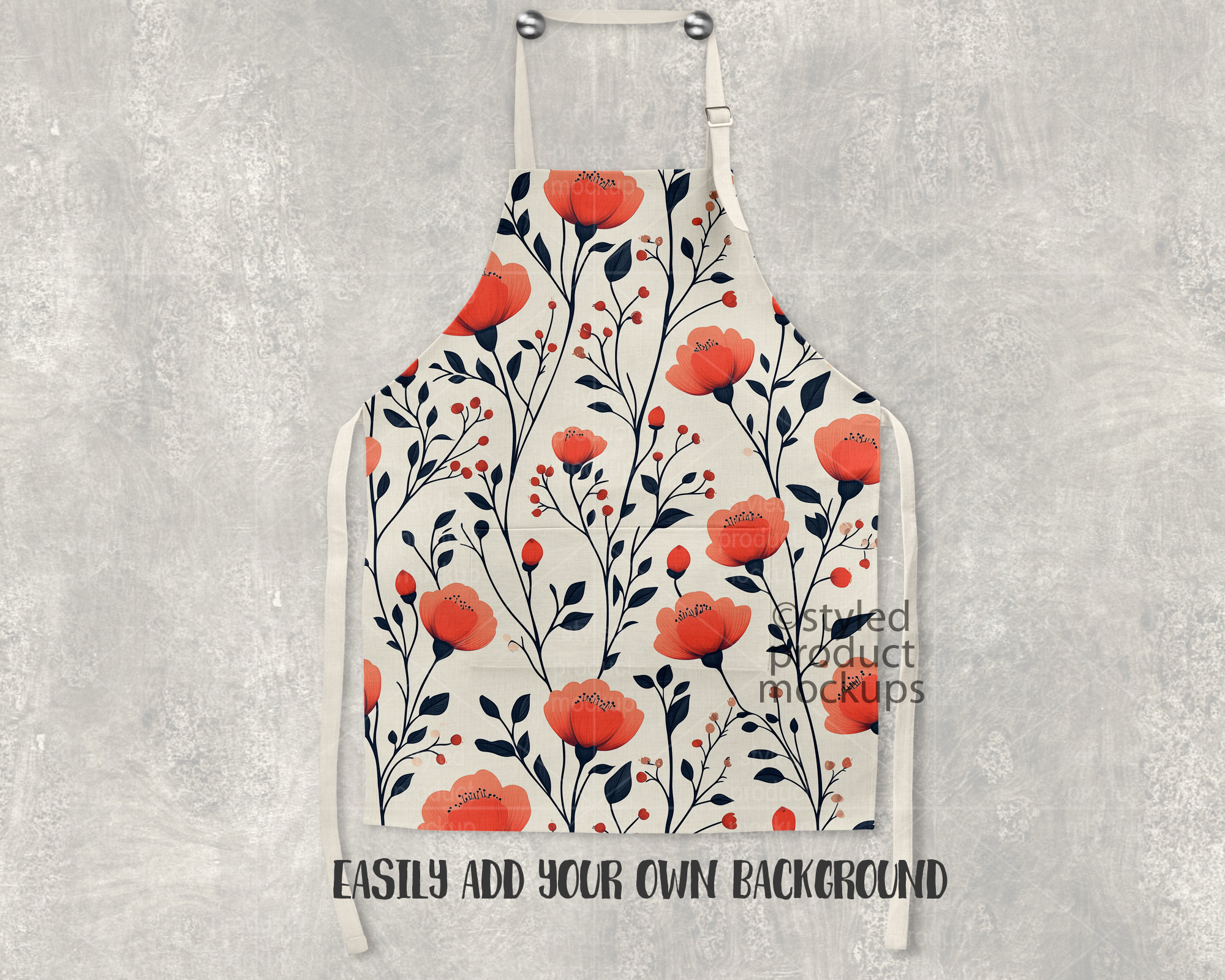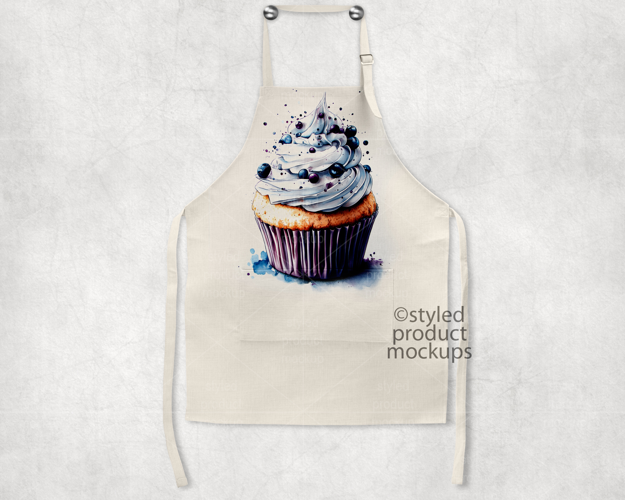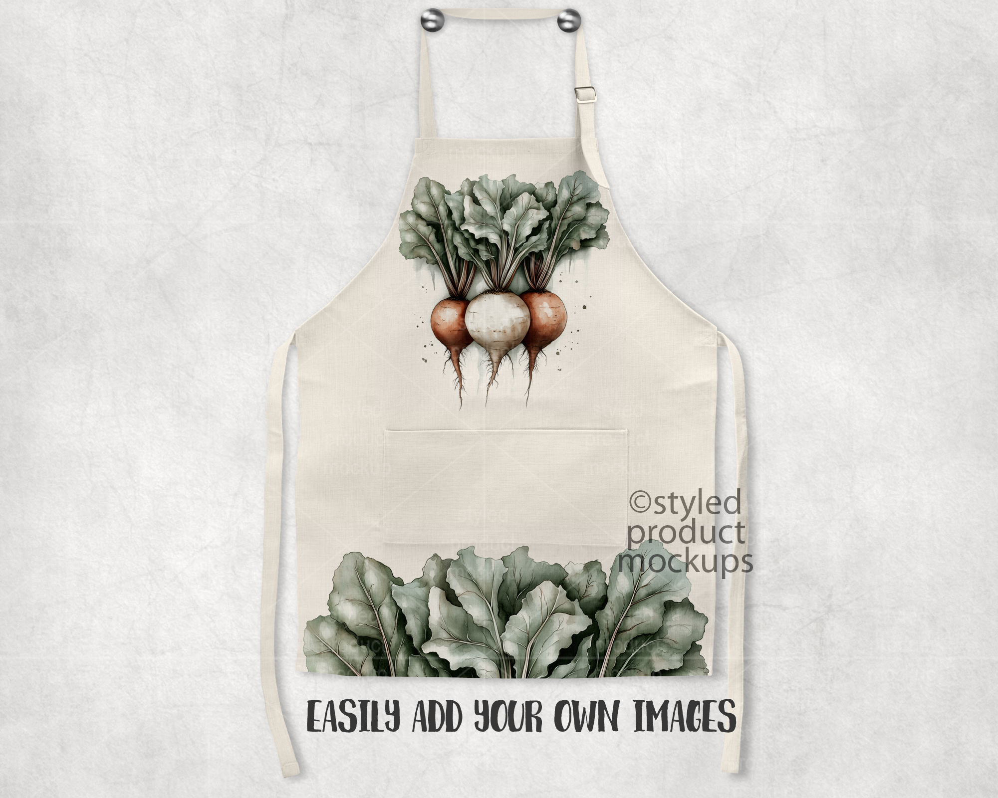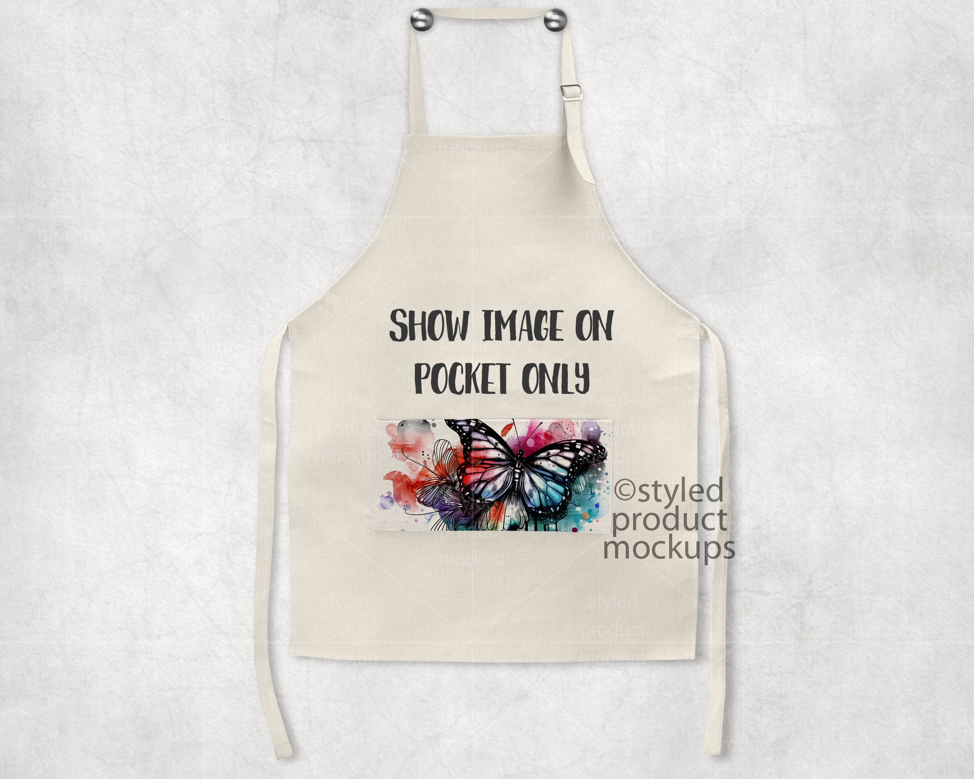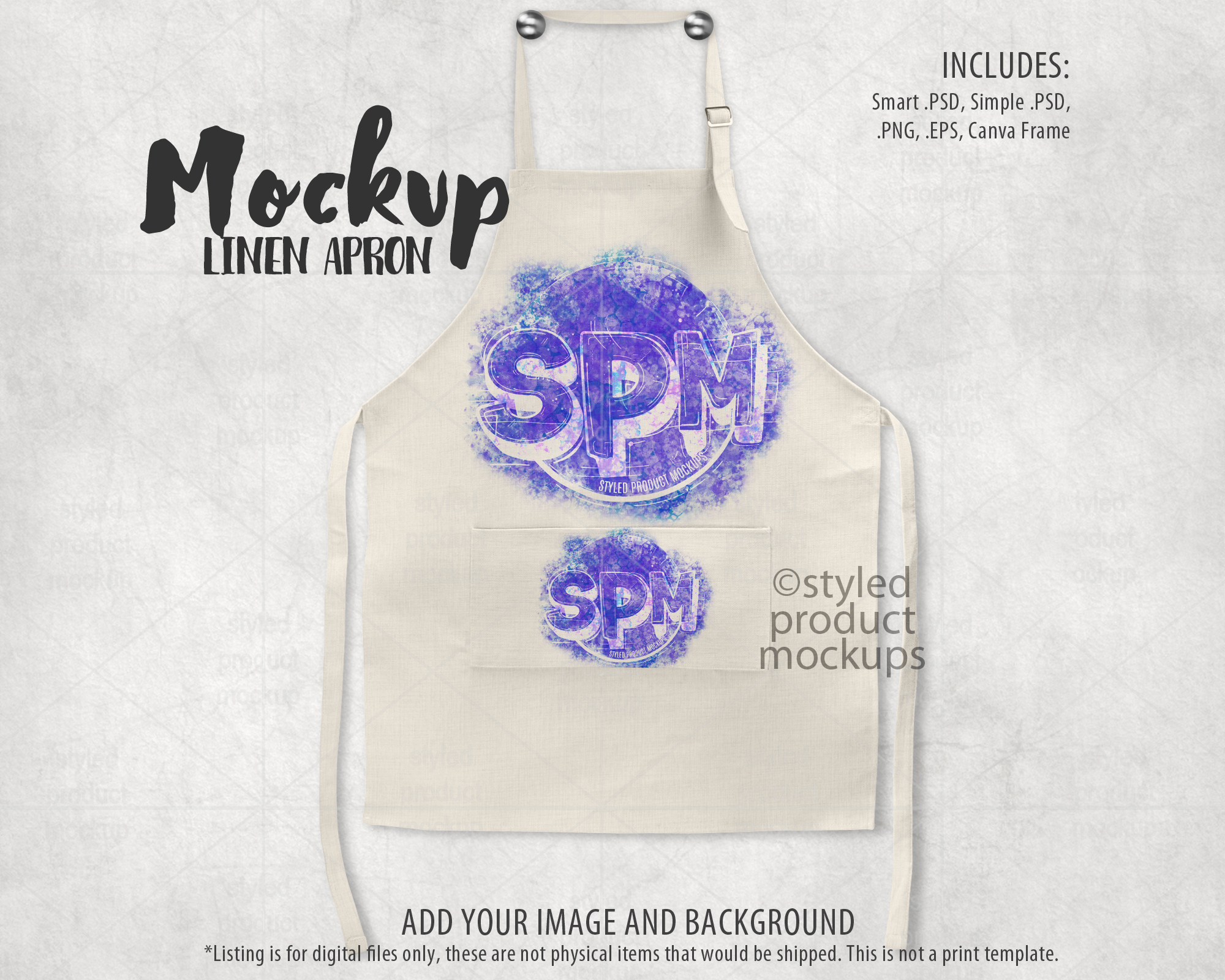 This listing is a mock-up that features a dye sublimation linen apron with front pocket. Give a professional touch to your apron designs without the hassle of photographing each one. This styled product mockups template is ready to use, simply add in your own art files and background.