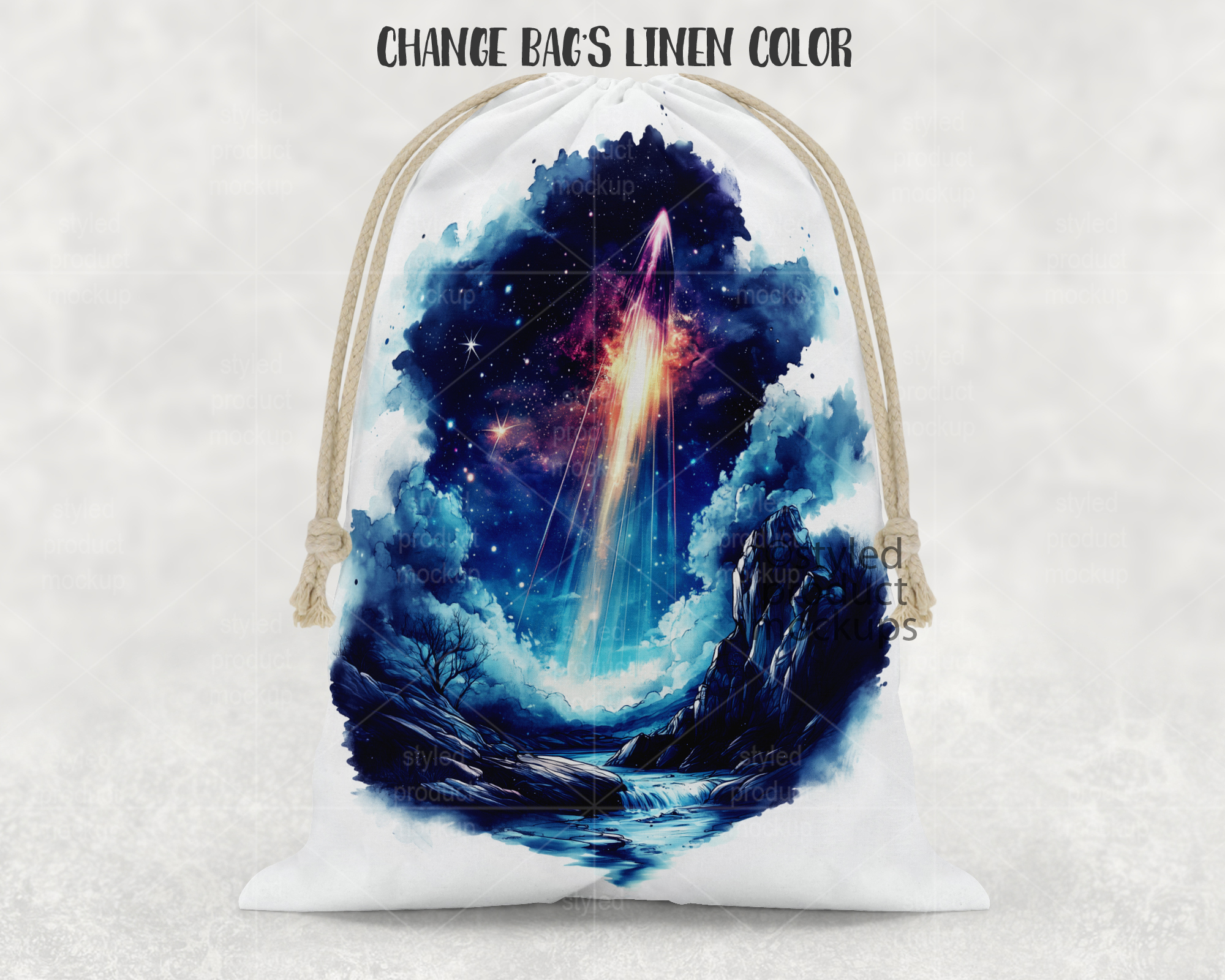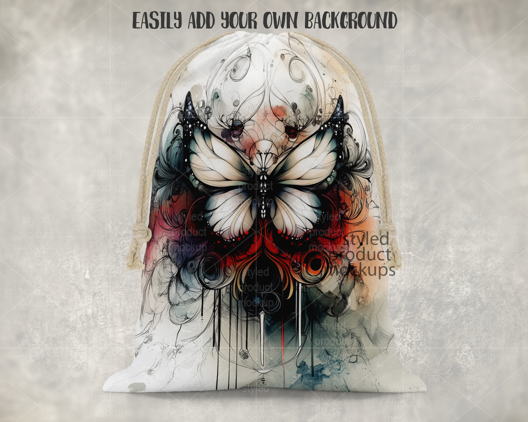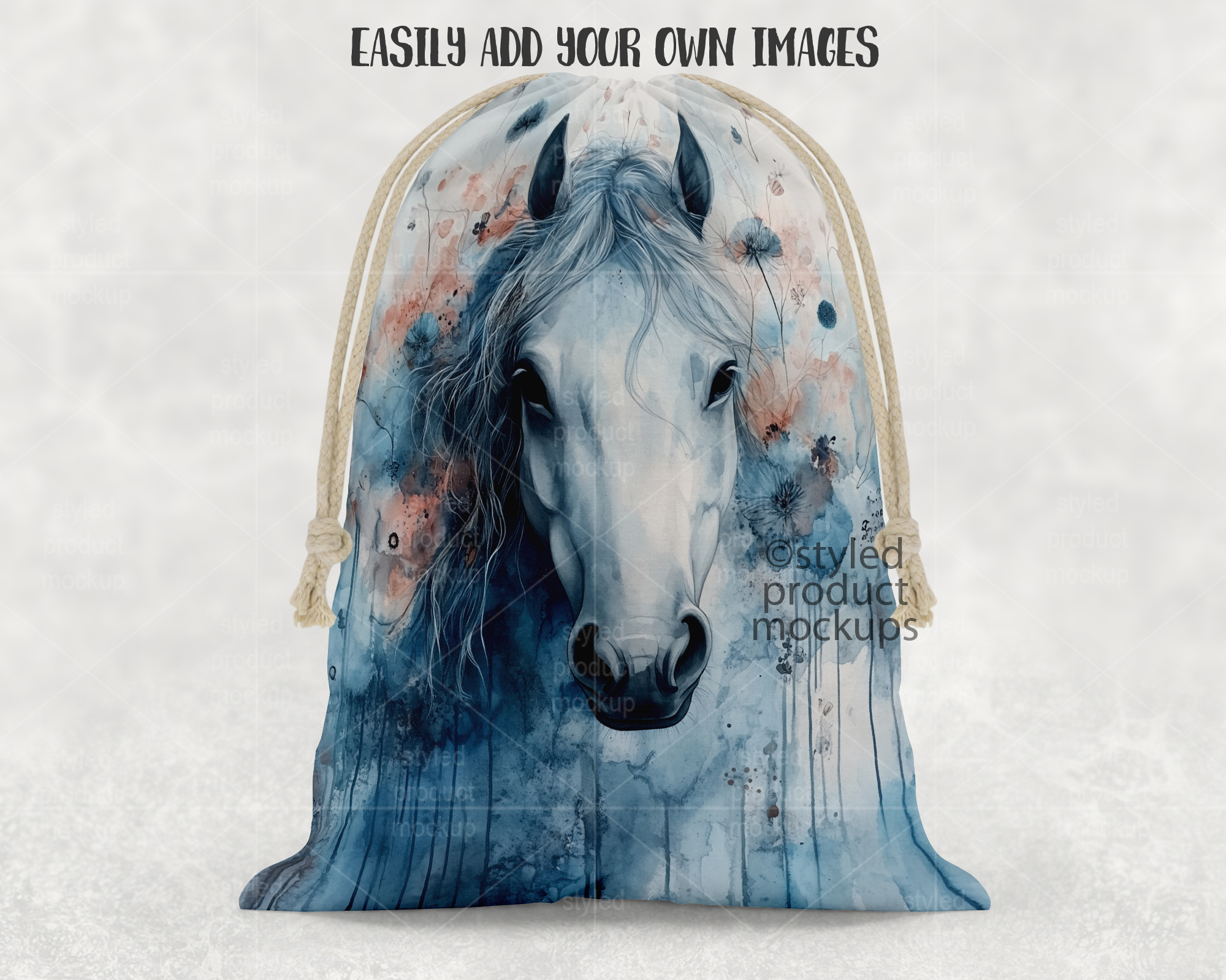 This listing is a mock-up that features a dye sublimation linen drawstring bag measuring approximately 12×16 inches (30 x 40 cm). Give a professional touch to your bag designs without the hassle of photographing each one. This styled product mockups template is ready to use, simply add in your own art files and background.
