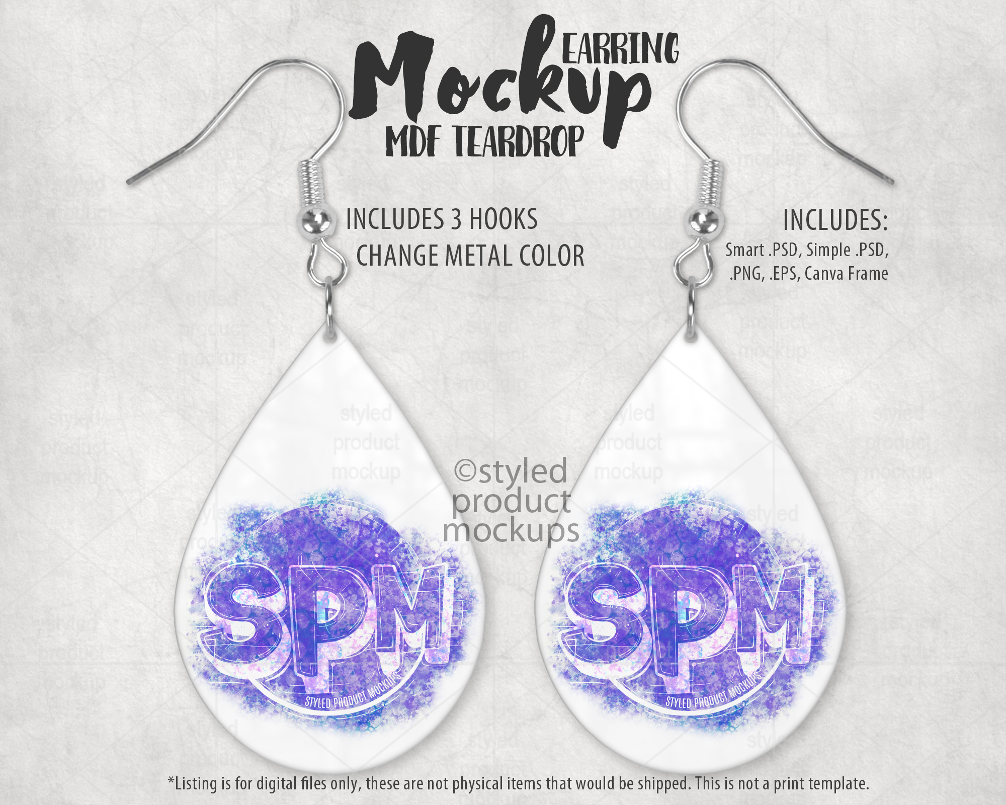Key Words: teardrop, dangle, earrings, MDF, hook, sublimation, mockup, template, display, PSD, PNG, digital, stock photography