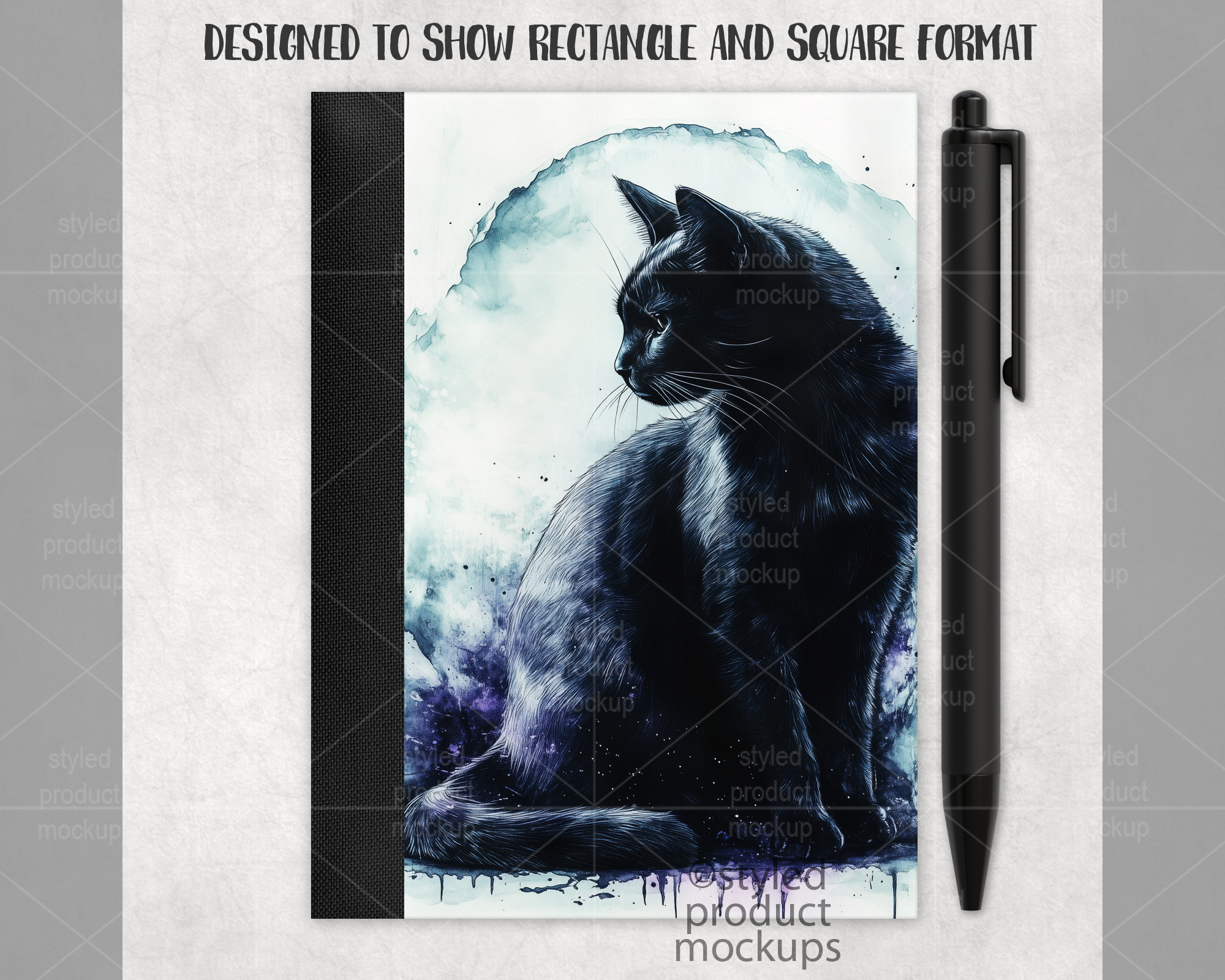 This listing is a mock-up that features a mini composition notebook with pen. Notebook measures approximately 4.5 x 3.3” overall. Give a professional touch to your notebook designs without the hassle of photographing each one. This styled product mockups template is ready to use, simply add in your own art files and background.