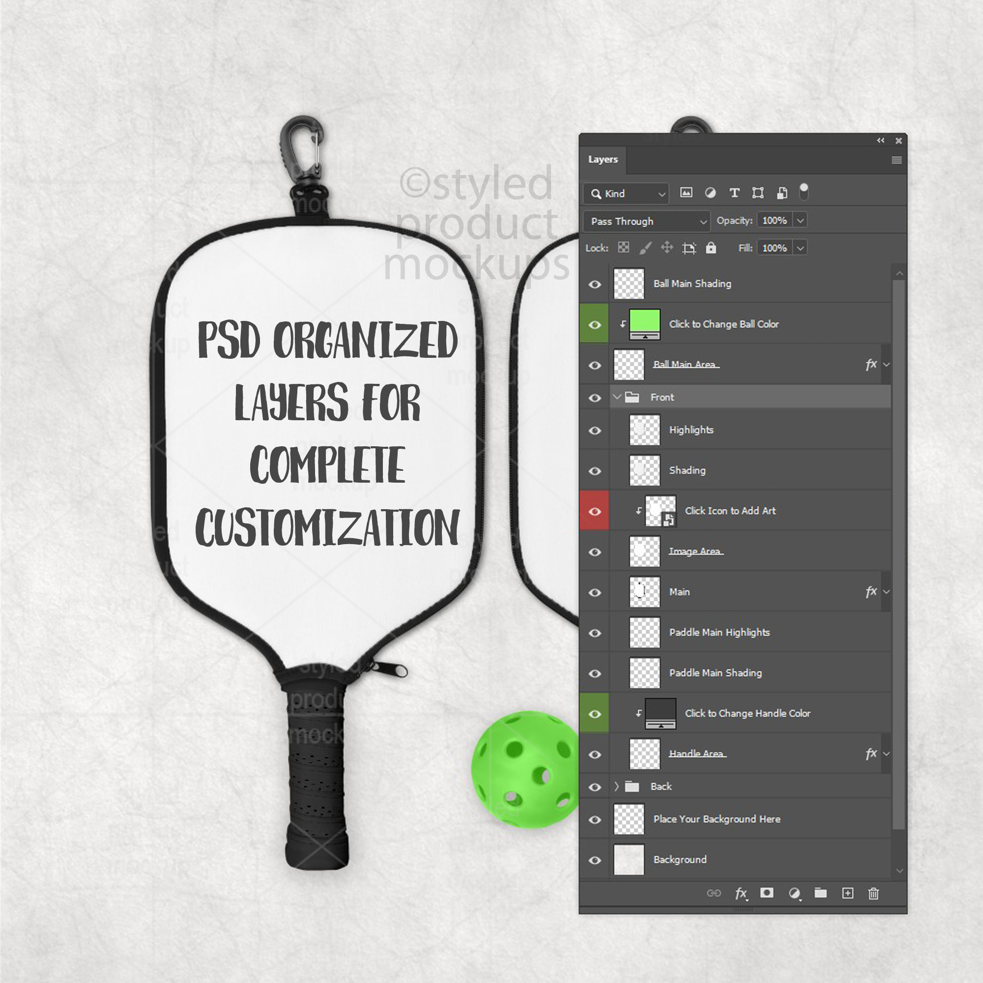 - EPS shapes with PNG shading overlays. Open the EPS in Illustrator or Corel Draw and use the shapes to clip your image to the shape. Then place in the shading and highlight PNGs above your images. You can also place your own background in. Includes layers to show one or two sided. You cannot change the color of the handle or ball with the PNG file. Download includes white and black handles and green, yellow or white ball.