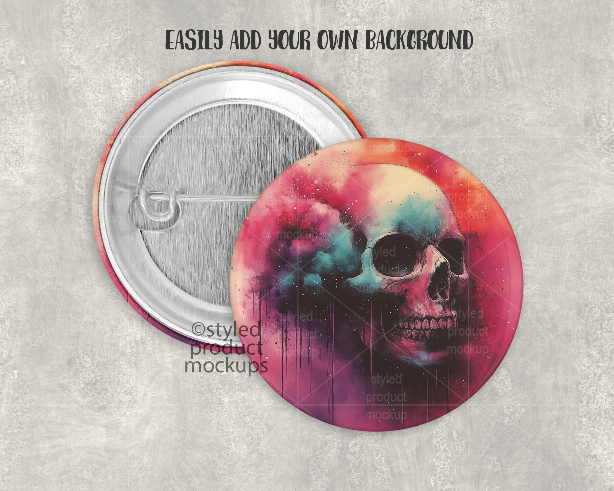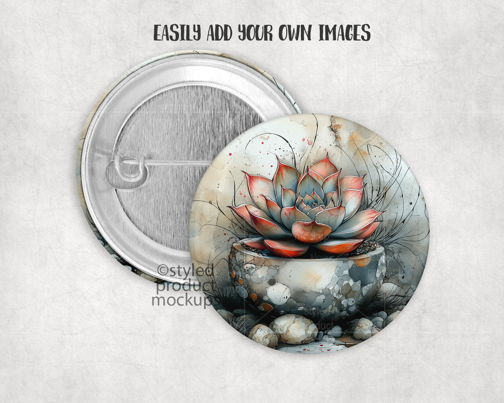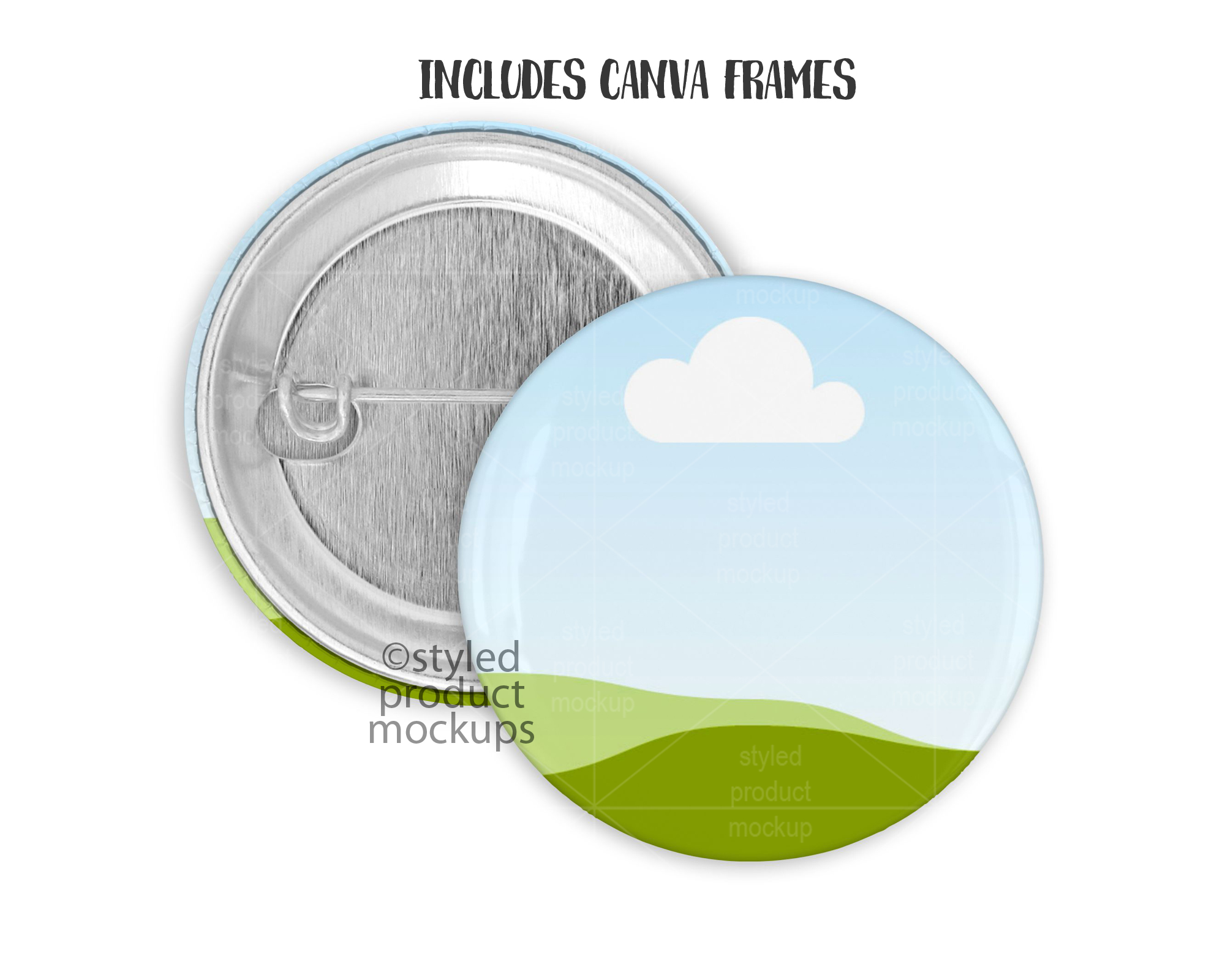 This listing is a mock-up that features the front and back of a round pinback button. Give a professional touch to your round button designs without the hassle of photographing each one. This styled product mockup is ready to use, simply add in your own art files and background.