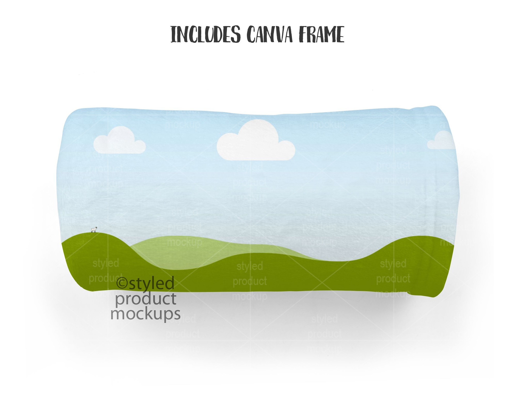 Rolled Up Baby Blanket Mockup for Dye Sublimation | Fleece baby blanket mockup | Add your own image and background | Photoshop Smart Mockup | Canva Frame Mockup