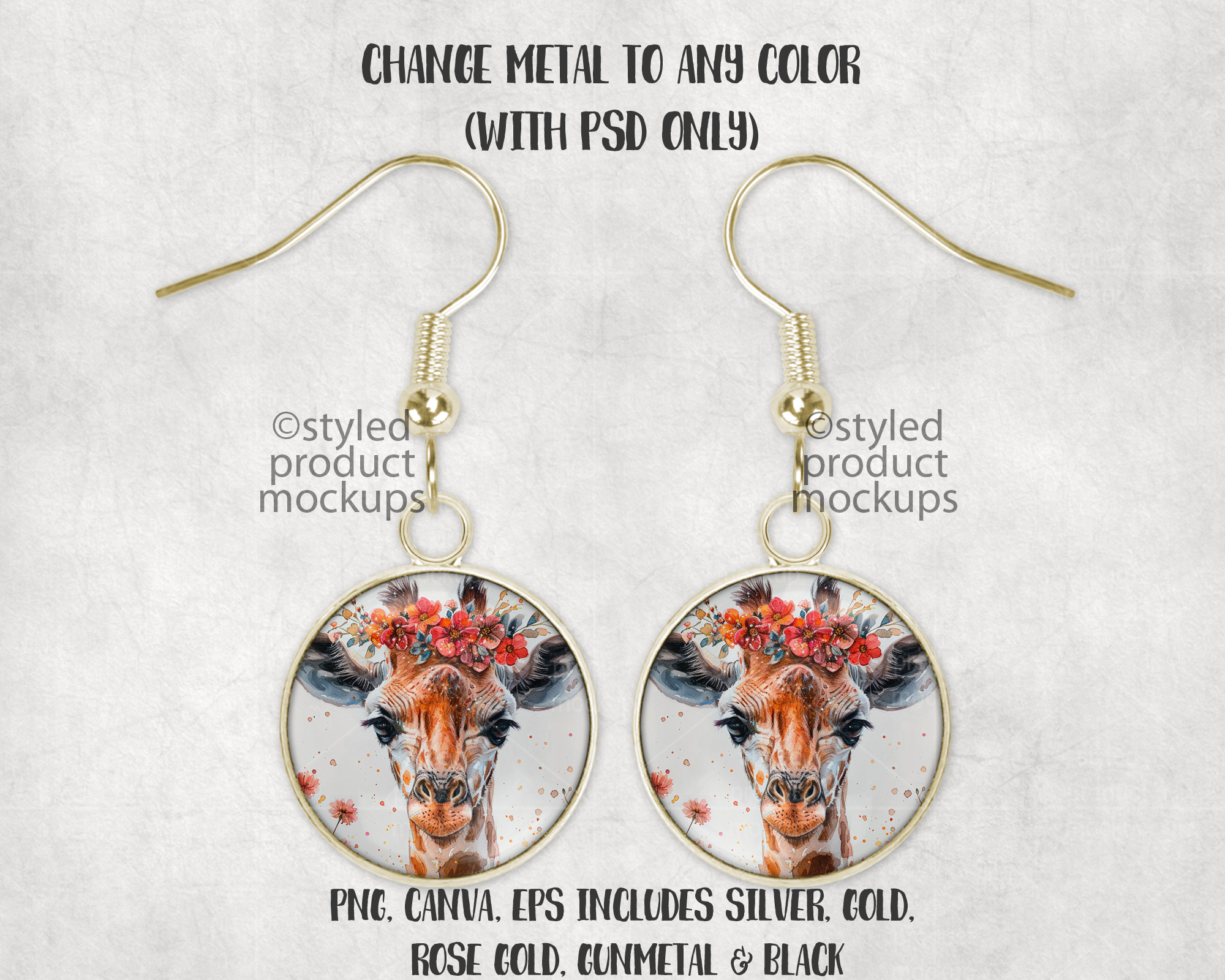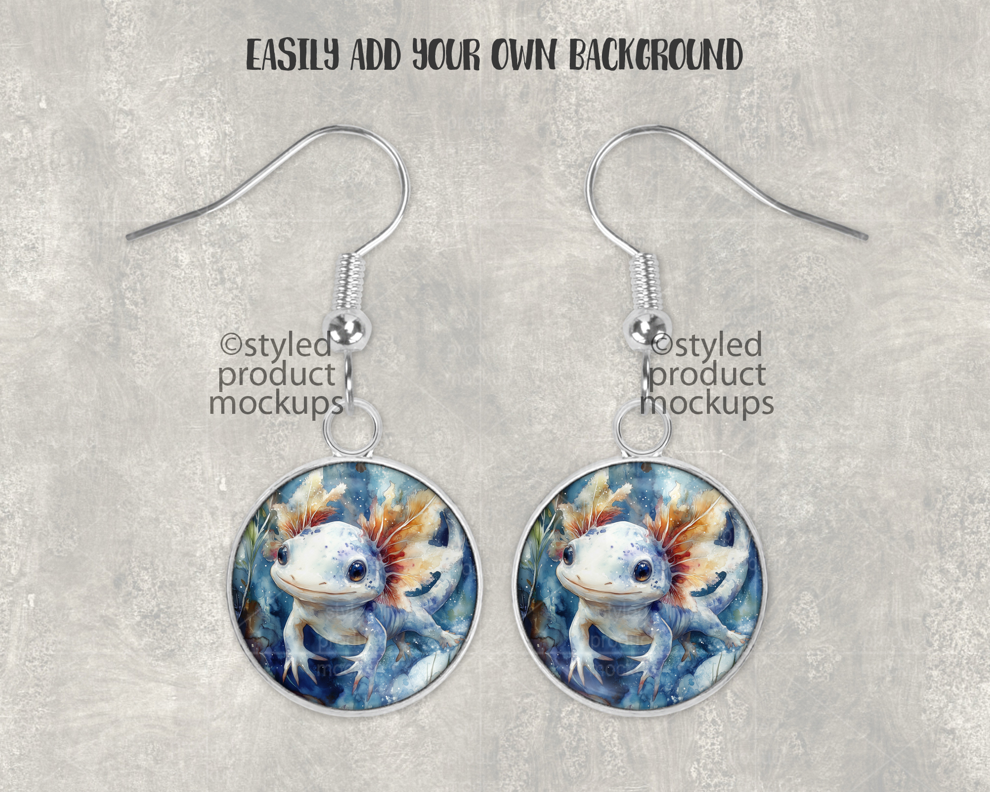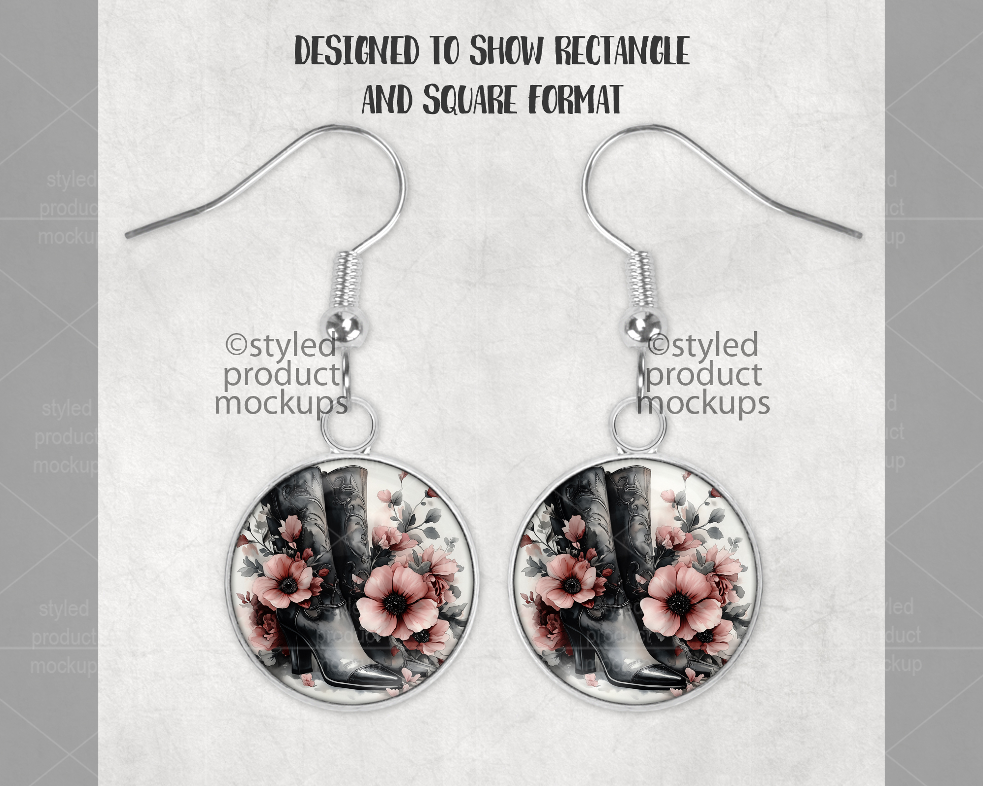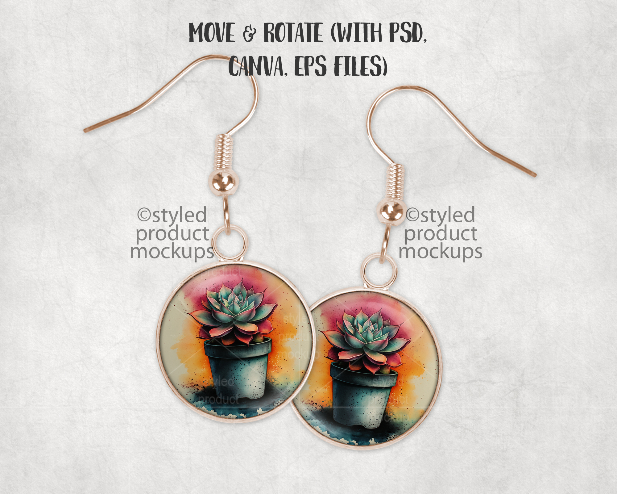This listing is a mock-up that features a pair of round cabochon tray hook earrings. Give a professional touch to your earring designs without the hassle of photographing each one. This styled product mockups template is ready to use, simply add in your own art files and background.