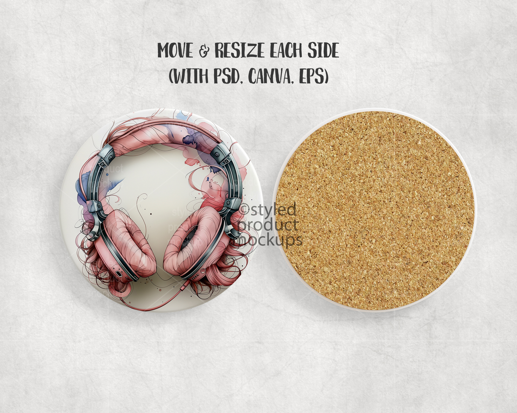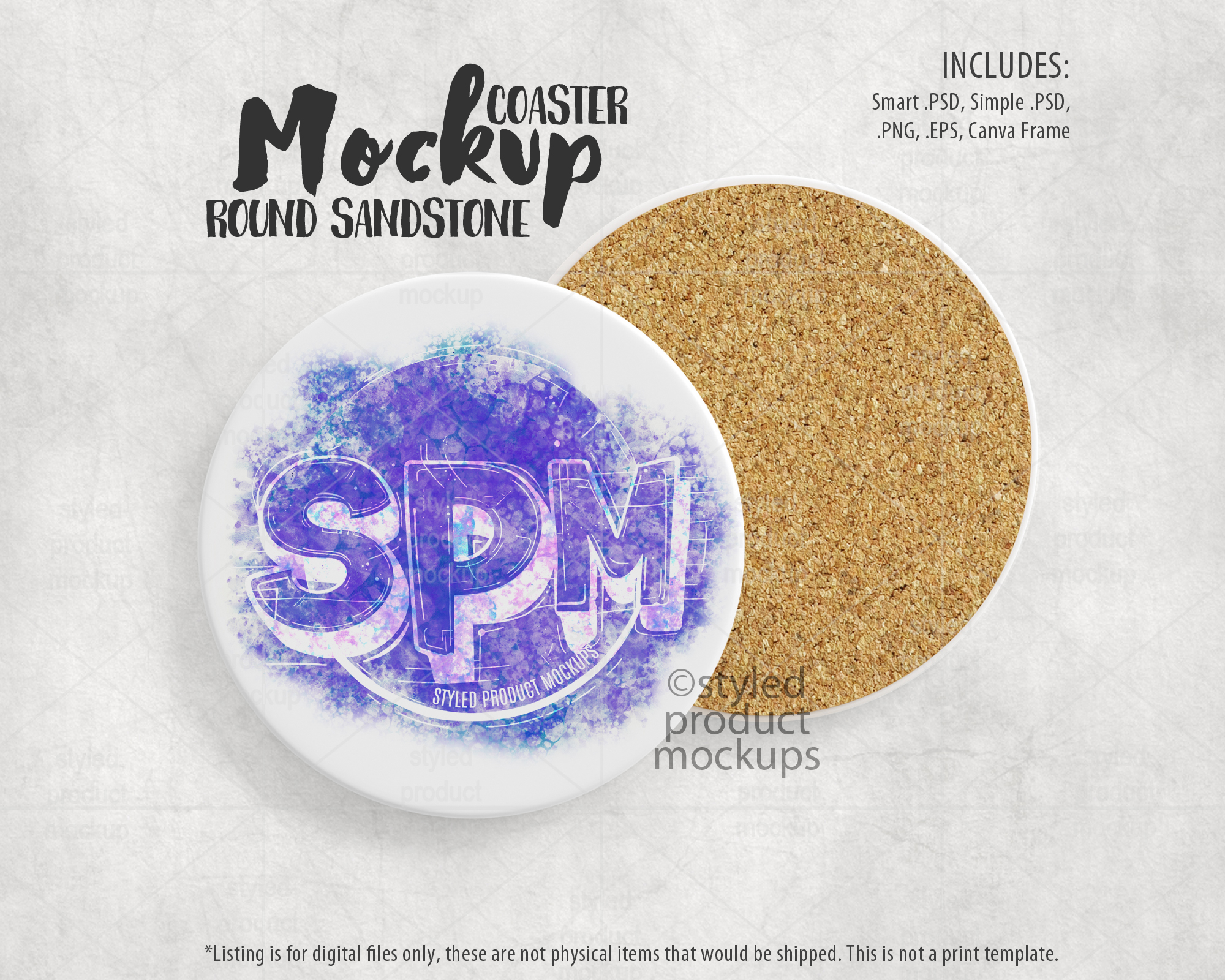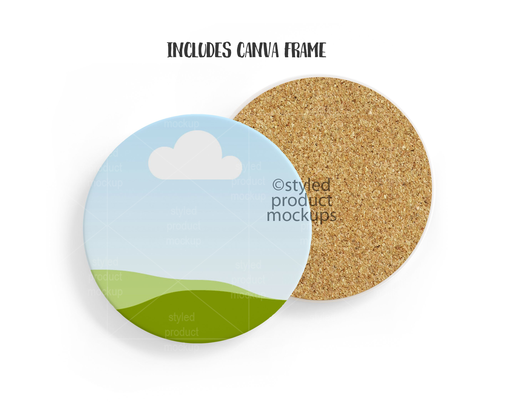 Key Words: coaster, round, sandstone, canva mockup, cork back, sublimation, mockup, template, display, PSD, PNG, digital, stock photography