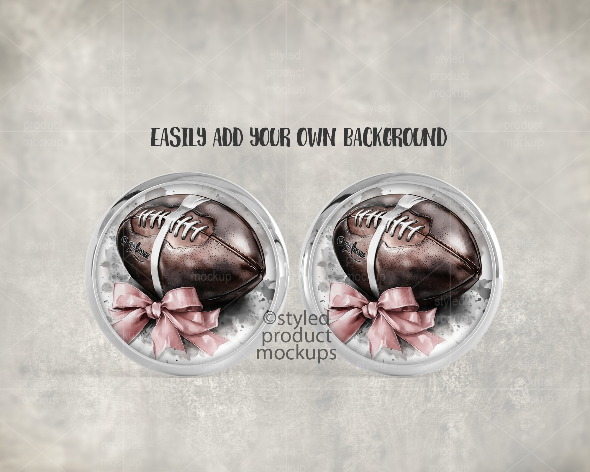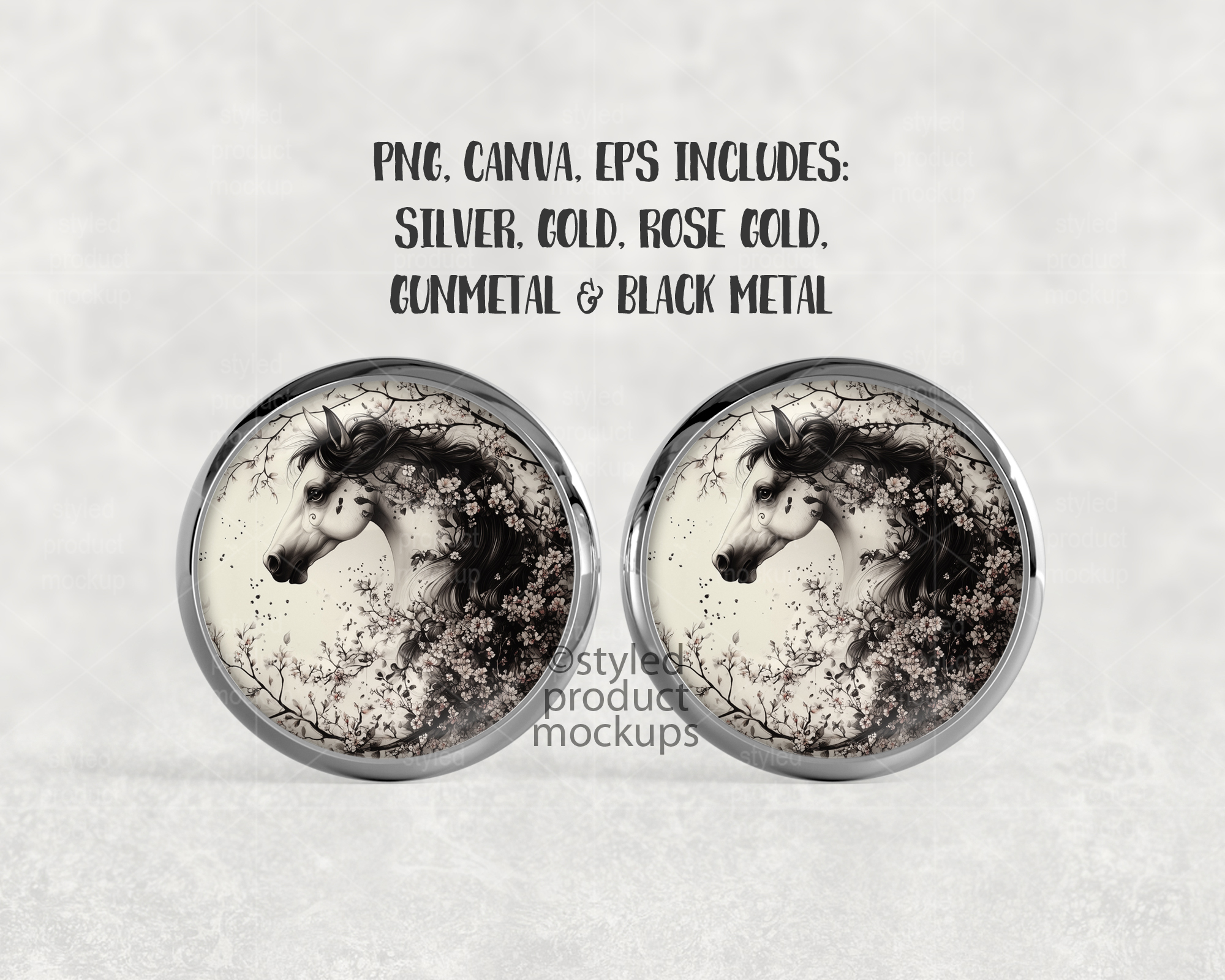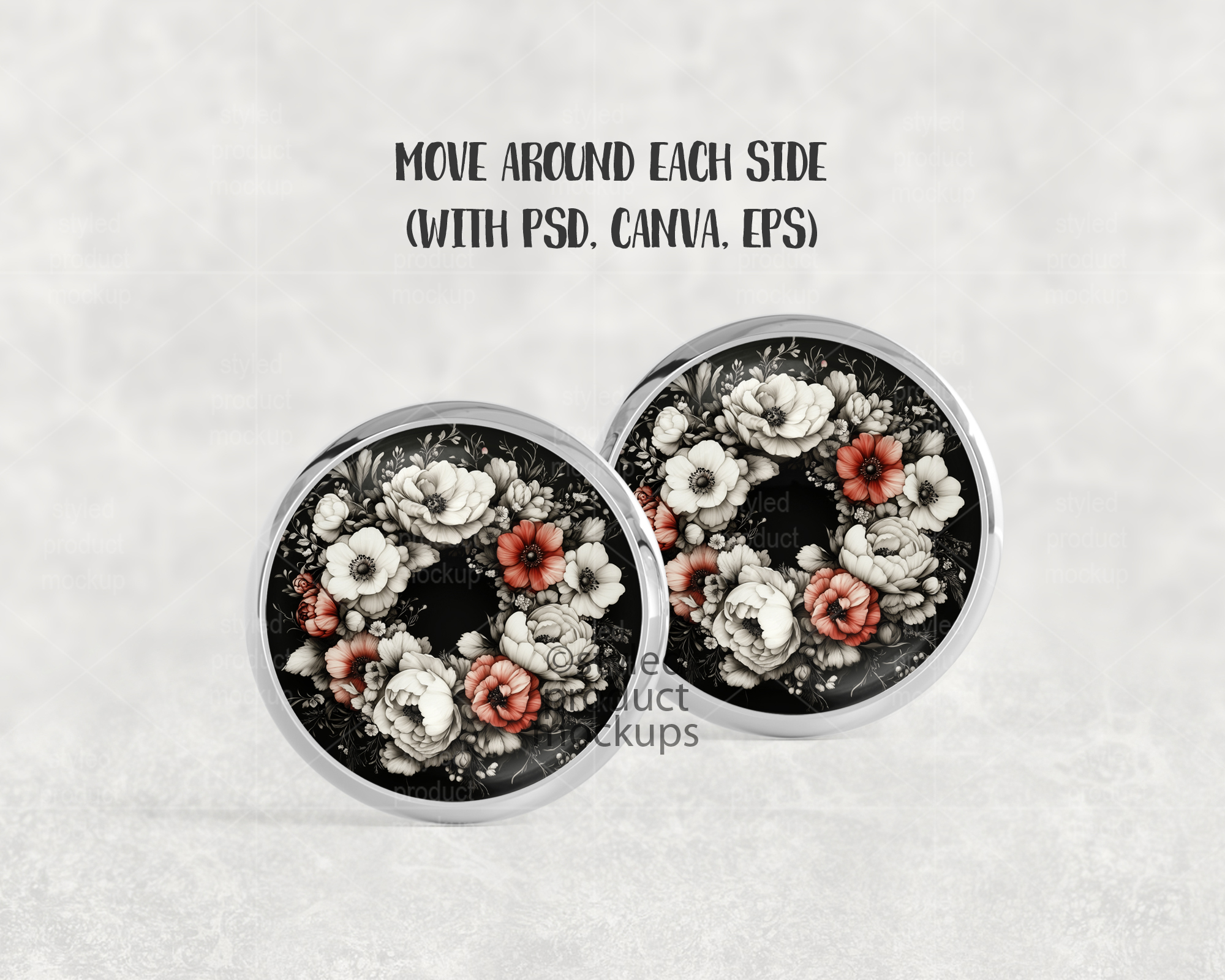 This listing is a mock-up that features a smooth metal tray stud earring. Give a professional touch to your earring designs without the hassle of photographing each one. This styled product mockups template is ready to use, simply add in your own art files and background.