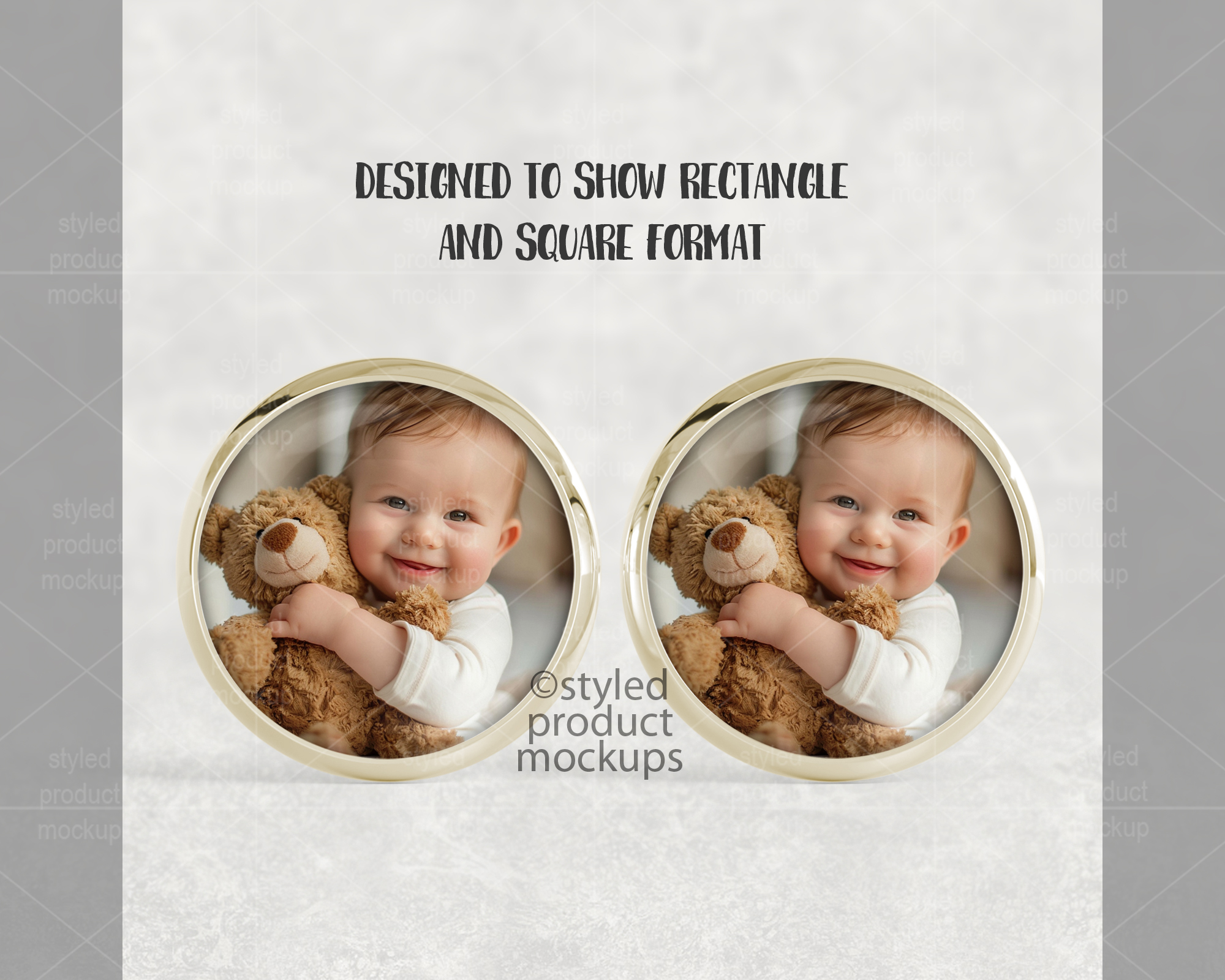 – PNG files for other programs which have a transparent window cut out of the image area on a white or grey background. Resize and adjust to fit the image area. You cannot change the background with the PNG files. You cannot change the metal color with the PNG files. Download includes silver, gold, rose gold, gunmetal and black.