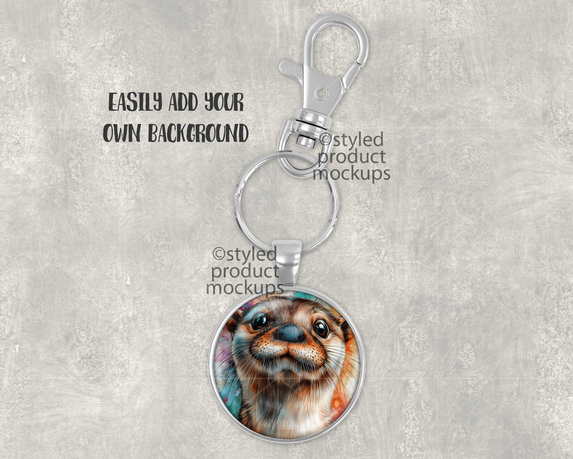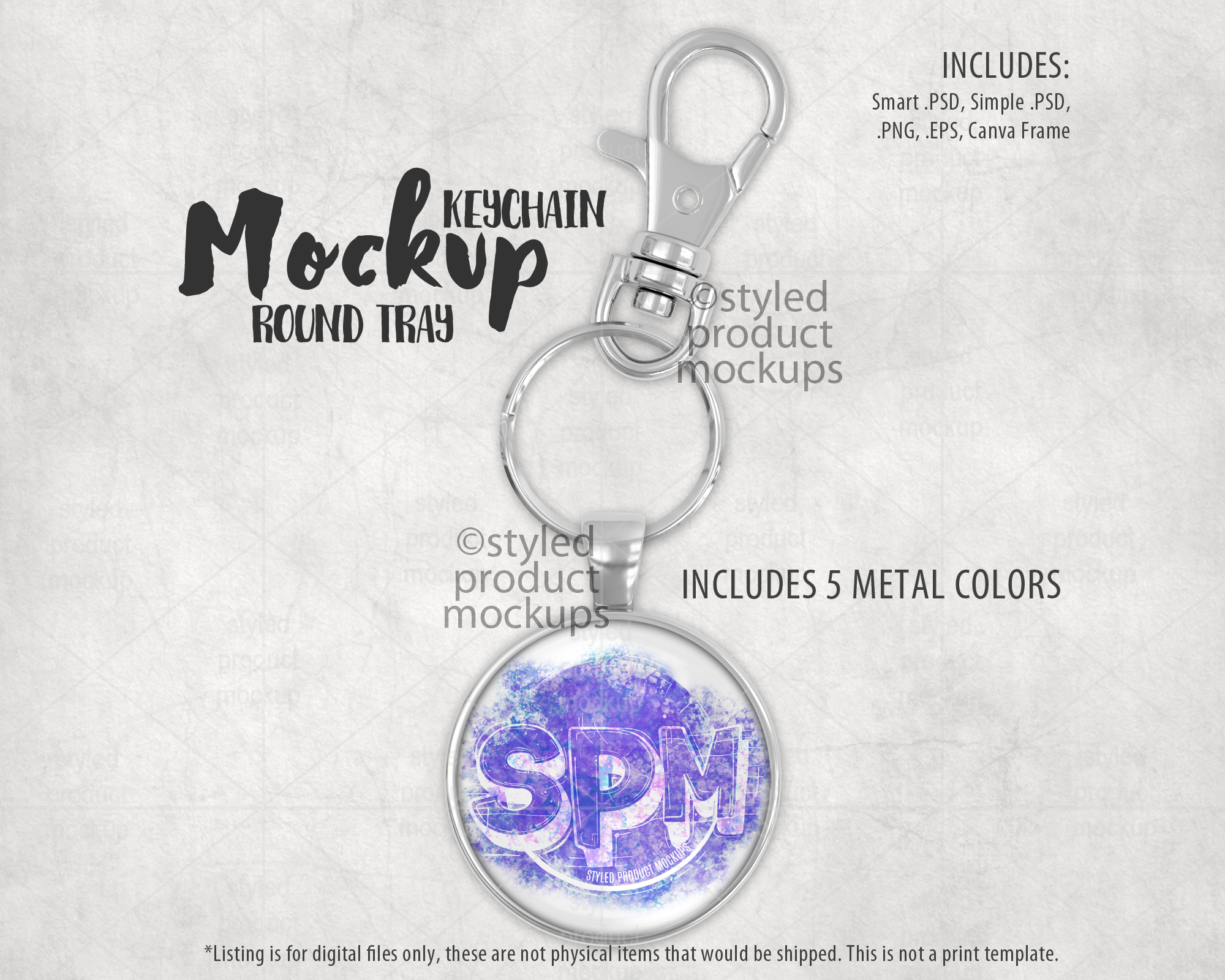 This listing is a mock-up that features a round tray keychain. Give a professional touch to your keyring designs without the hassle of photographing each one. This styled product mockups template is ready to use, simply add in your own art files and background.