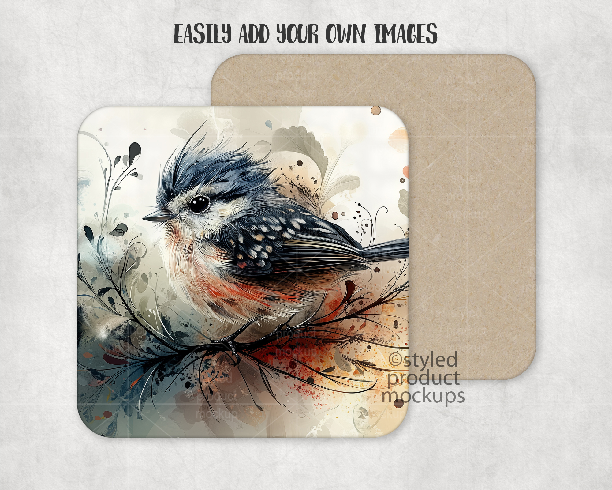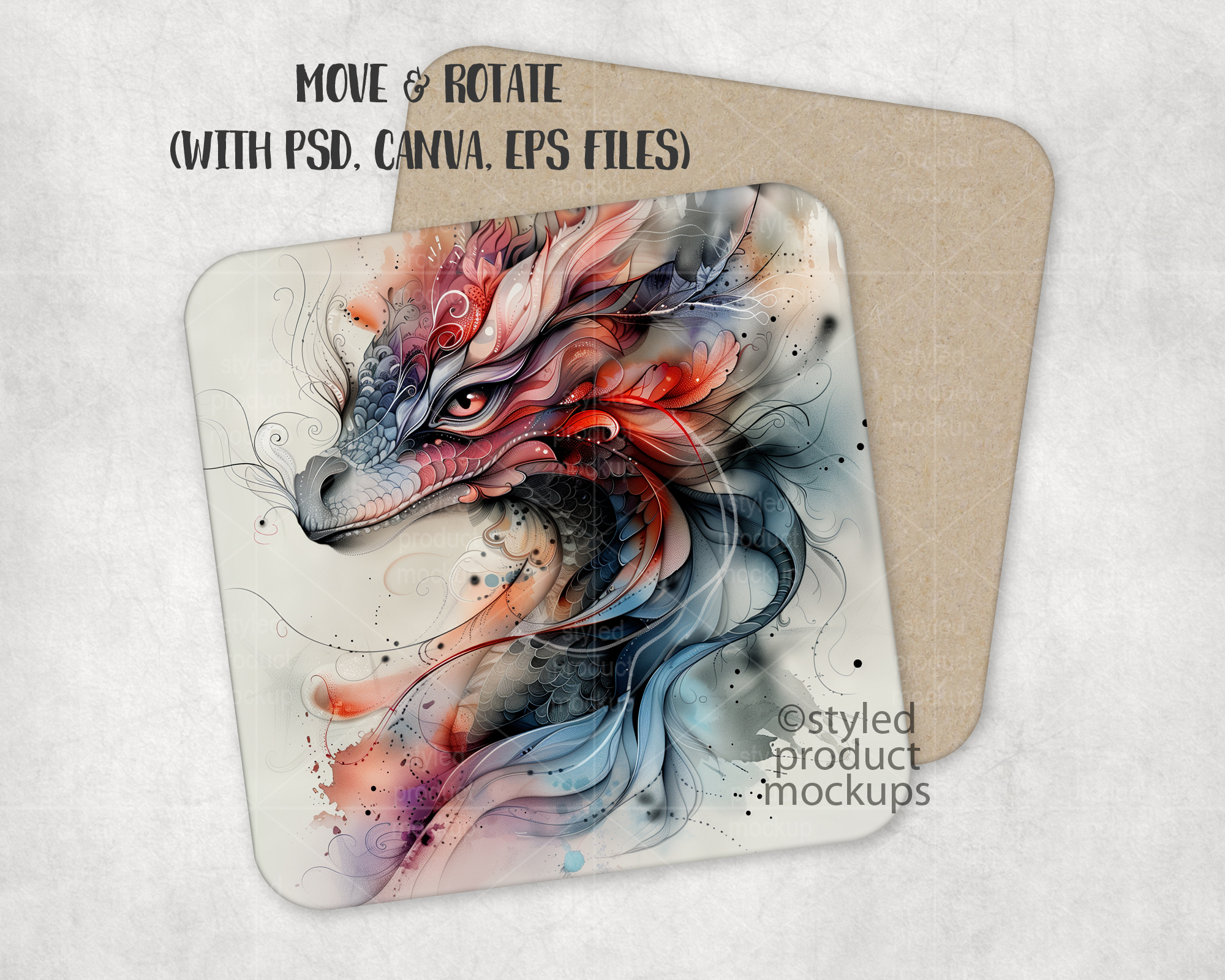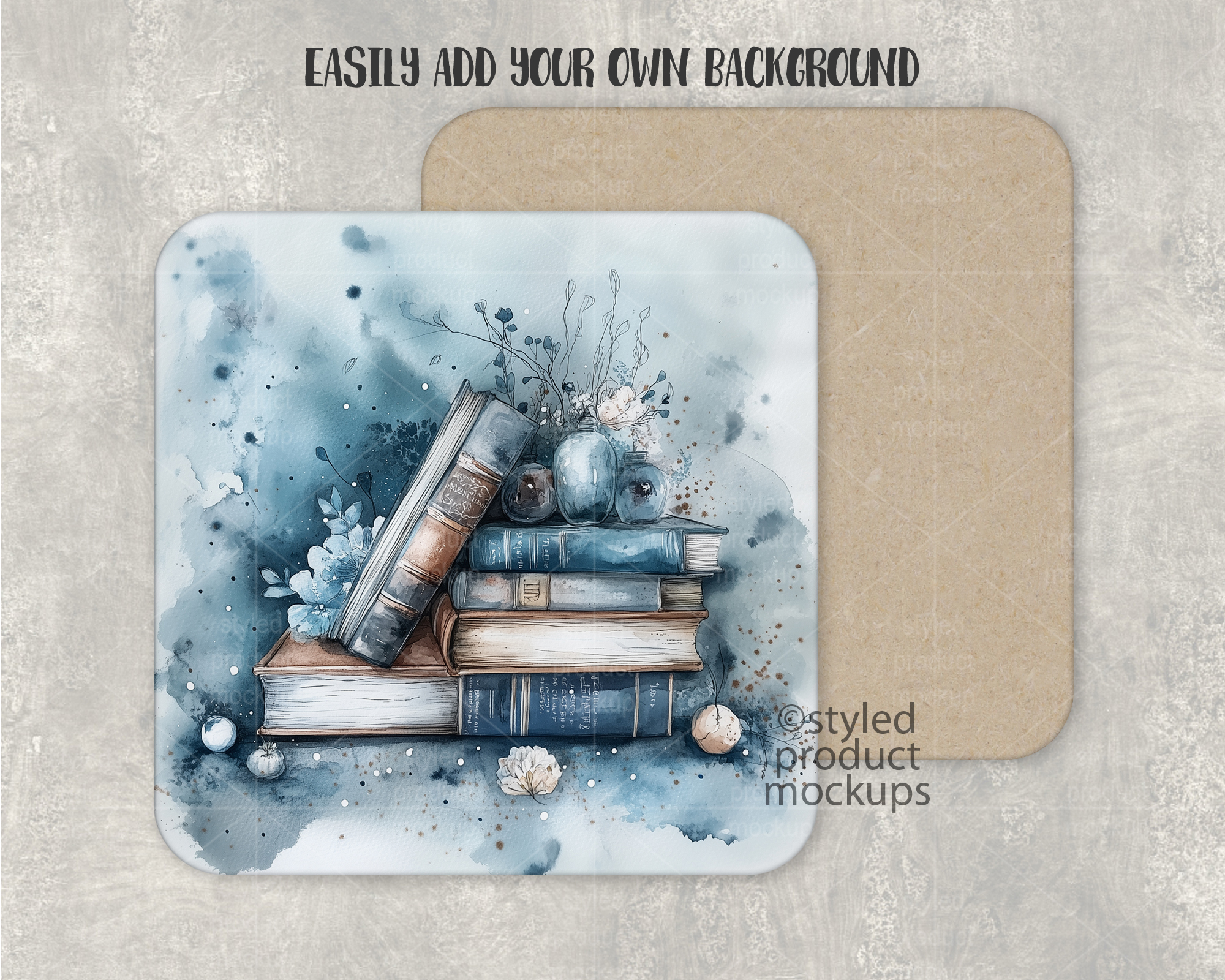 This listing is a mock-up that features the front and back view of a dye sublimation square MDF coaster. Give a professional touch to your coaster designs without the hassle of photographing each one. This styled product mockups template is ready to use, simply add in your own art files and background.