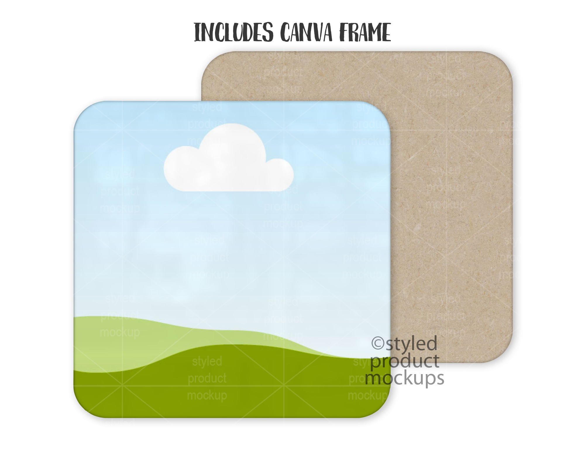 Square MDF Coaster Mockup for Dye Sublimation Front and Back | Add your own image and background | Photoshop Smart Mockup | Canva Frame Mockup