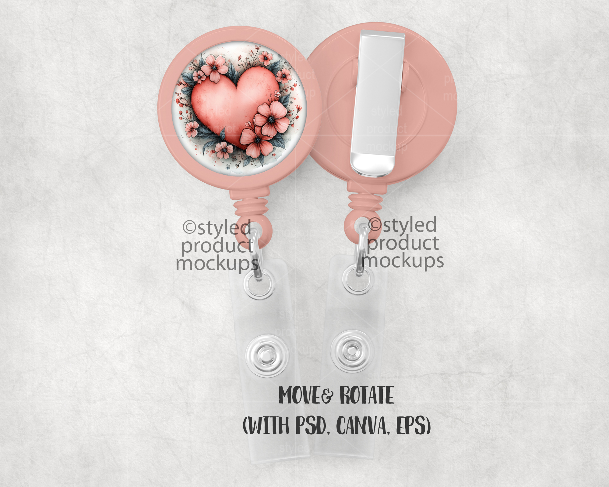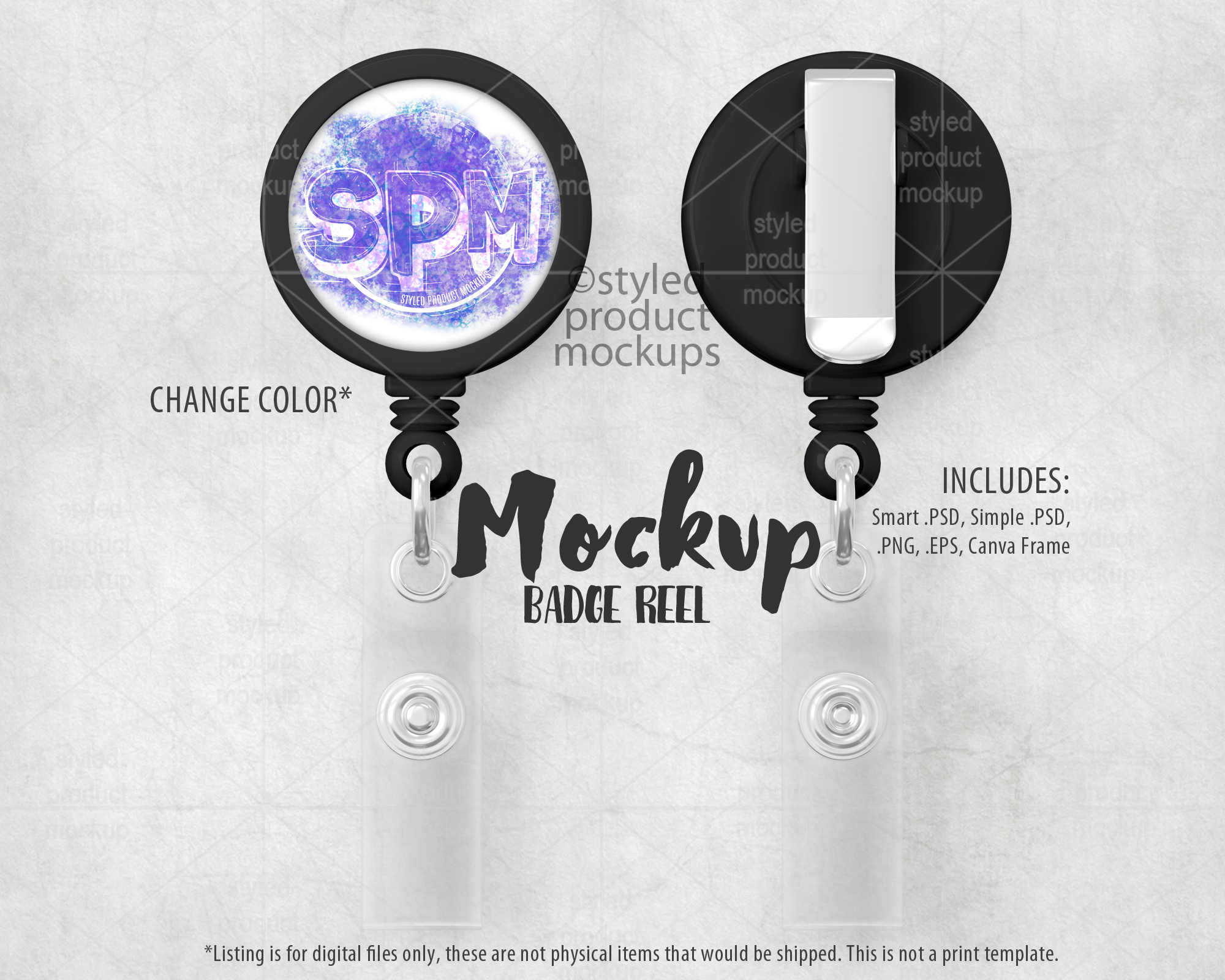 This listing is a mock-up that features a dye sublimation plastic badge reel. Give a professional touch to your badge reel designs without the hassle of photographing each one. This styled product mockups template is ready to use, simply add in your own art files and background.