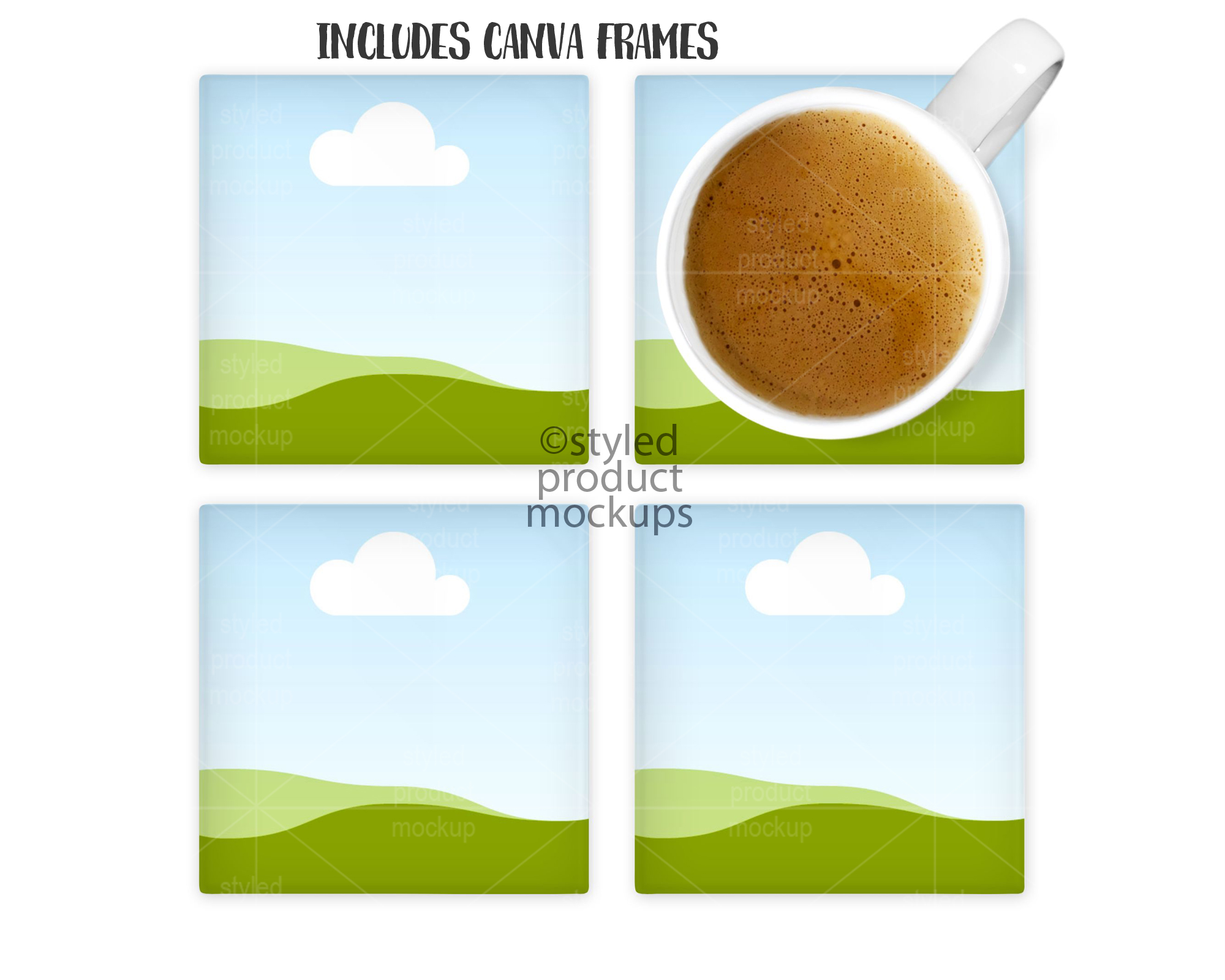 Key Words: coaster, square, glass, sublimation glass, coffee mug, set, four, canva mockup, sublimation, mockup, photoshop mockup, PSD mockup, PNG mockup